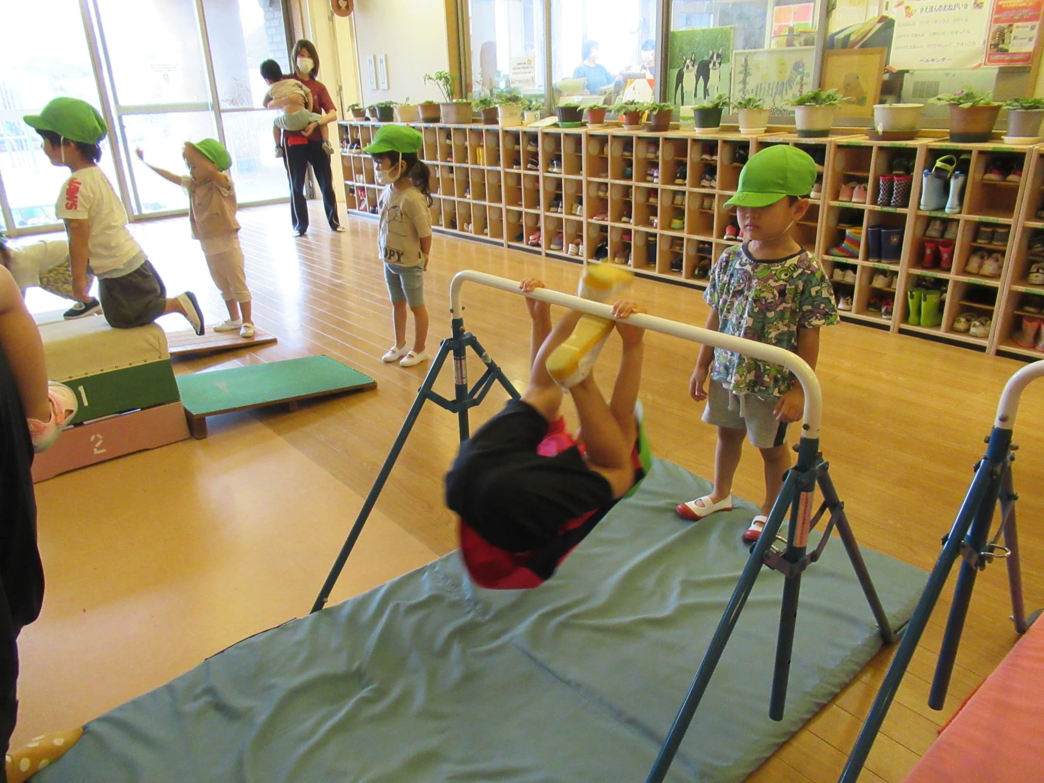 鉄棒を握る時に「ワニのお口で持とうね」と教えてもらって