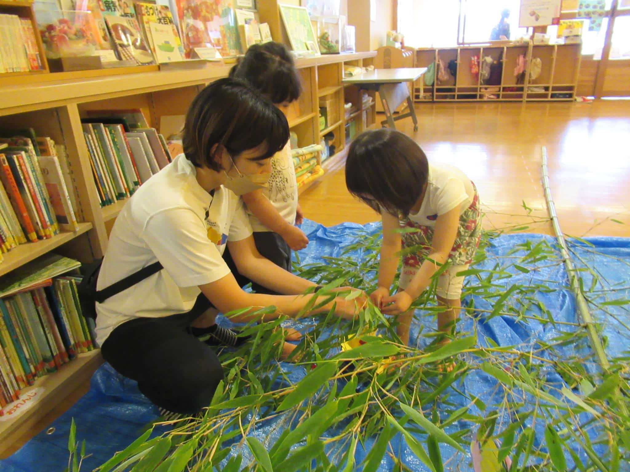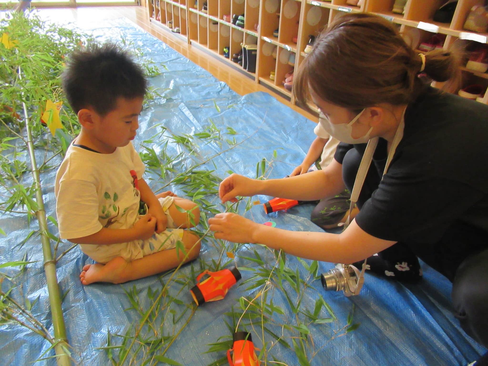 この日に向けて制作していた笹飾りの飾り付けをしました。