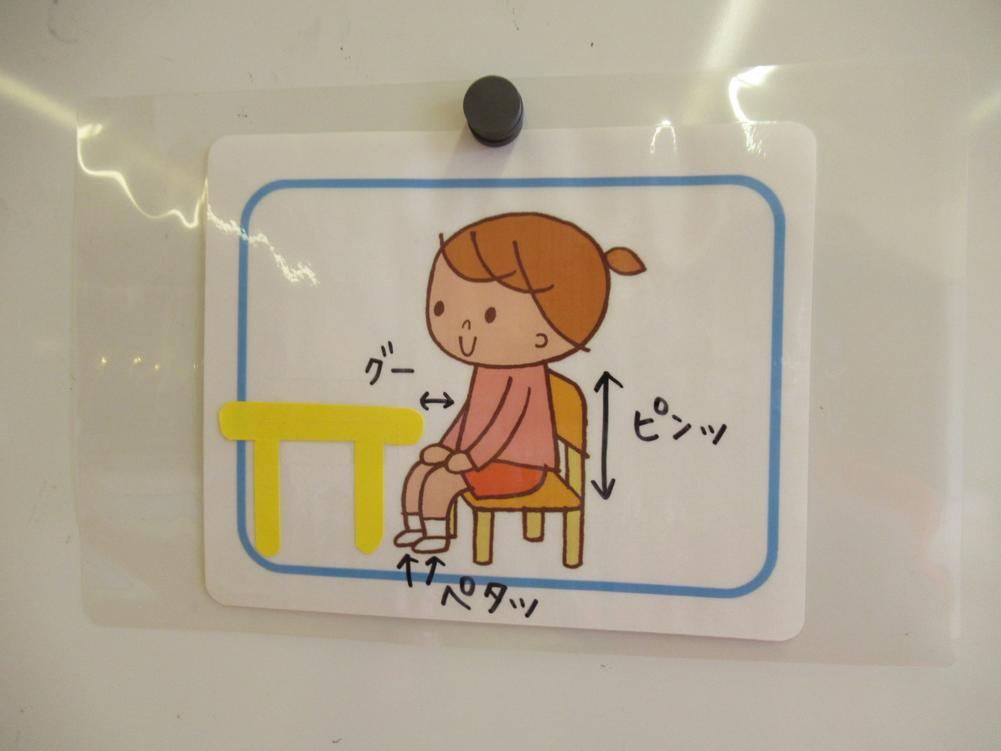 『ぐー・ぺたっ・ぴんっ』で座ることを伝えました。