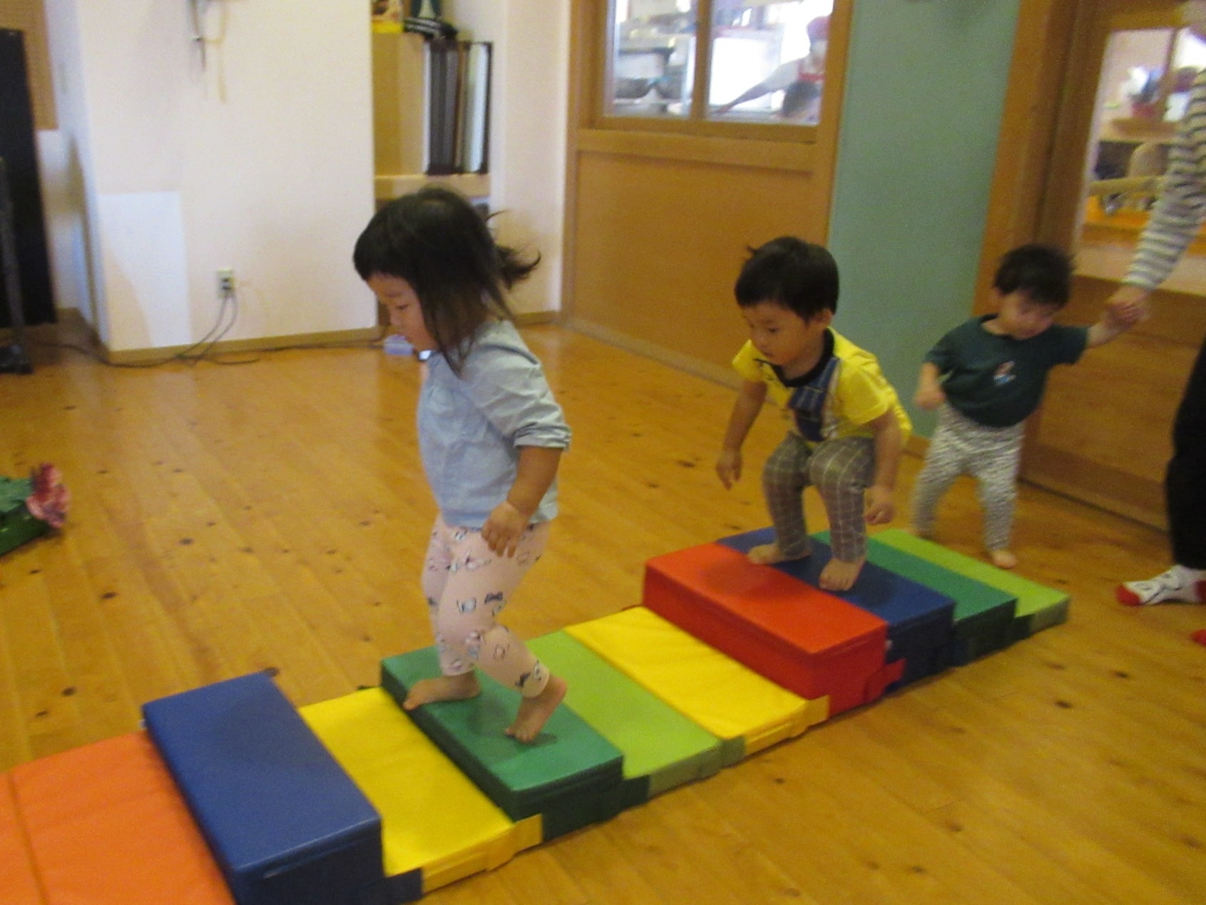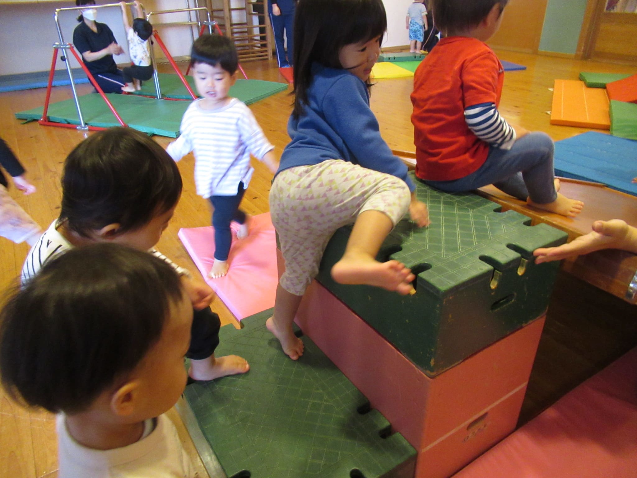ぶら下がったり足を上げようとしたり…腕の力もついてきました。