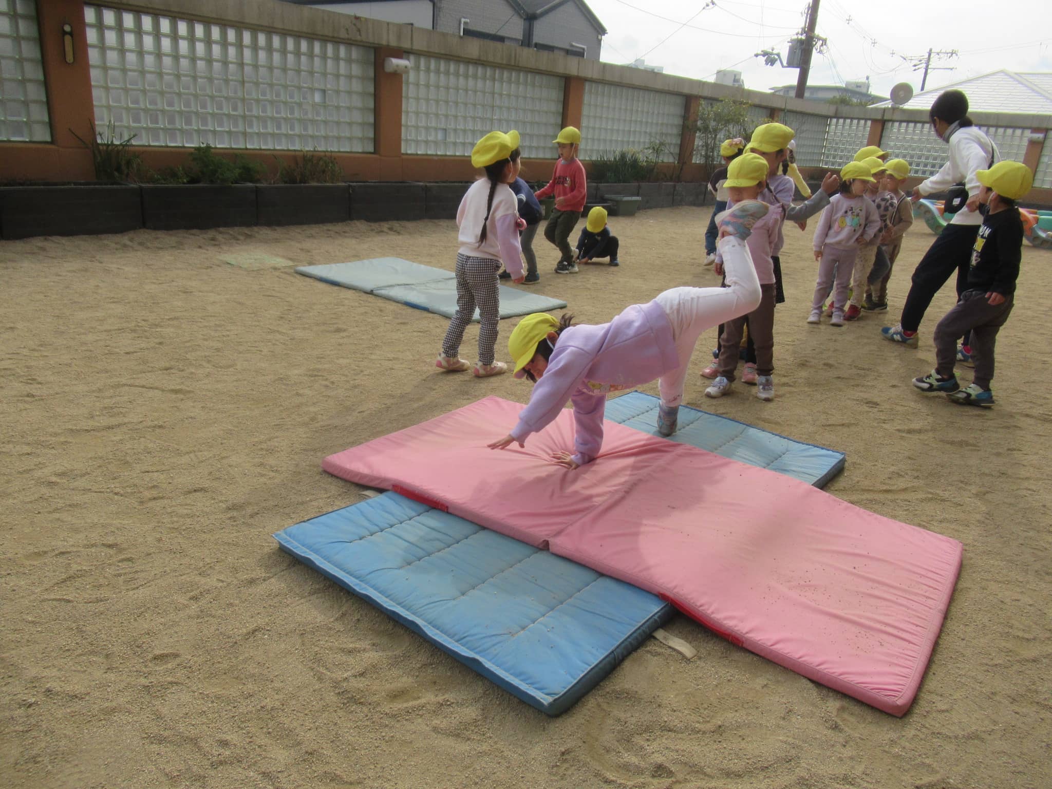 上の写真の子どもは、ぱんだ組の時に勇気を振り絞って前回りに
