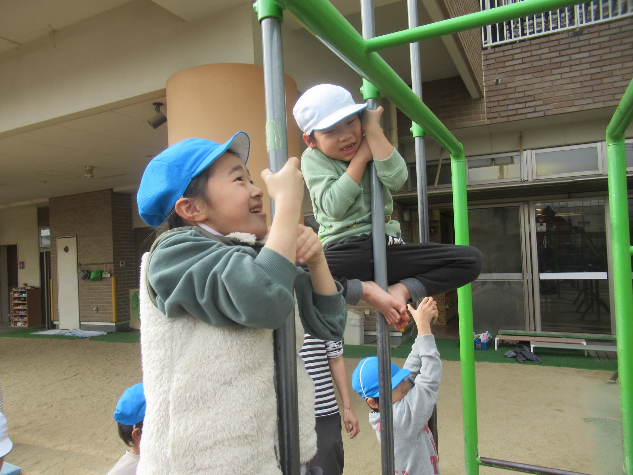 登り棒で腕の力をつけて『逆上がり』にも繋げていっています。