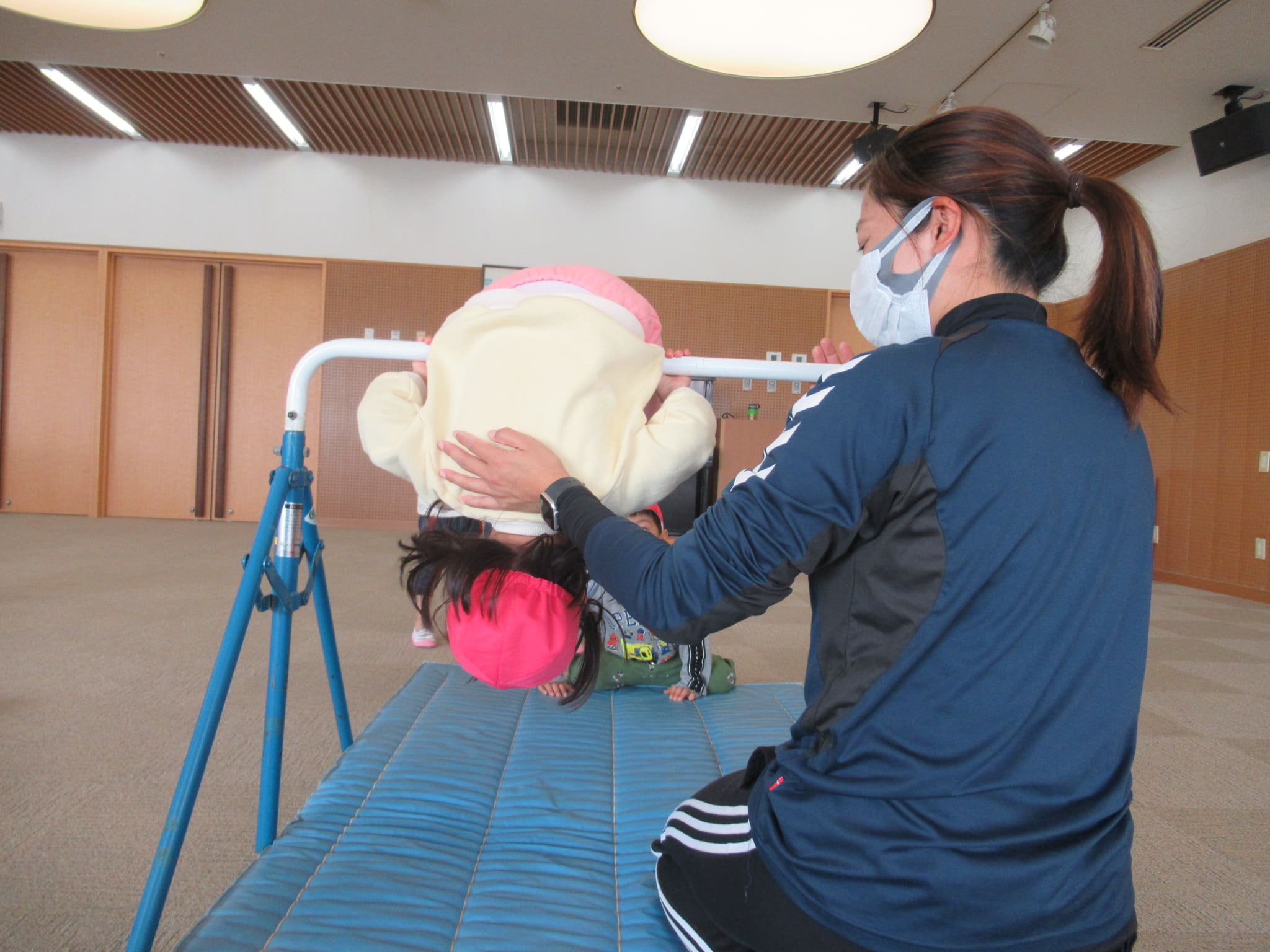 ぱんだ組でもお伝えした、腕の力で平均台を前に進む取り組みです!