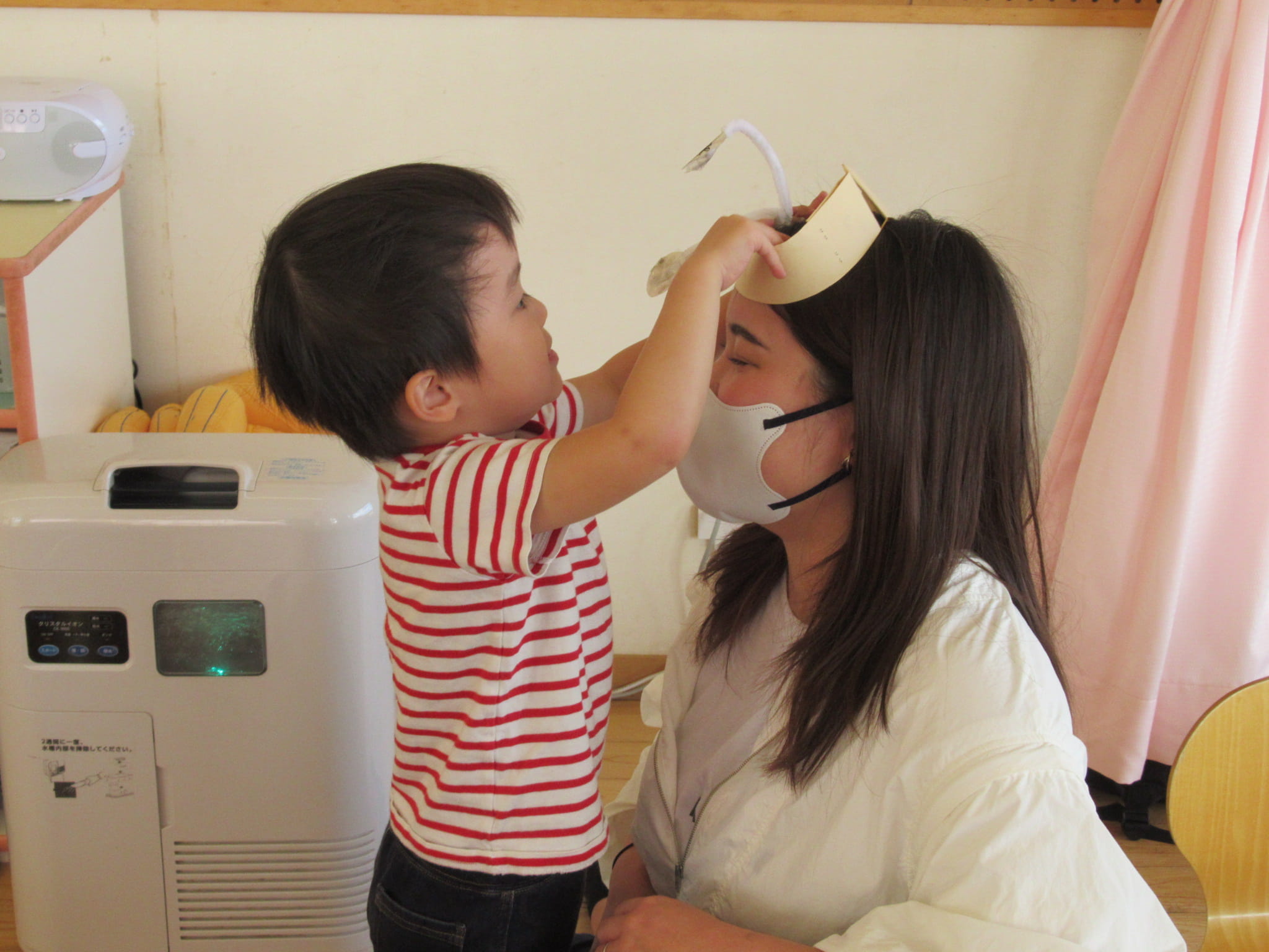 部屋では、一緒に玩具で遊んだり制作物をつくったりして