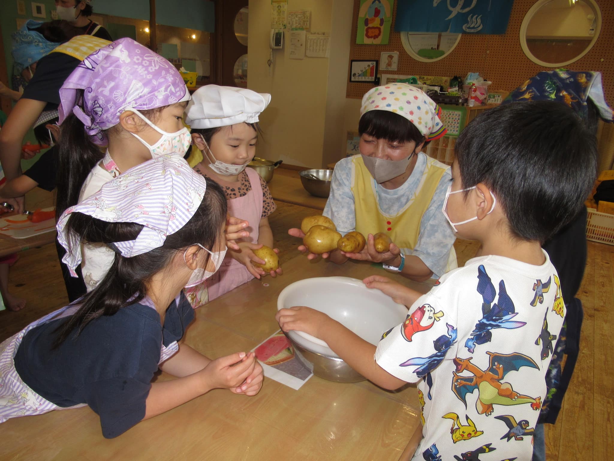 じゃがいもの切り方を聞いたり、順番を決めたりしています!