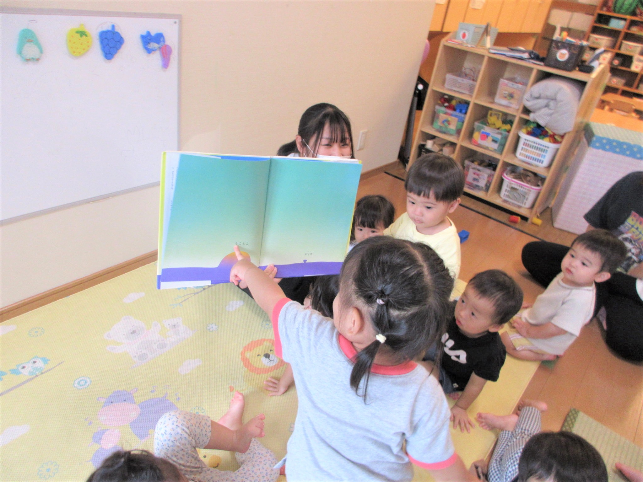 絵本の中の言葉の響きと絵の楽しさに引き込まれる子どもたちです♪