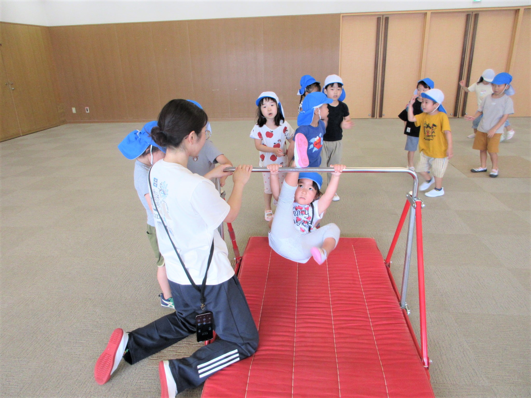 側転や鉄棒の取り組みを頑張っている、きりん組の子どもたちなのですが・・・