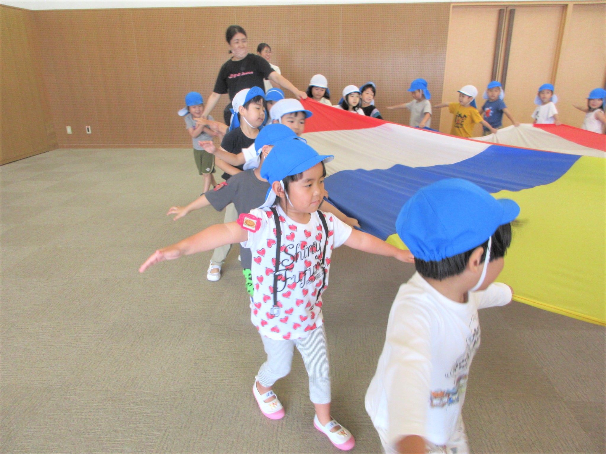 たろうは、今日初めて、きりん組のパラバルーンの取り組みを見させてもらいました。