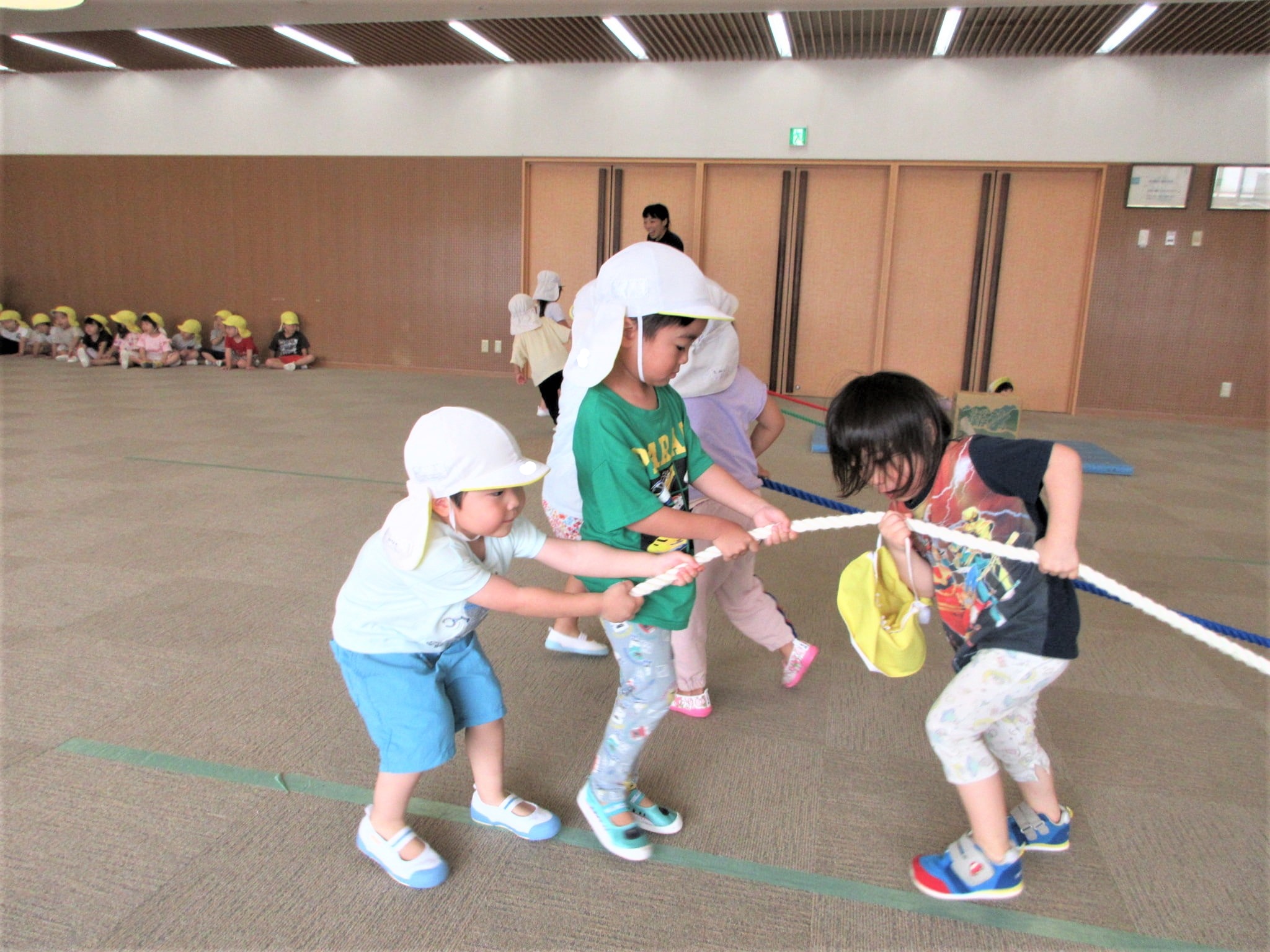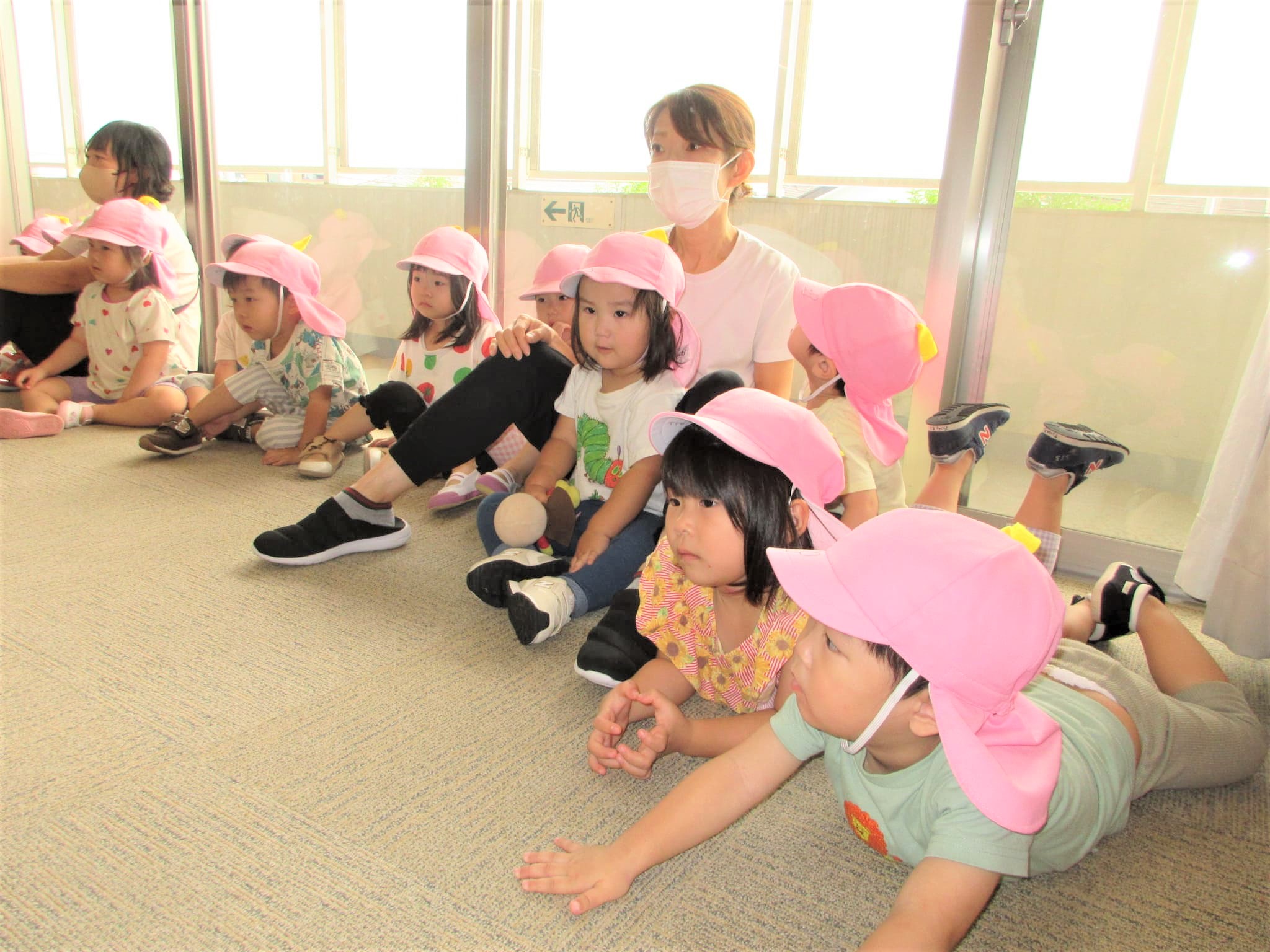 ぱんだ組が頑張っている姿を、うさぎ組の子どもたちが見ています♪
