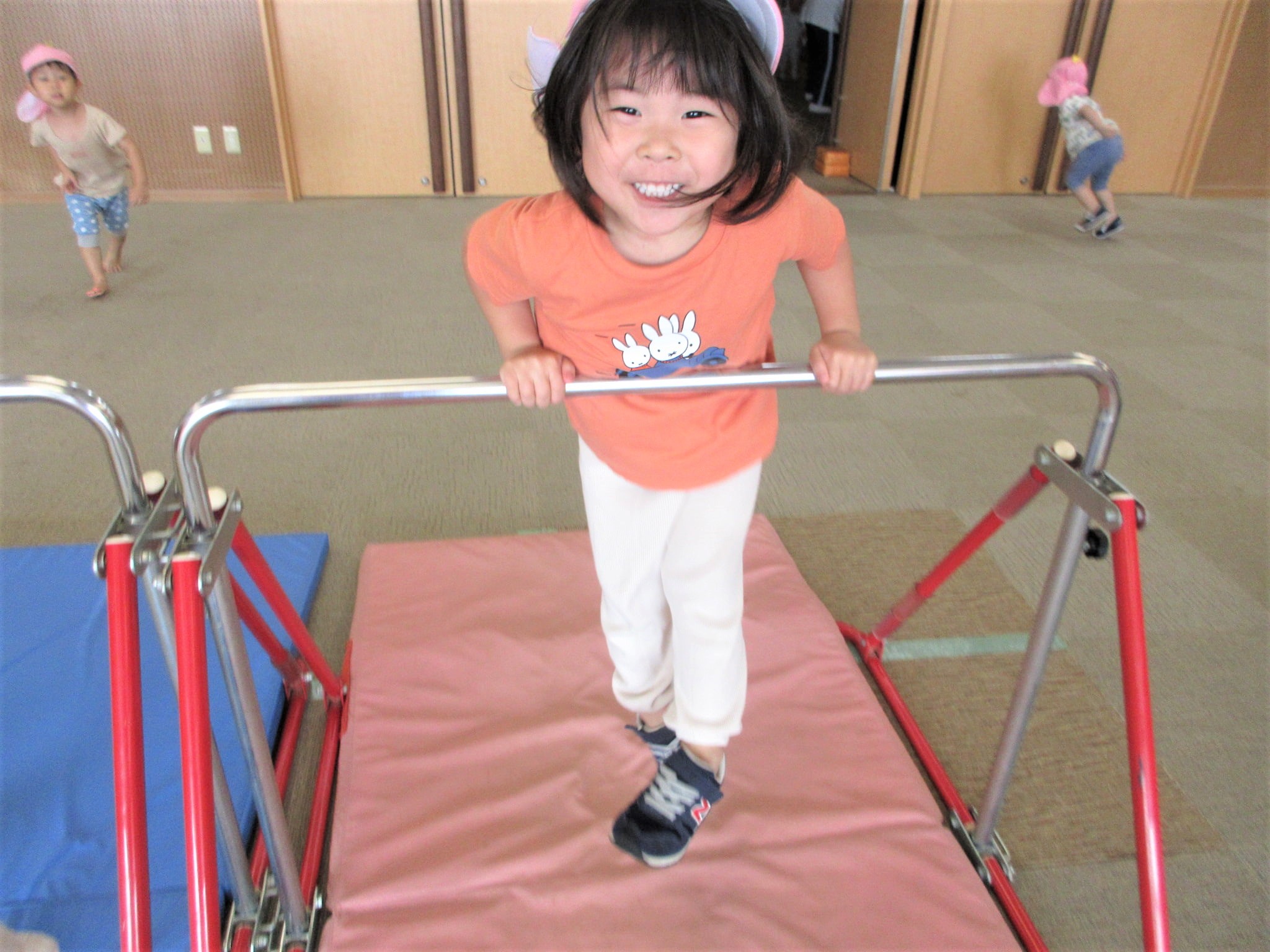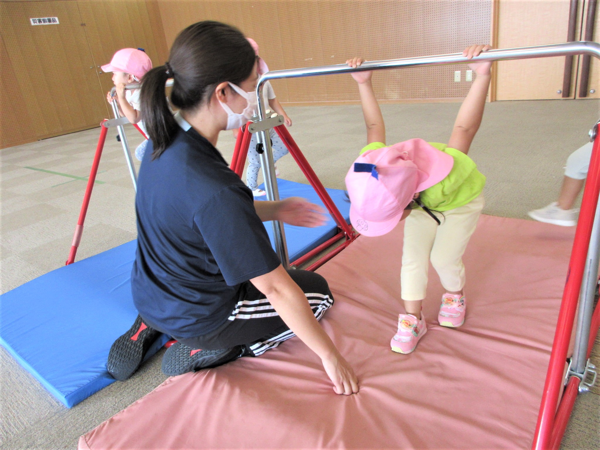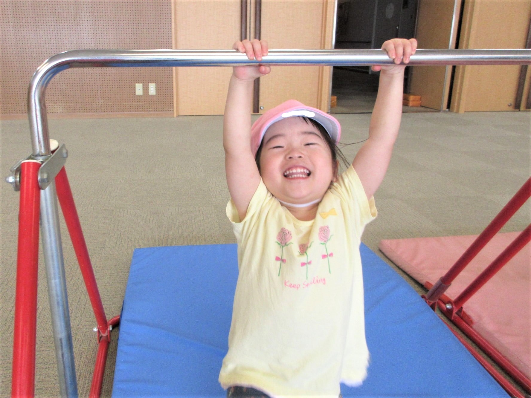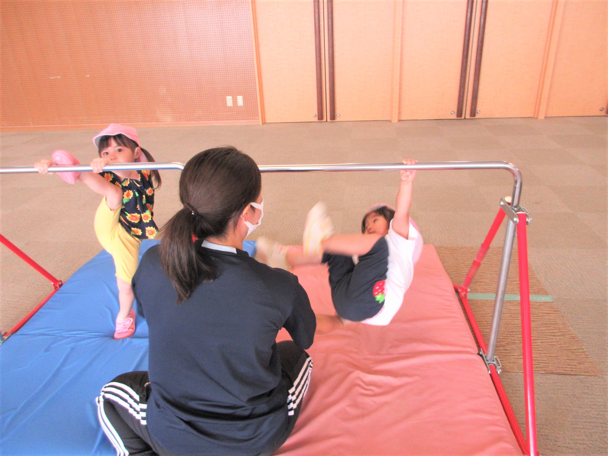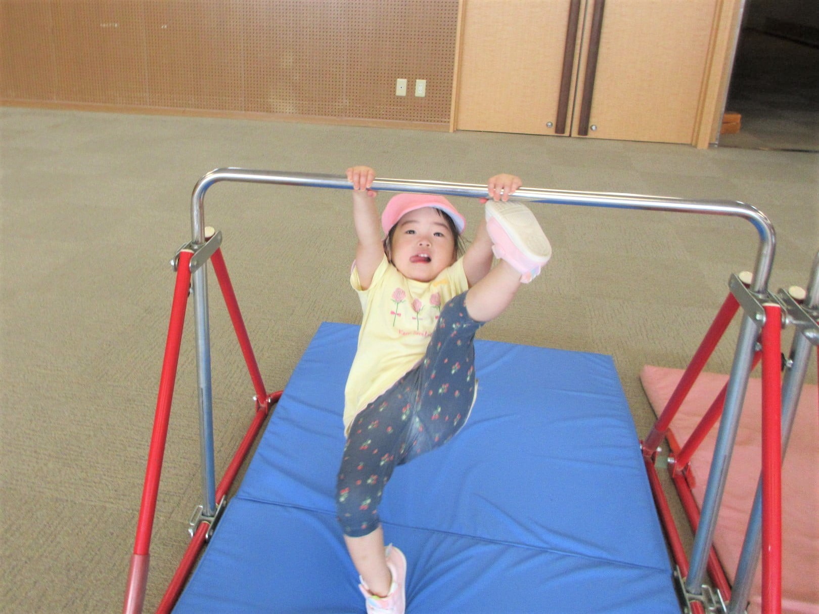 先週の体操教室でも紹介した、足抜き回りに挑戦しながら、最後に片手を話してしまった『Nちゃん』