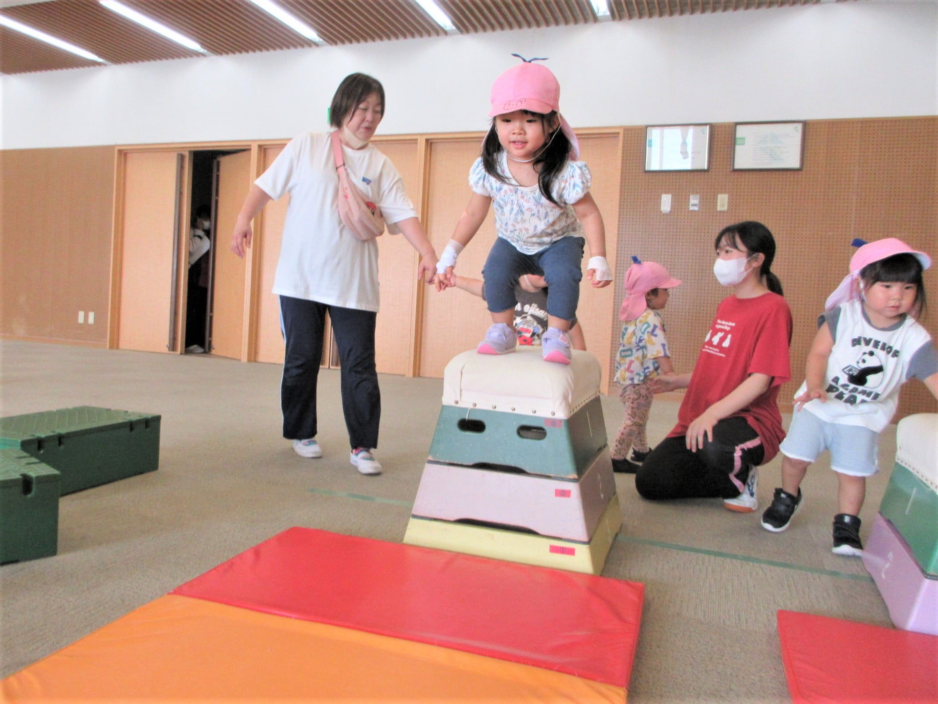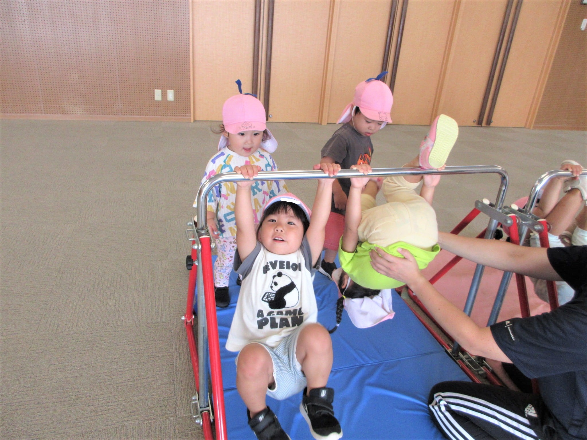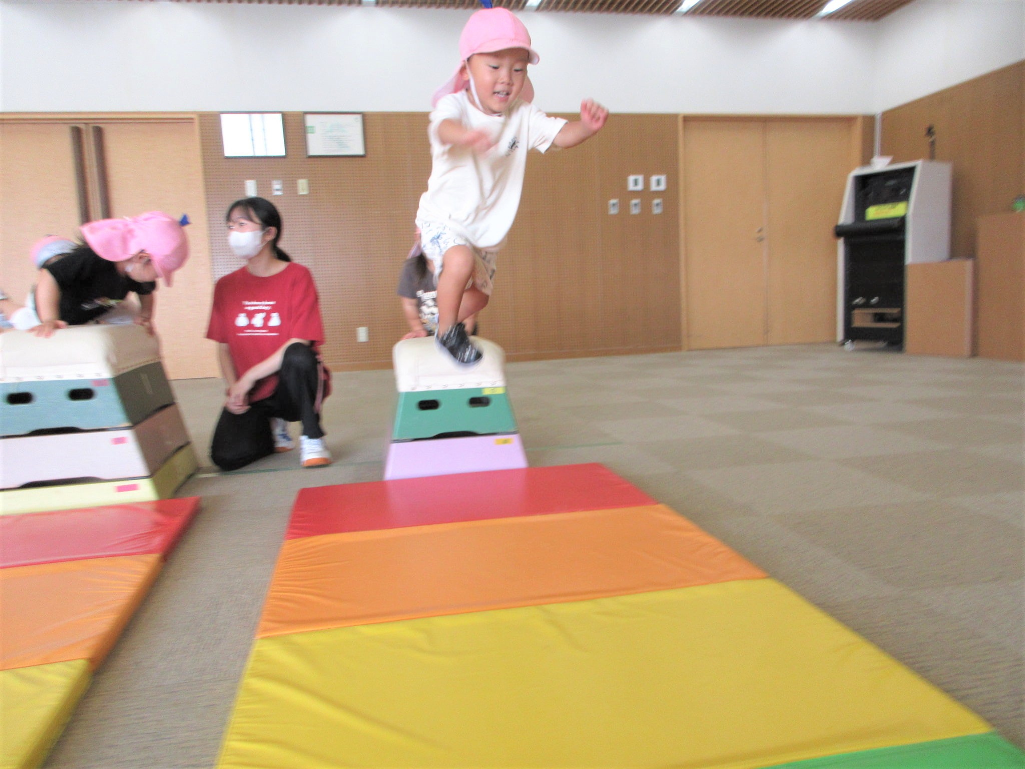 跳び箱のよじ登りも、大分スムーズに登れるようになってきたようです♪