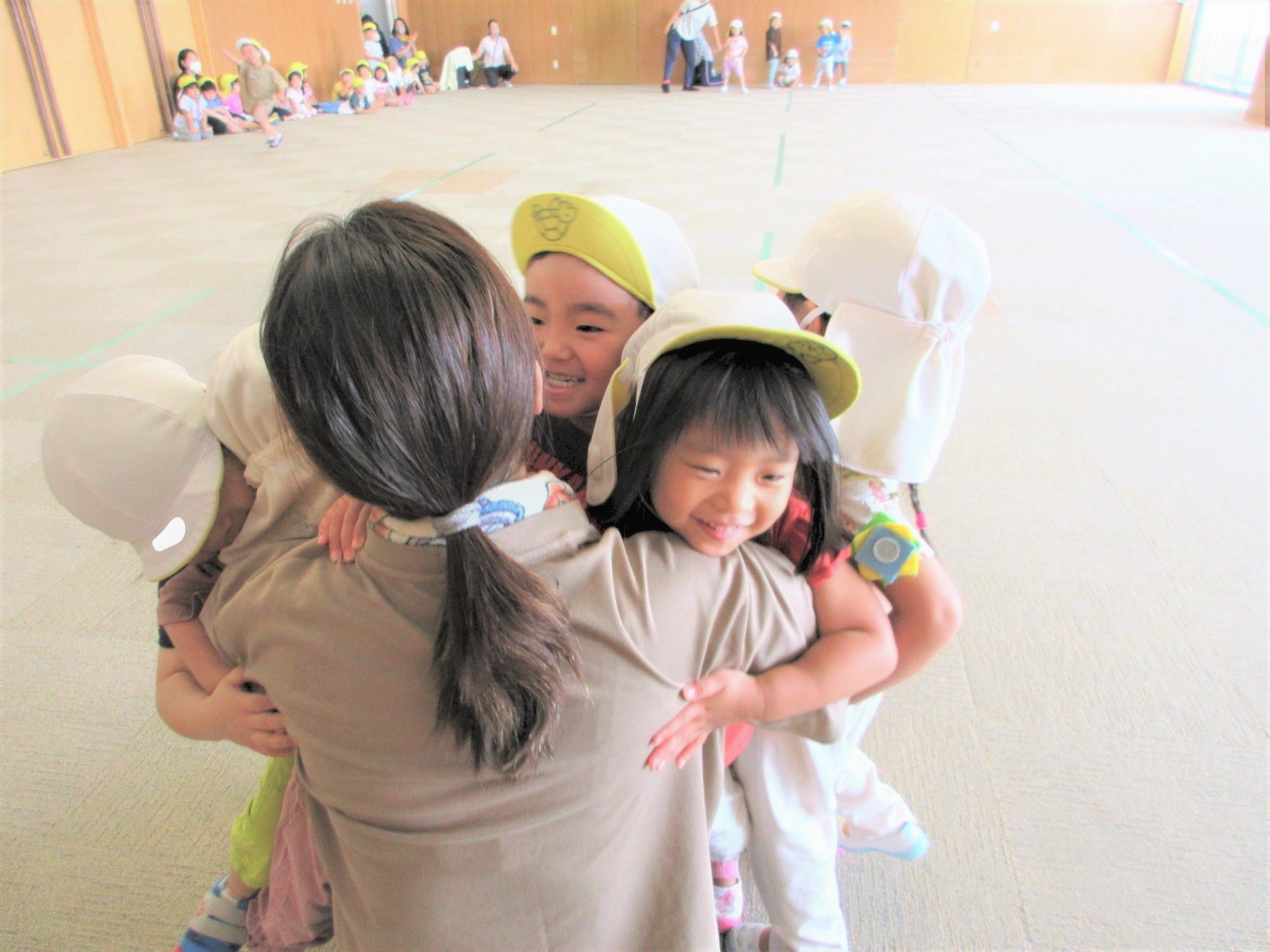 保護者の方に抱きついて安心する表情を写真に収めたいと思います♪
