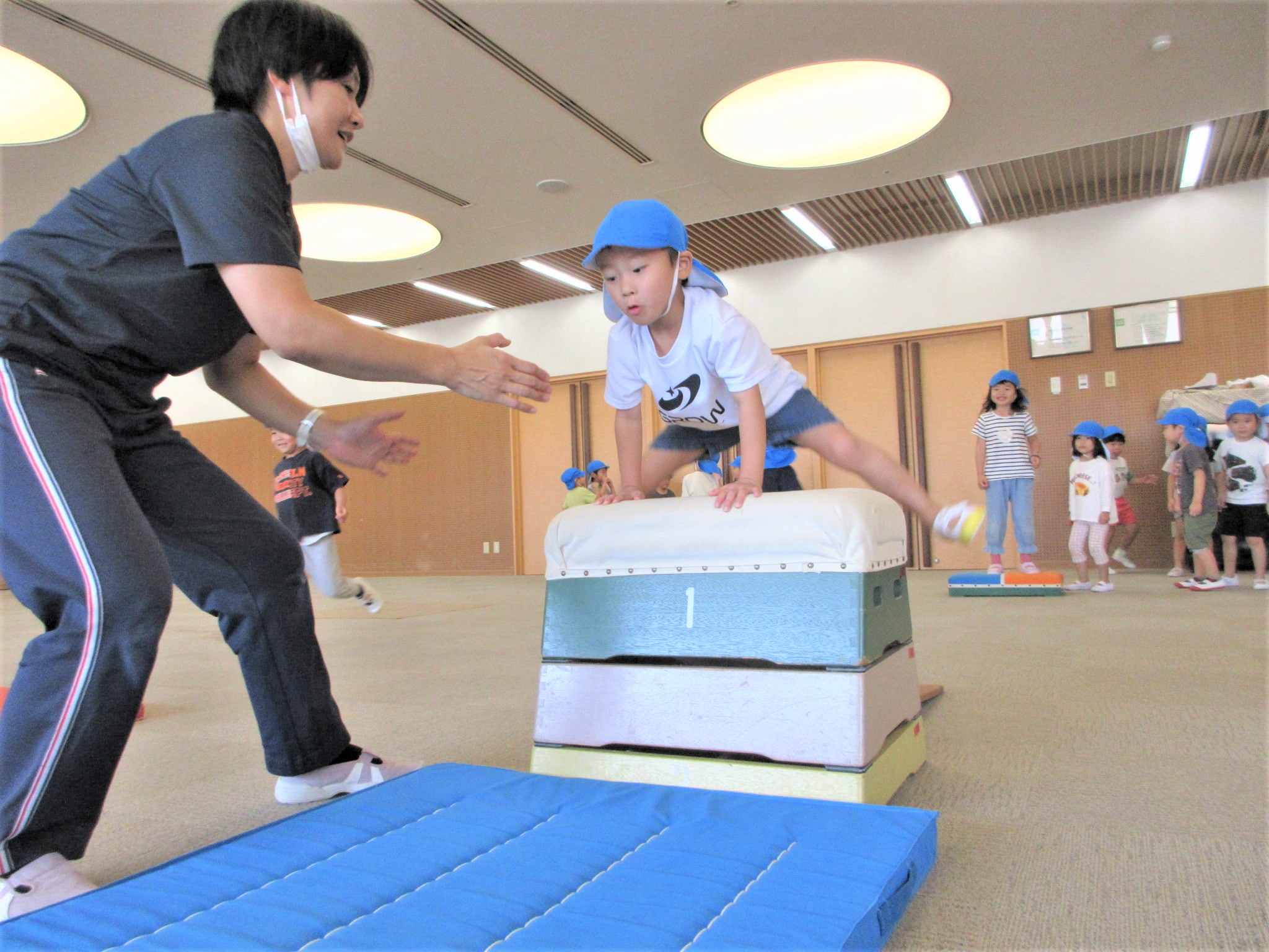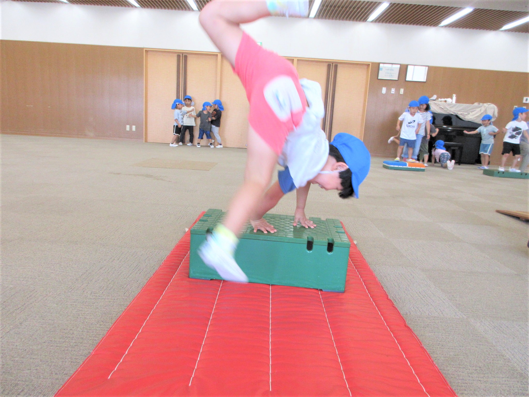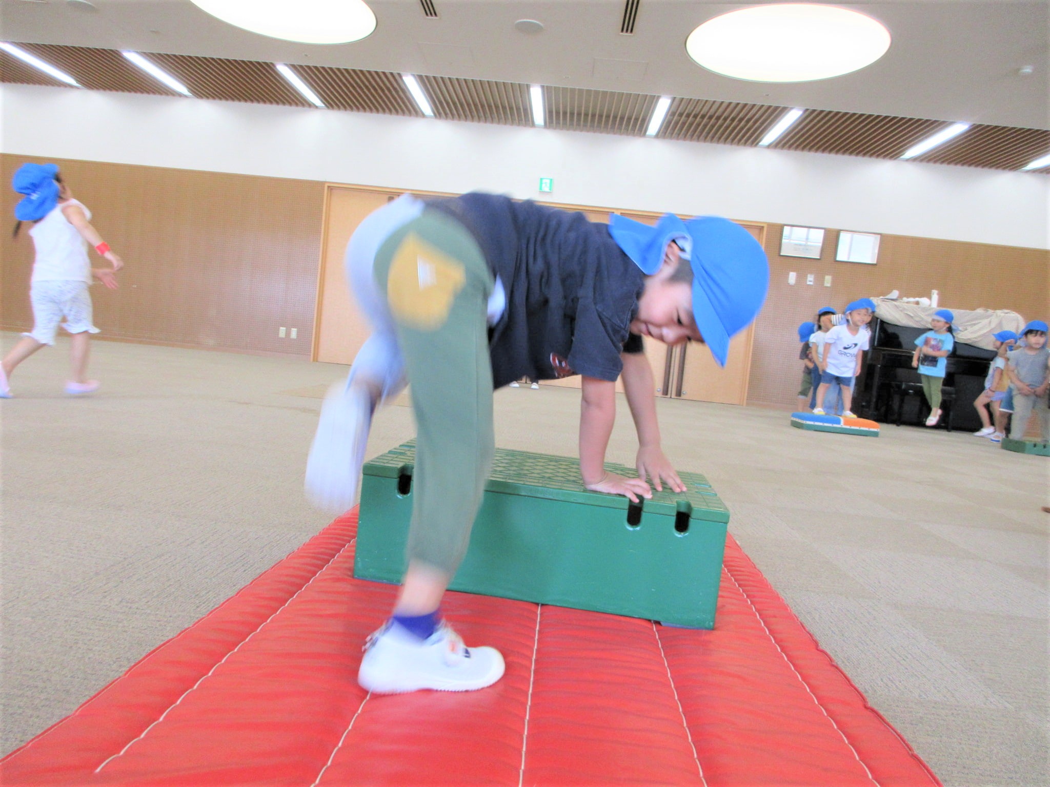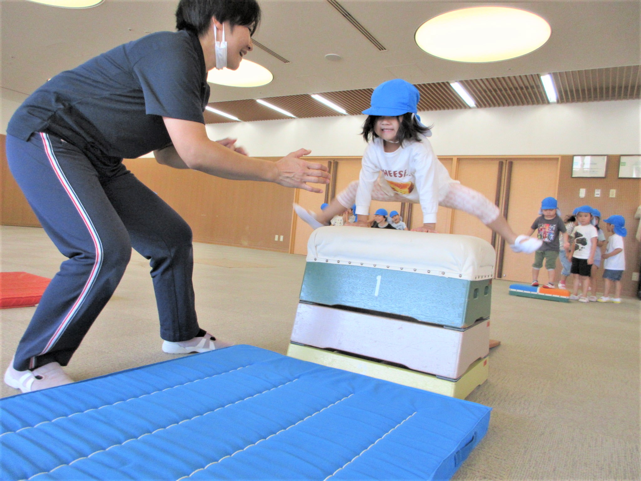 手を押して前に進むコツを掴めば、跳び箱を跳び越えそうです!!