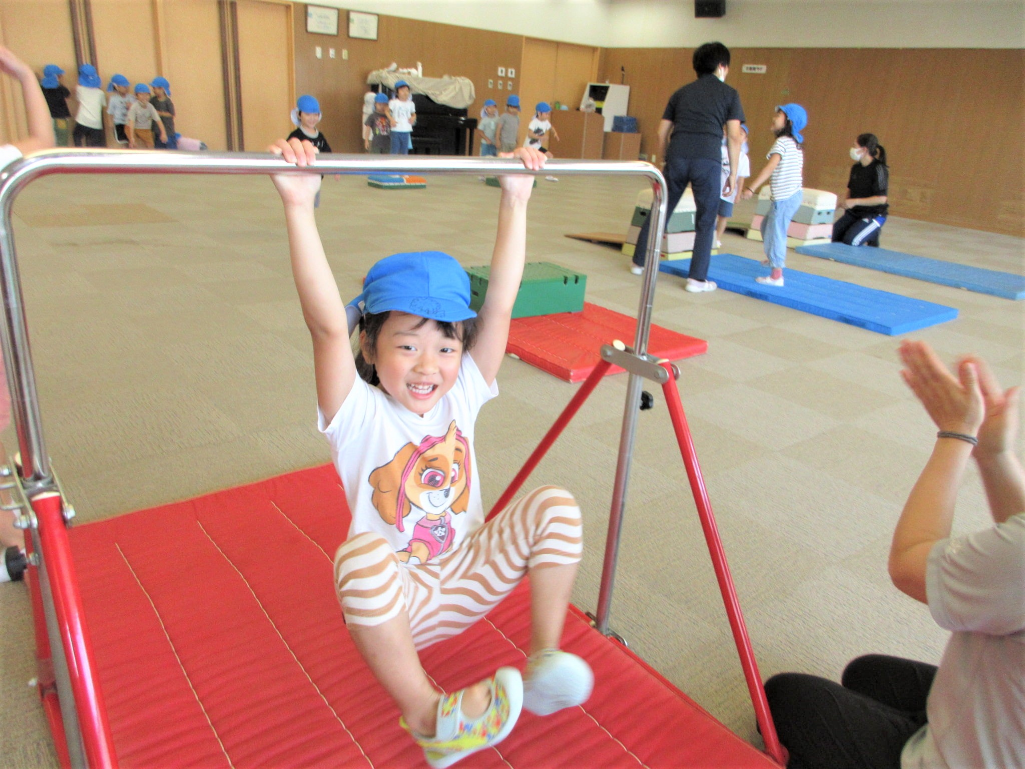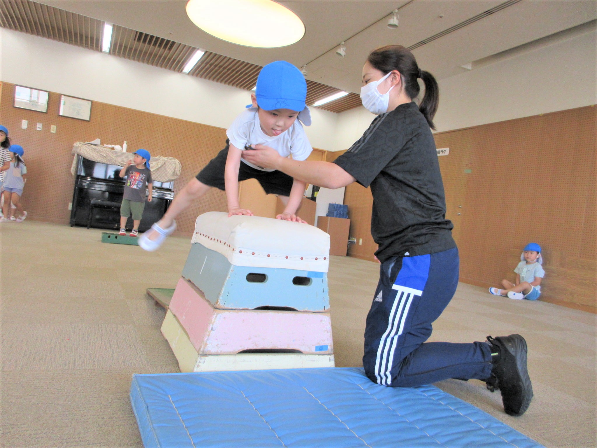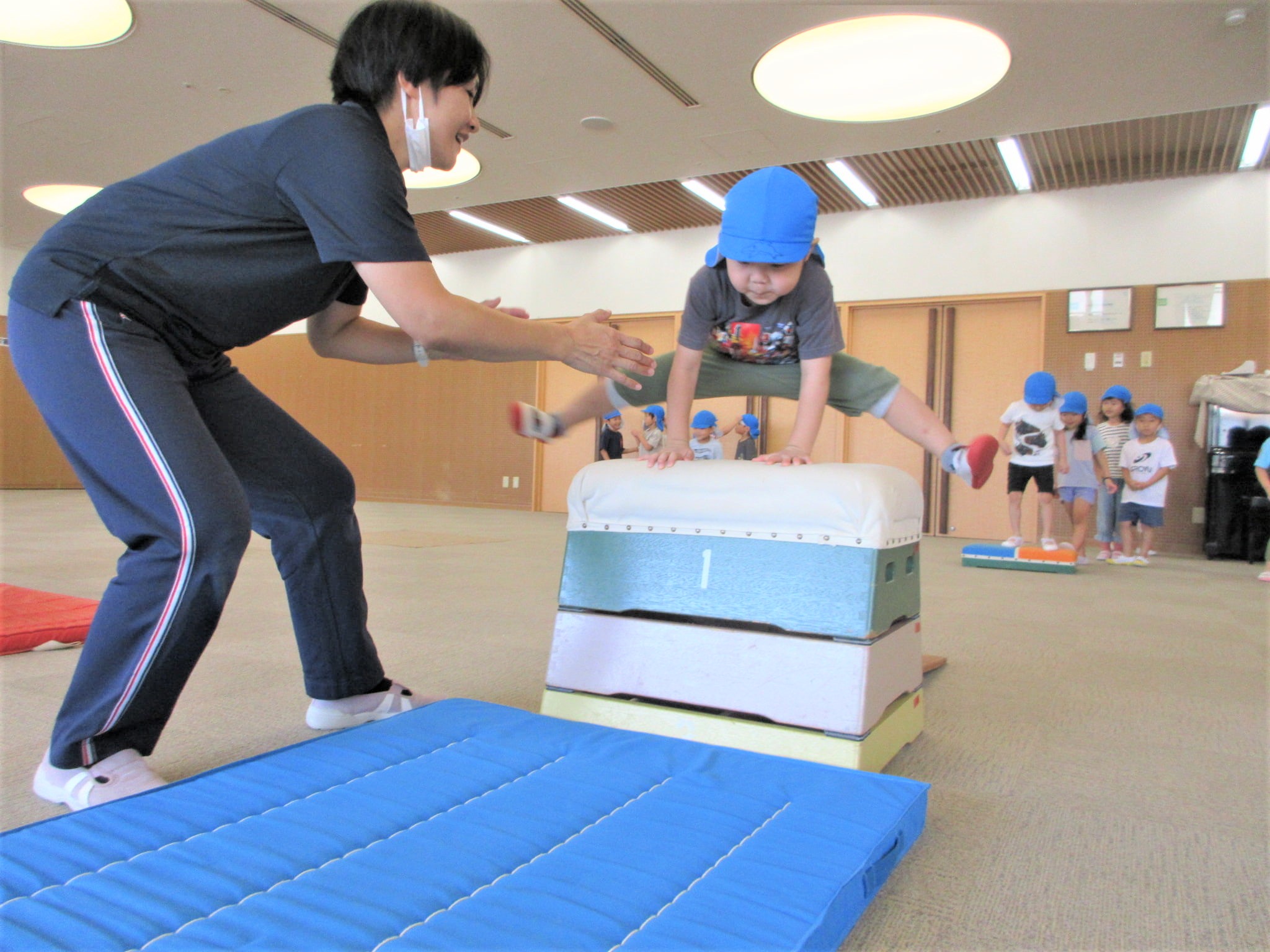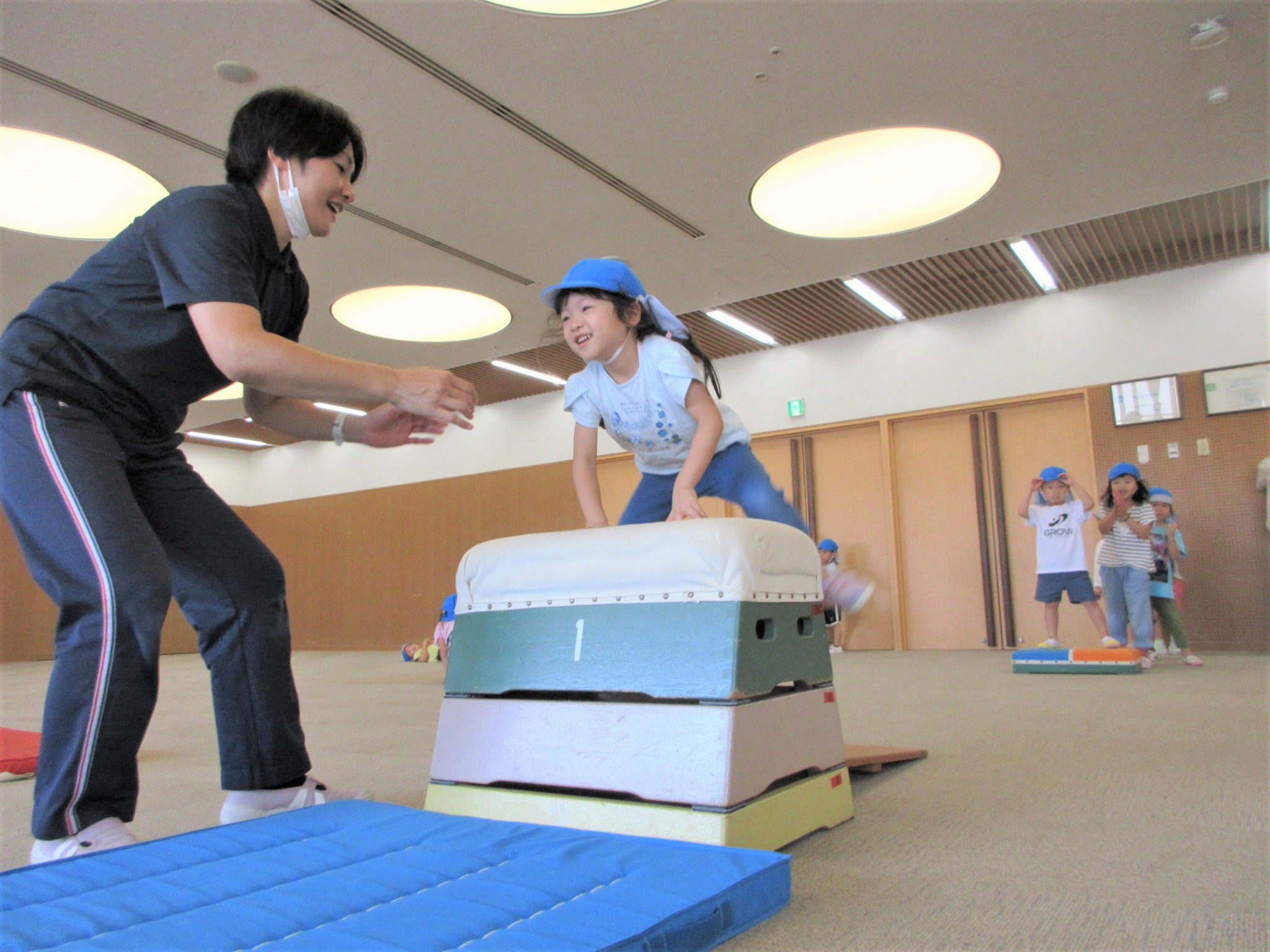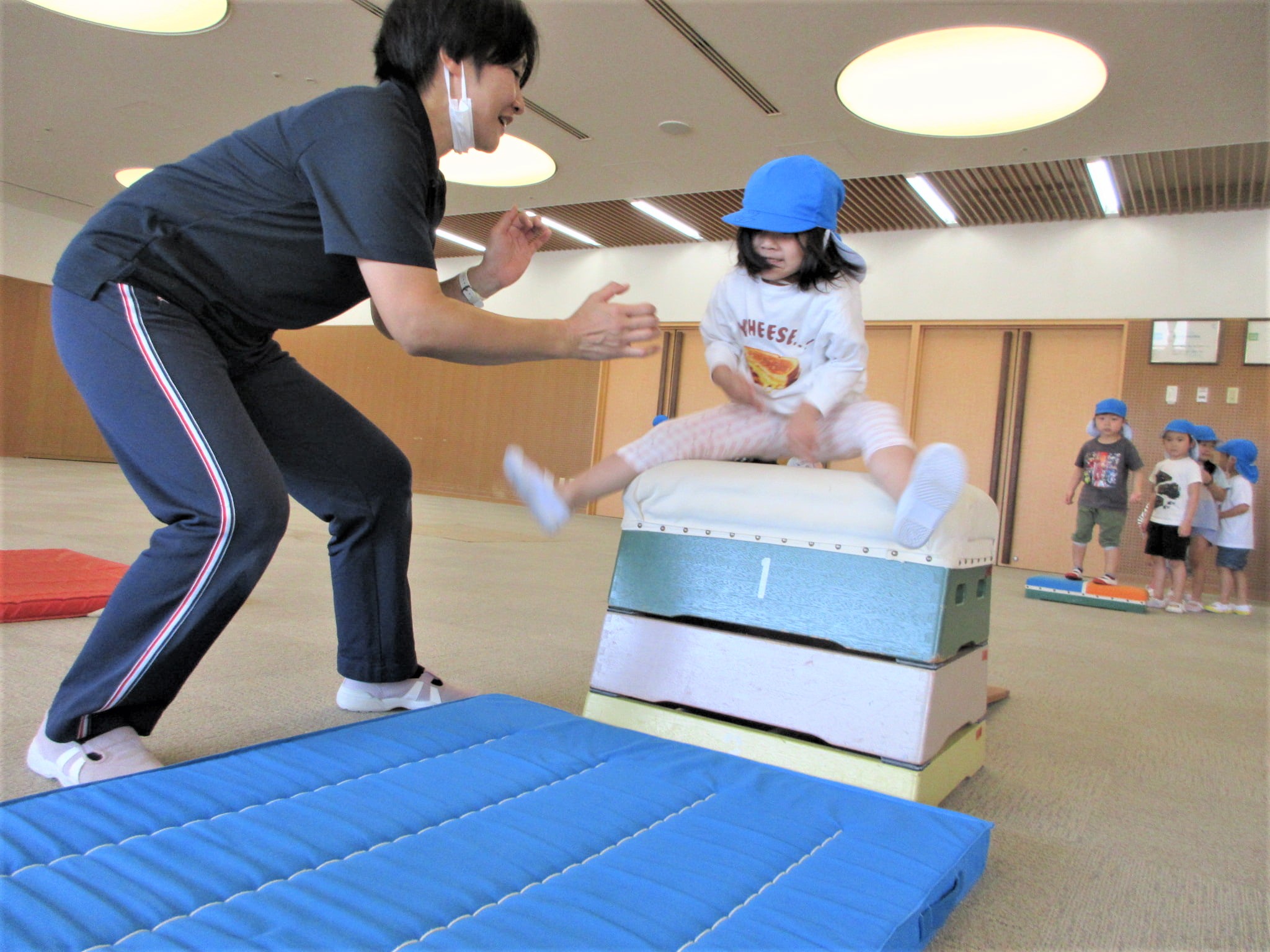 手を押して前に進むコツを掴めば、跳び箱を跳び越えそうです!!