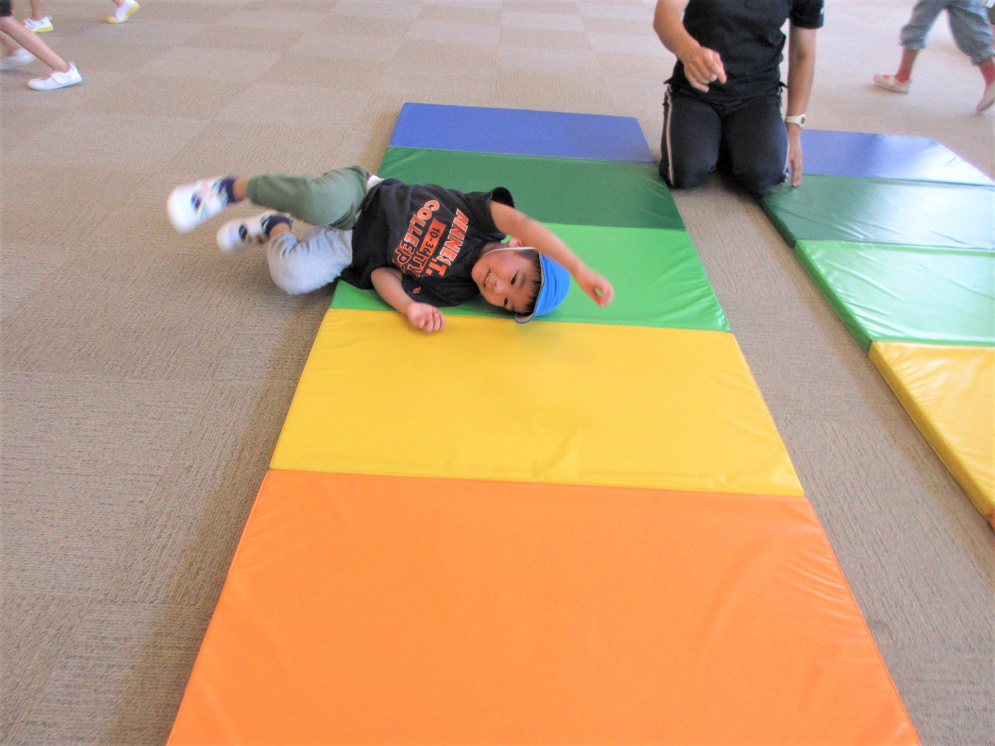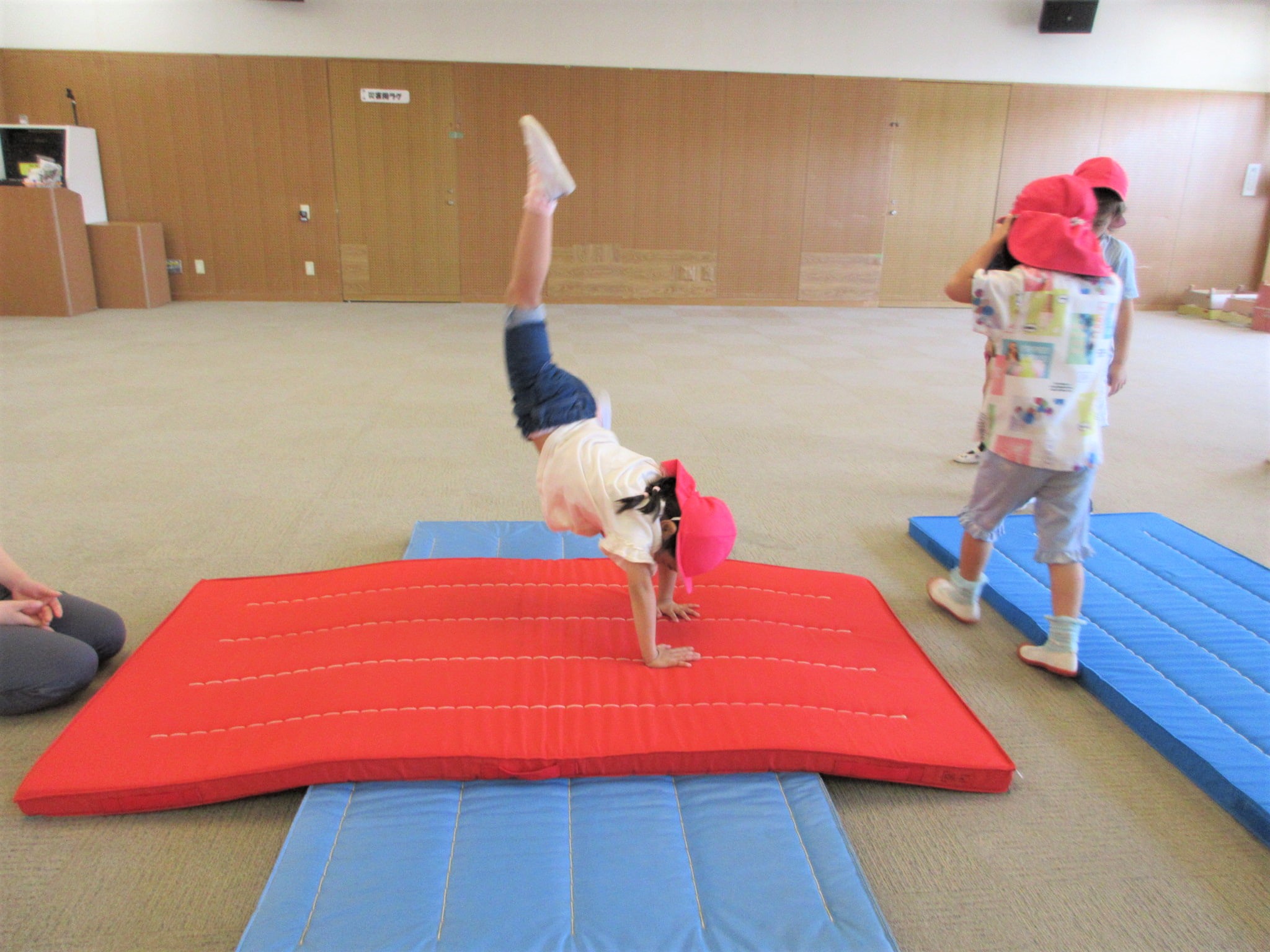 春から取り組んでいる側転なだけに、腕や足が伸びたきれいな側転を見せてくれています♪