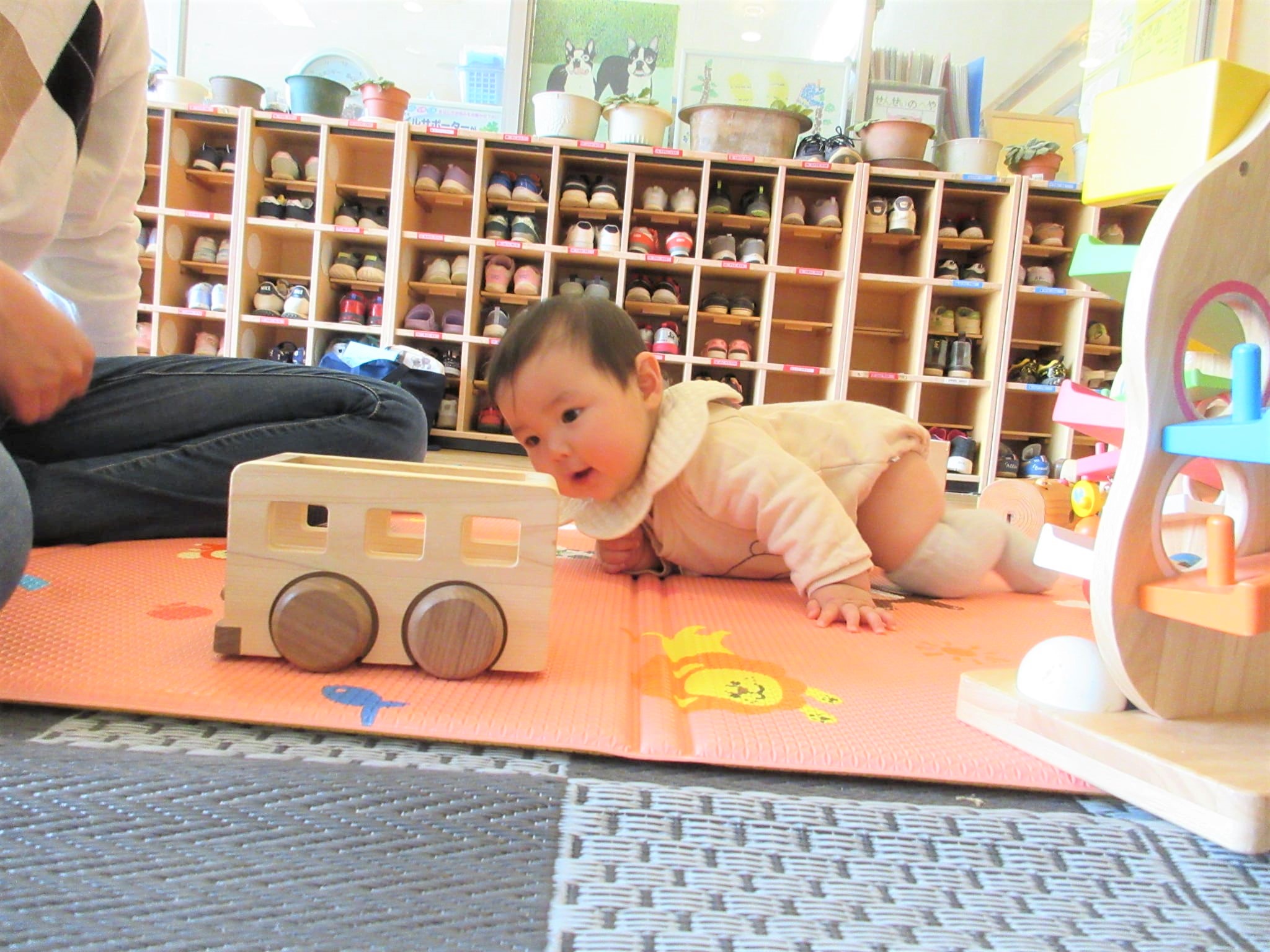 今日は、自ら寝返りをして転がる玩具を目で追って遊ぶ姿も・・・♪