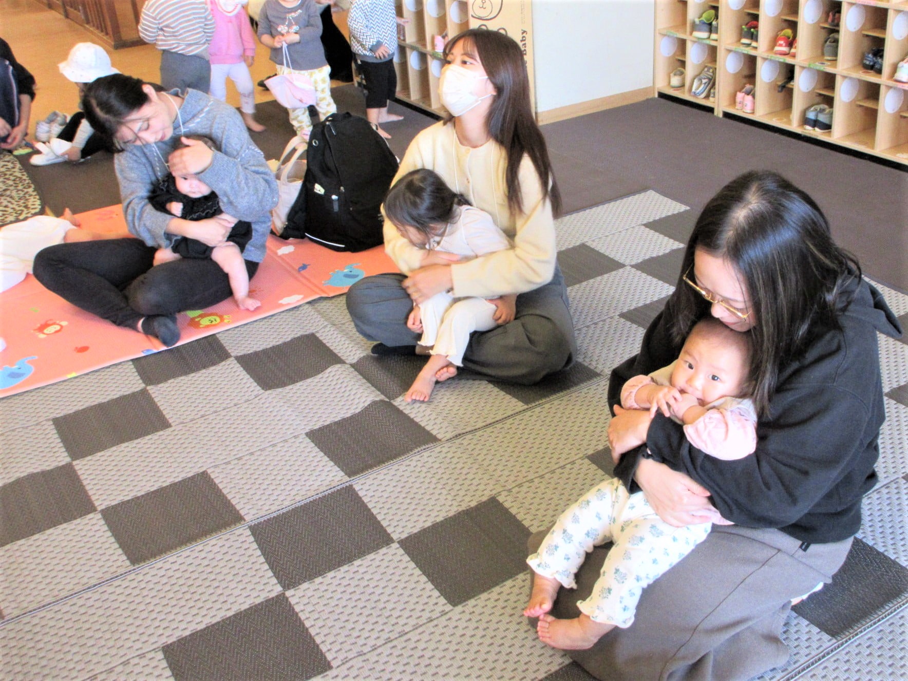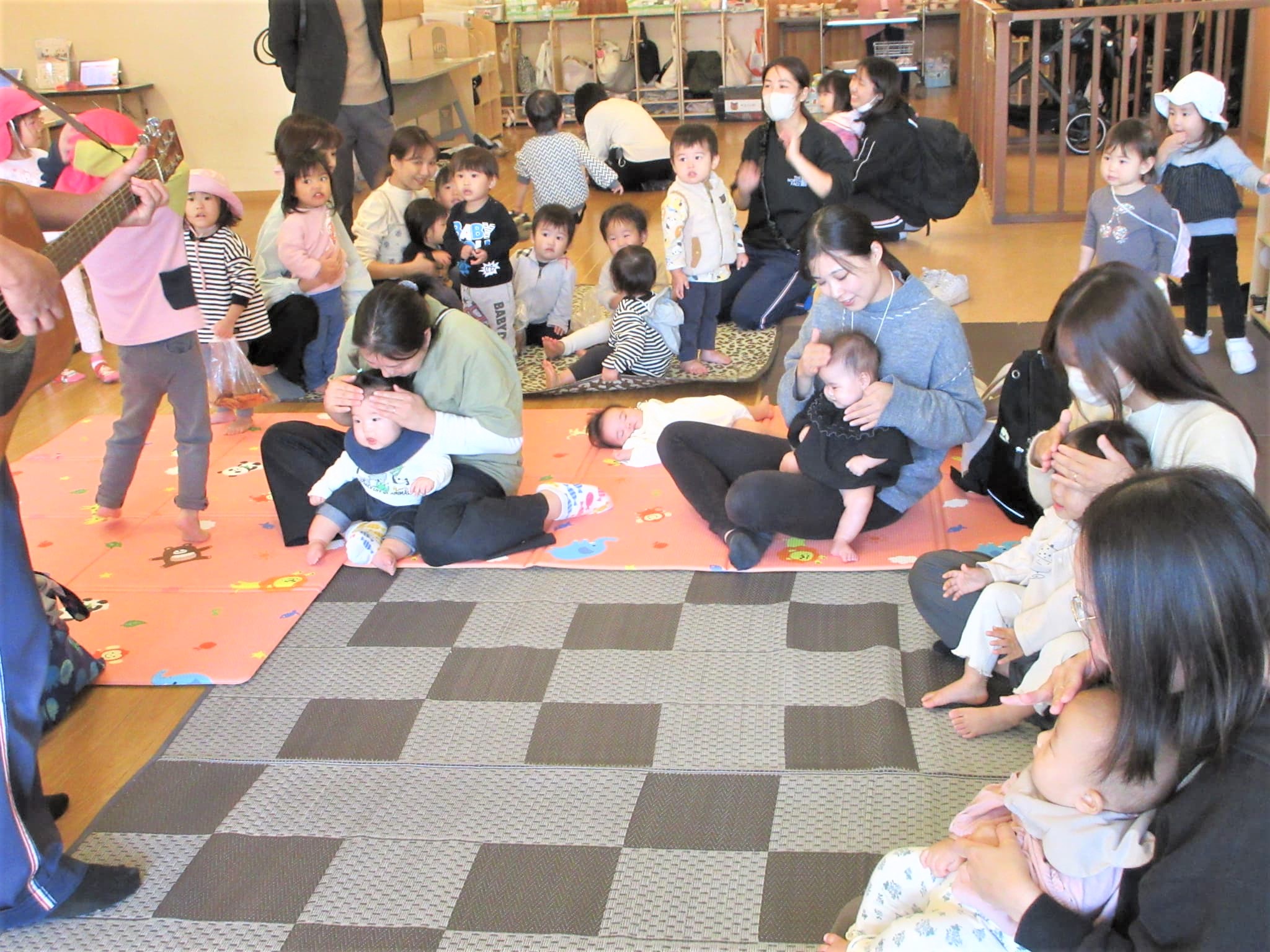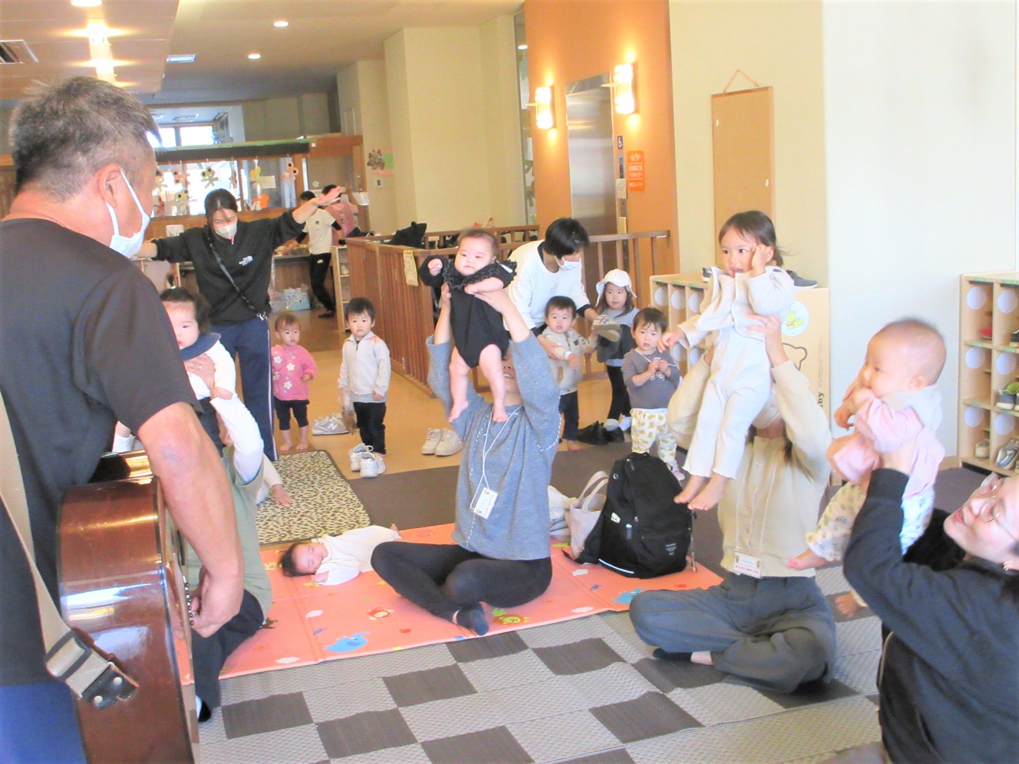 散歩帰りのりす組も加わって、にぎやかにふれあい遊びを楽しむことができました♪