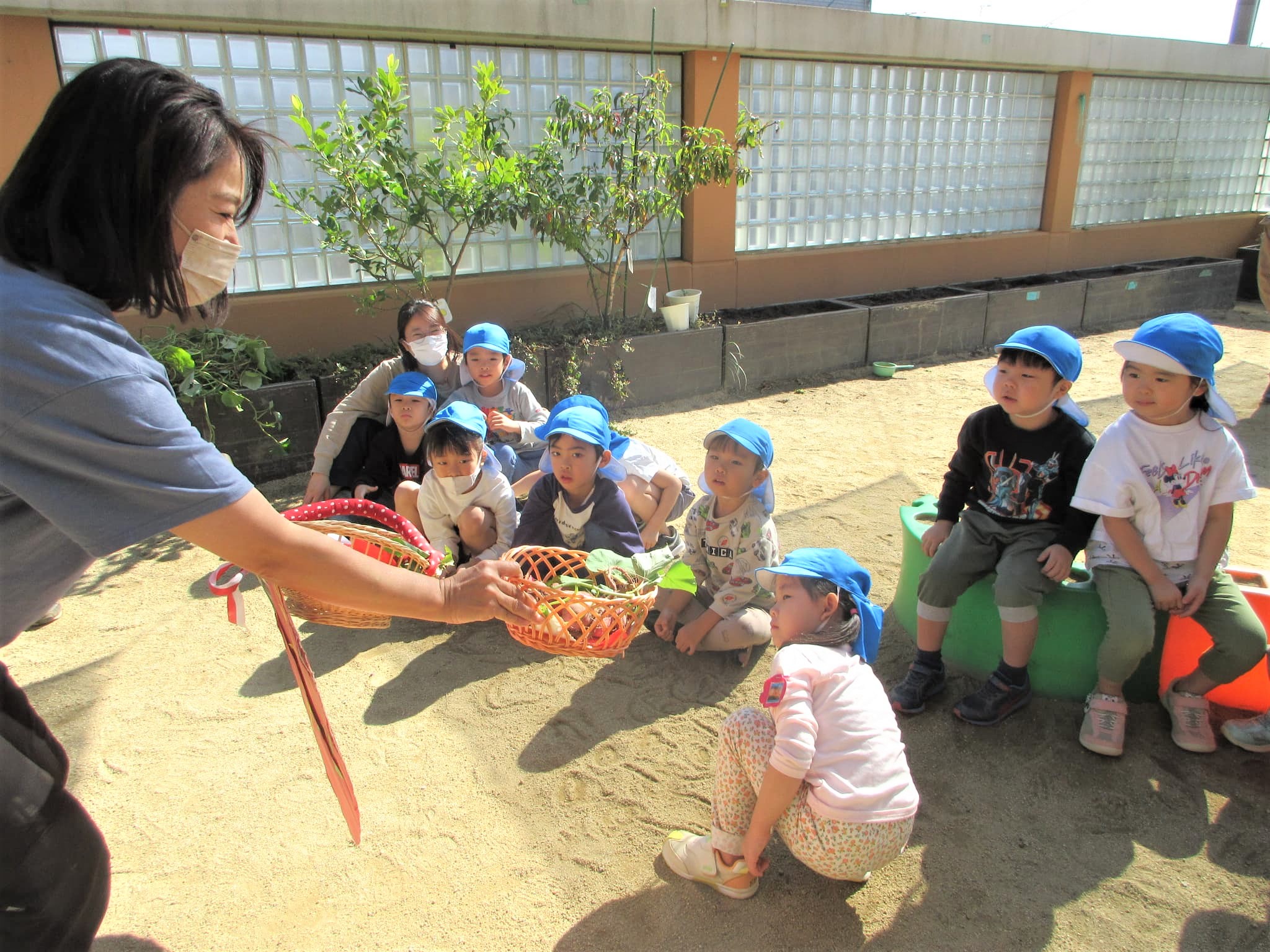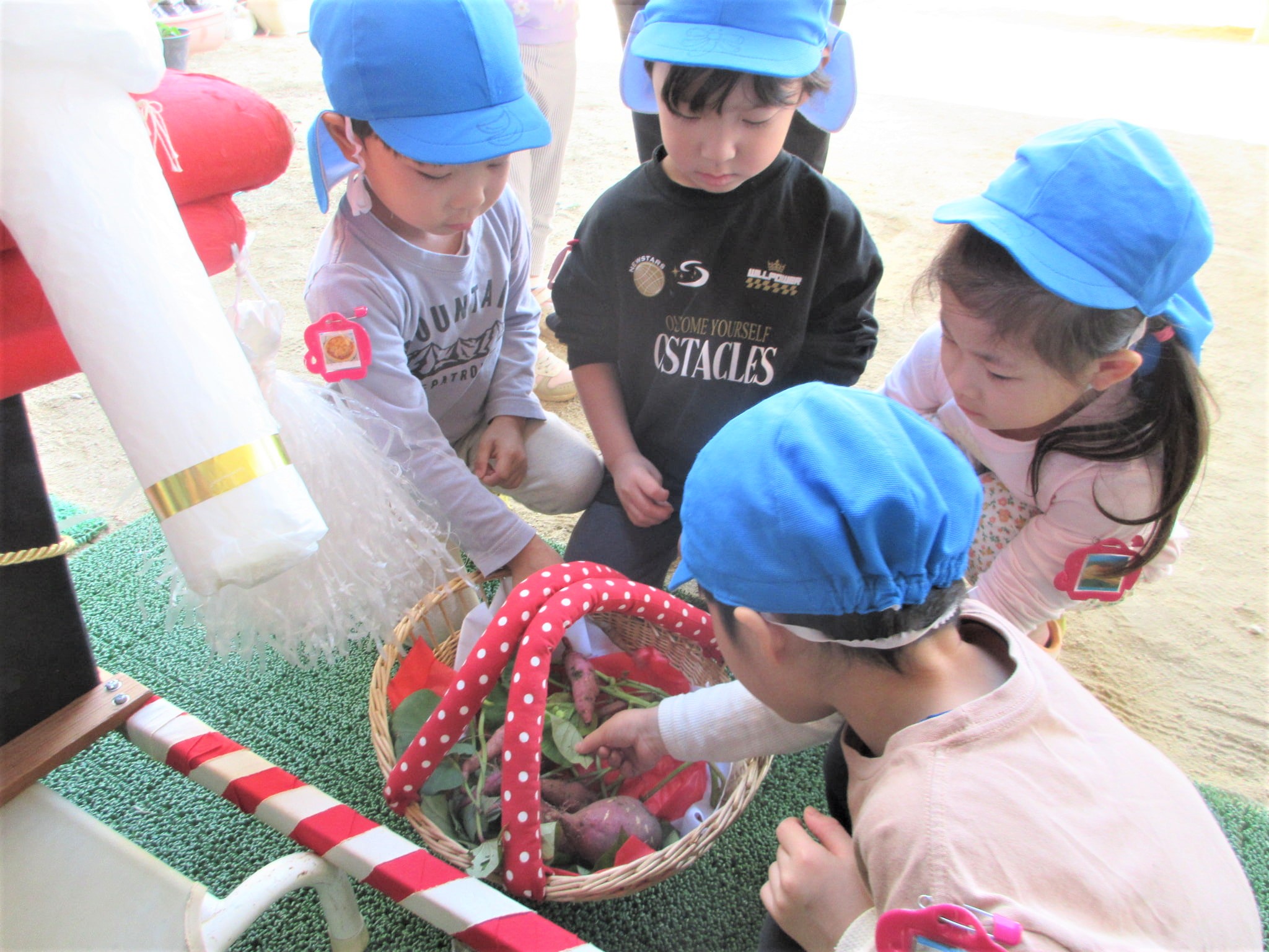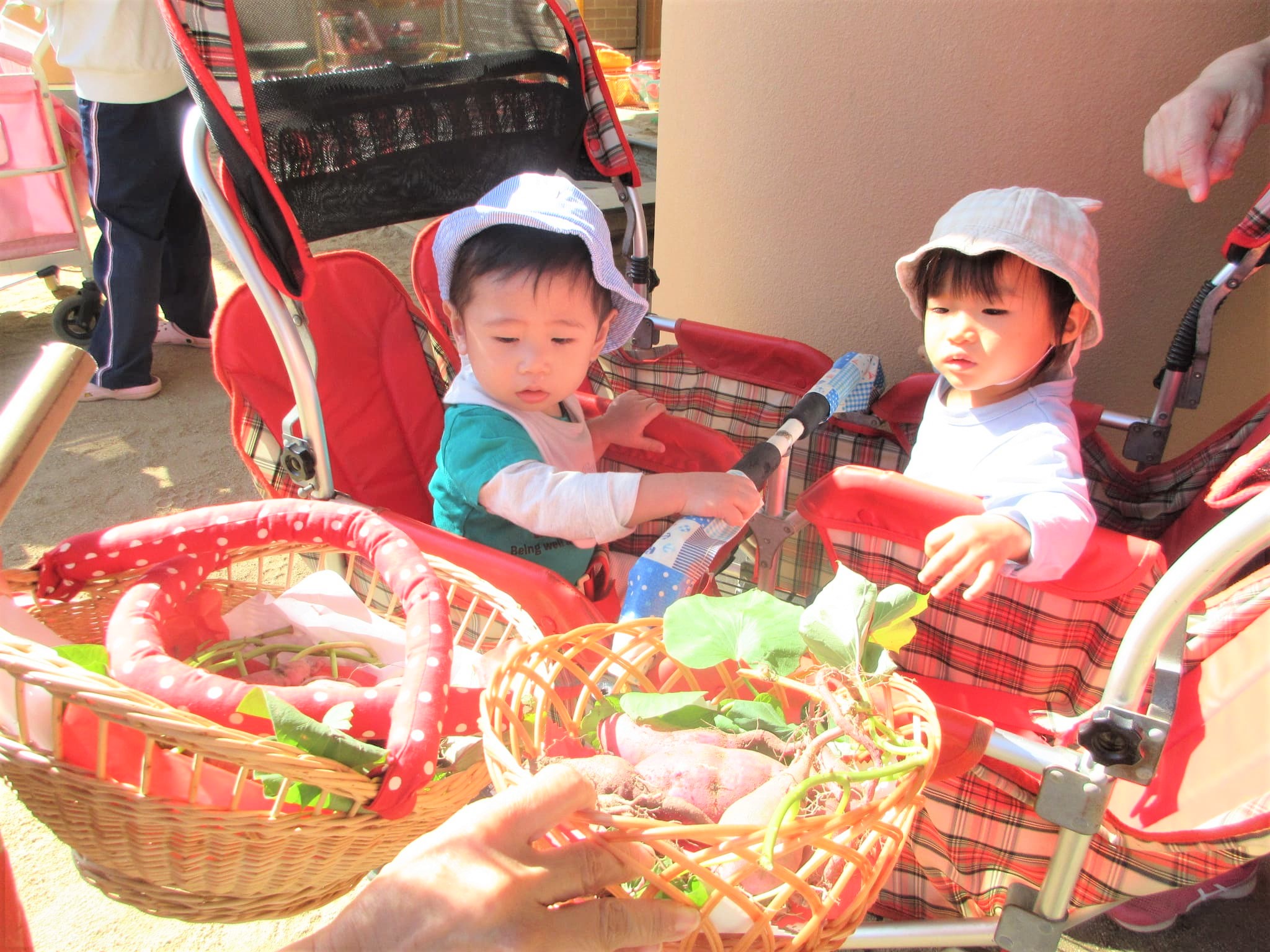 ベルキンダーで収穫したさつまいもをみんなで見て・・・