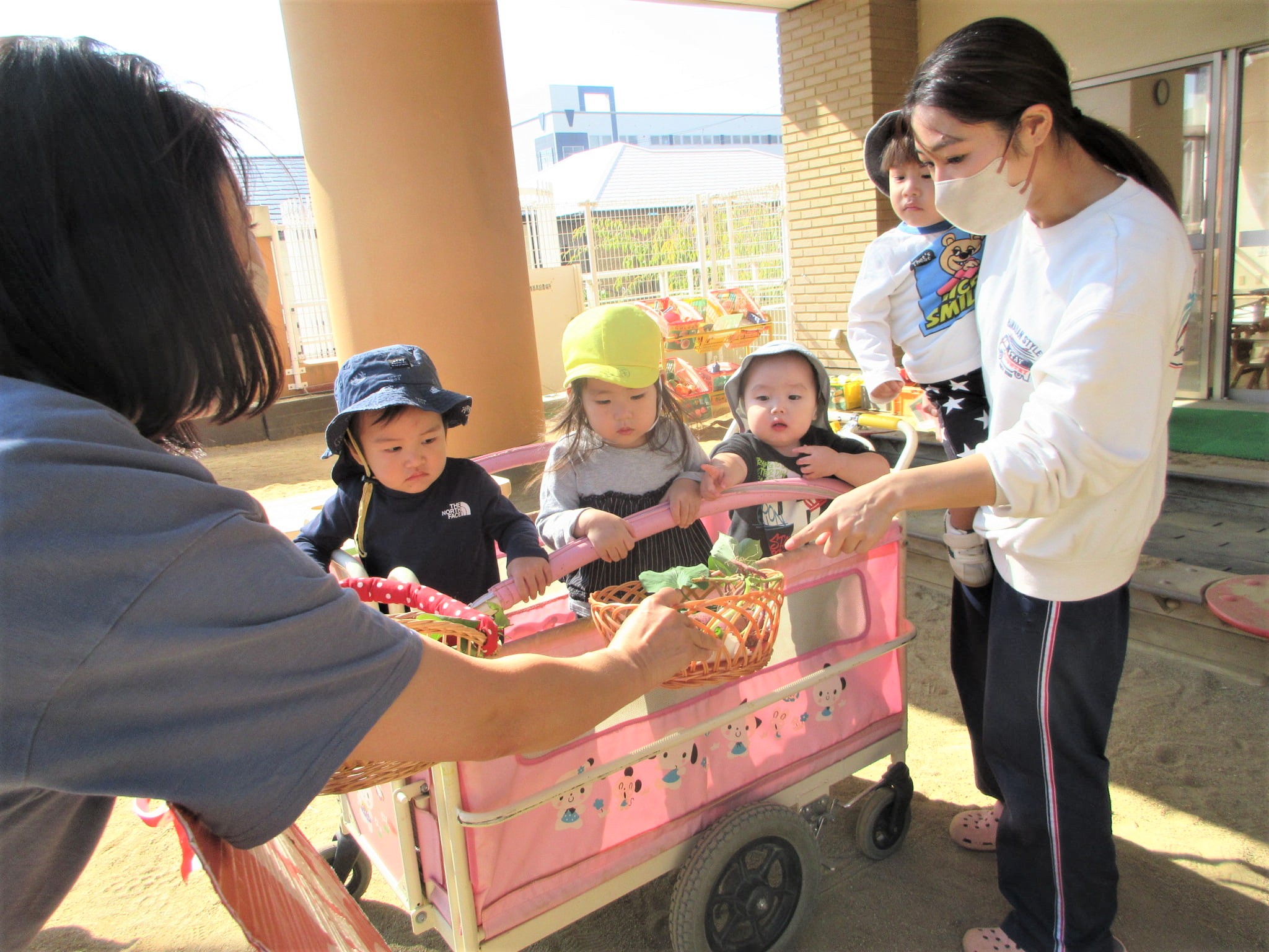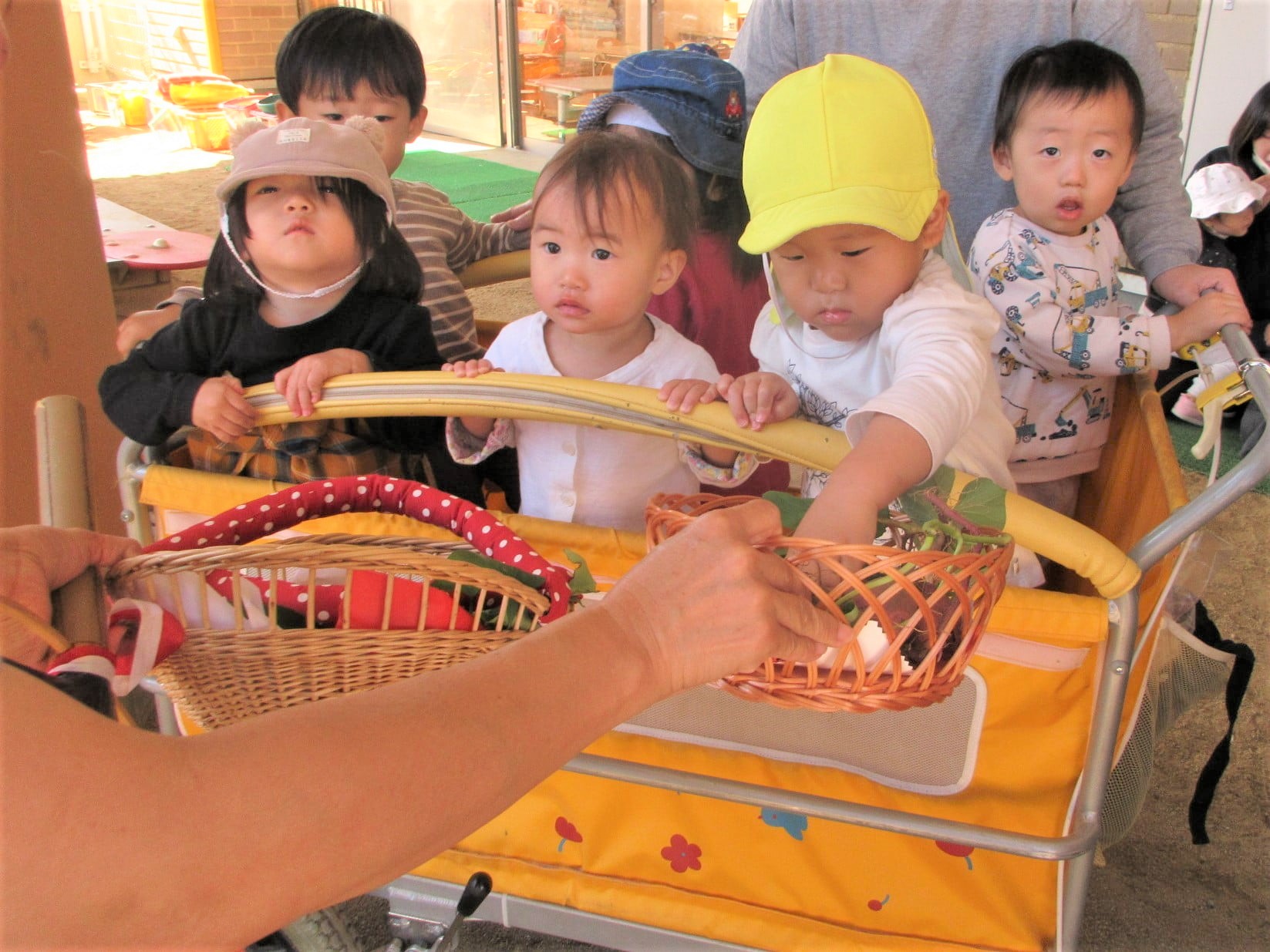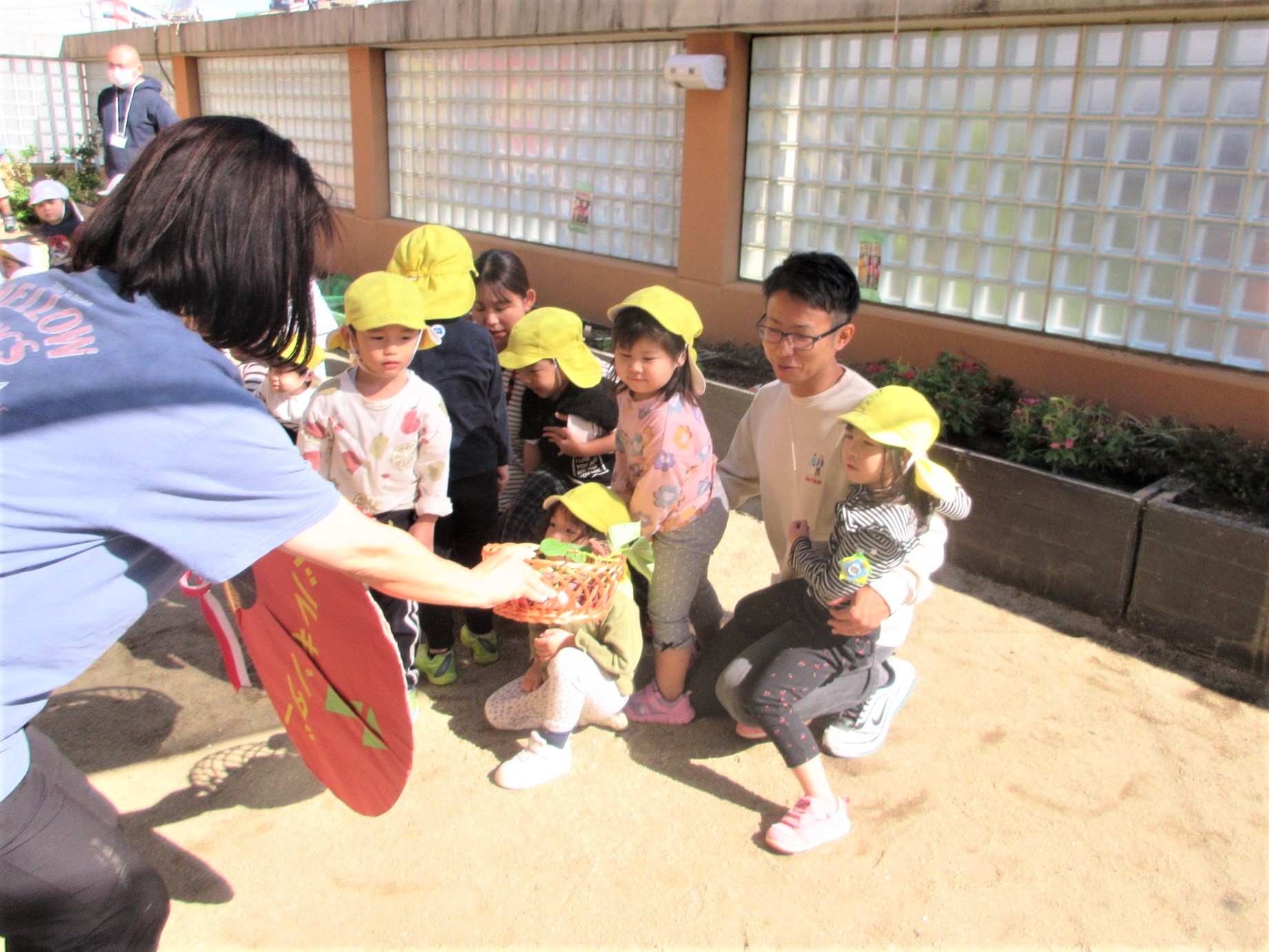 ベルキンダーで収穫したさつまいもをみんなで見て・・・