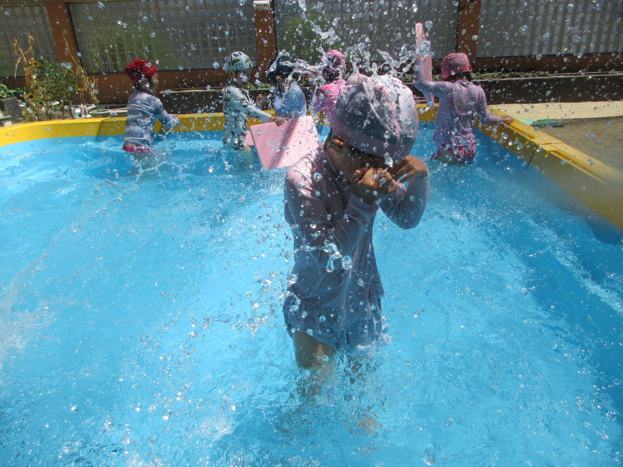 ぱんだ組の時には、水を思う存分に楽しんでいた、きりん組の子どもたちが