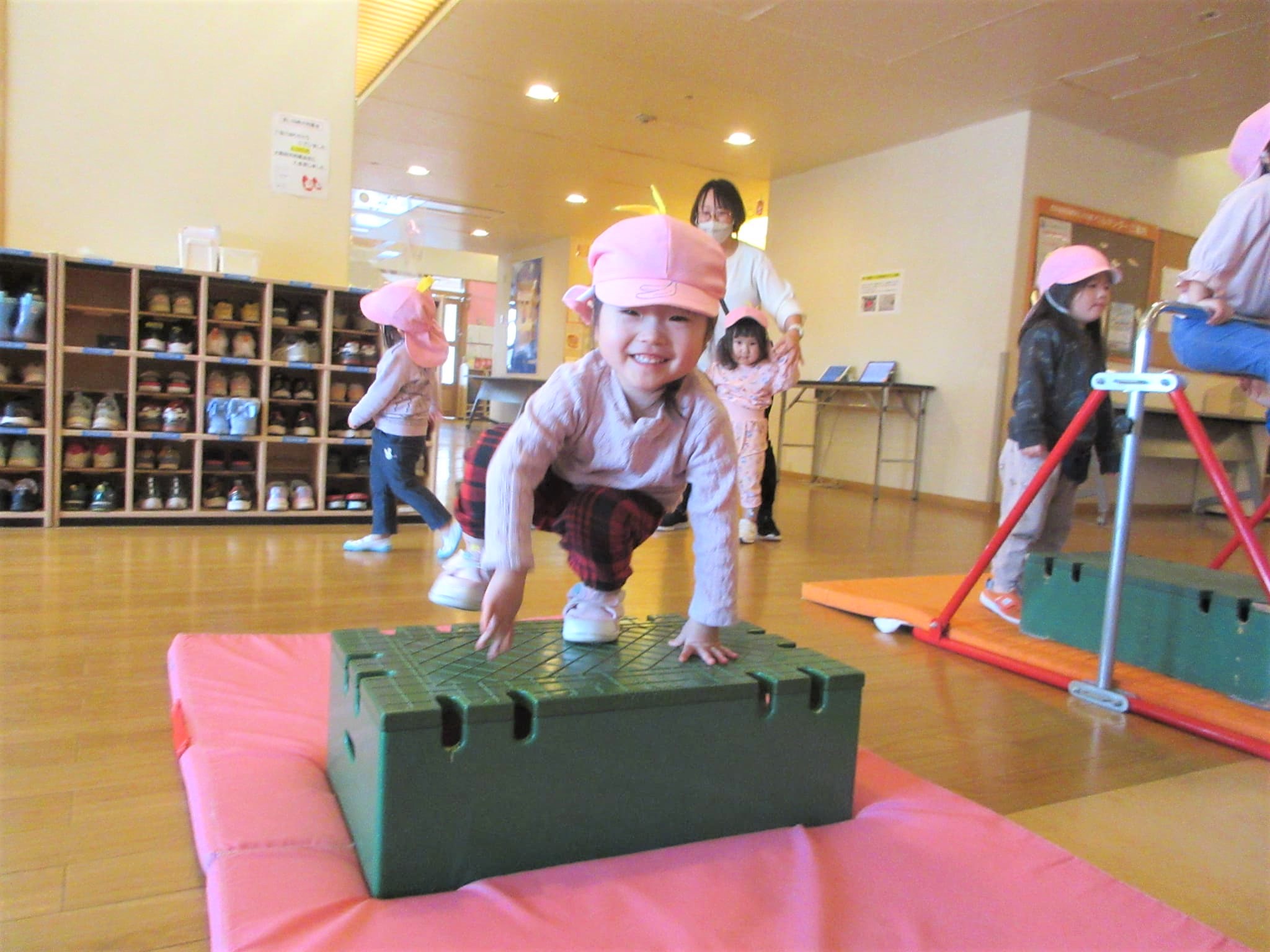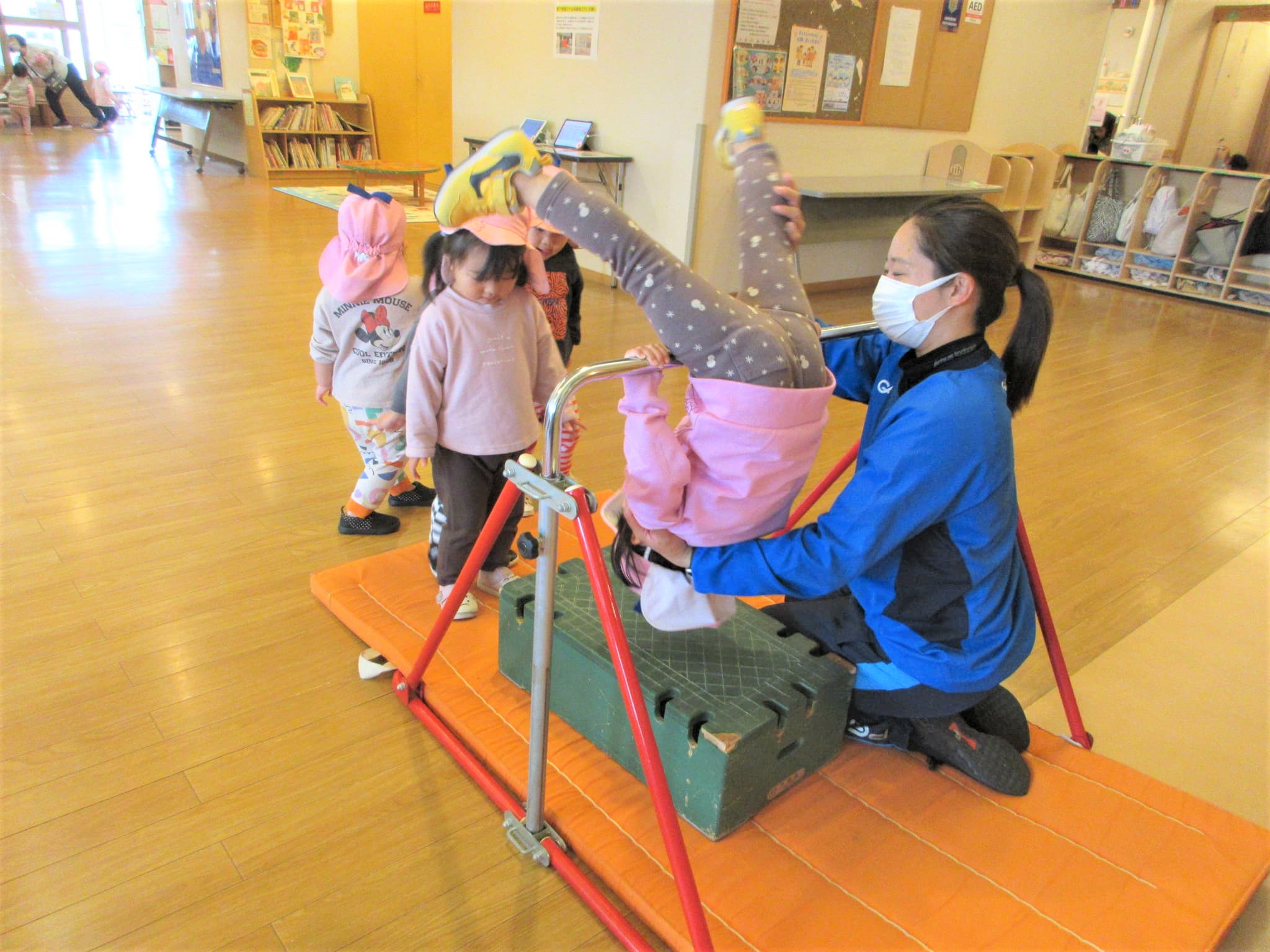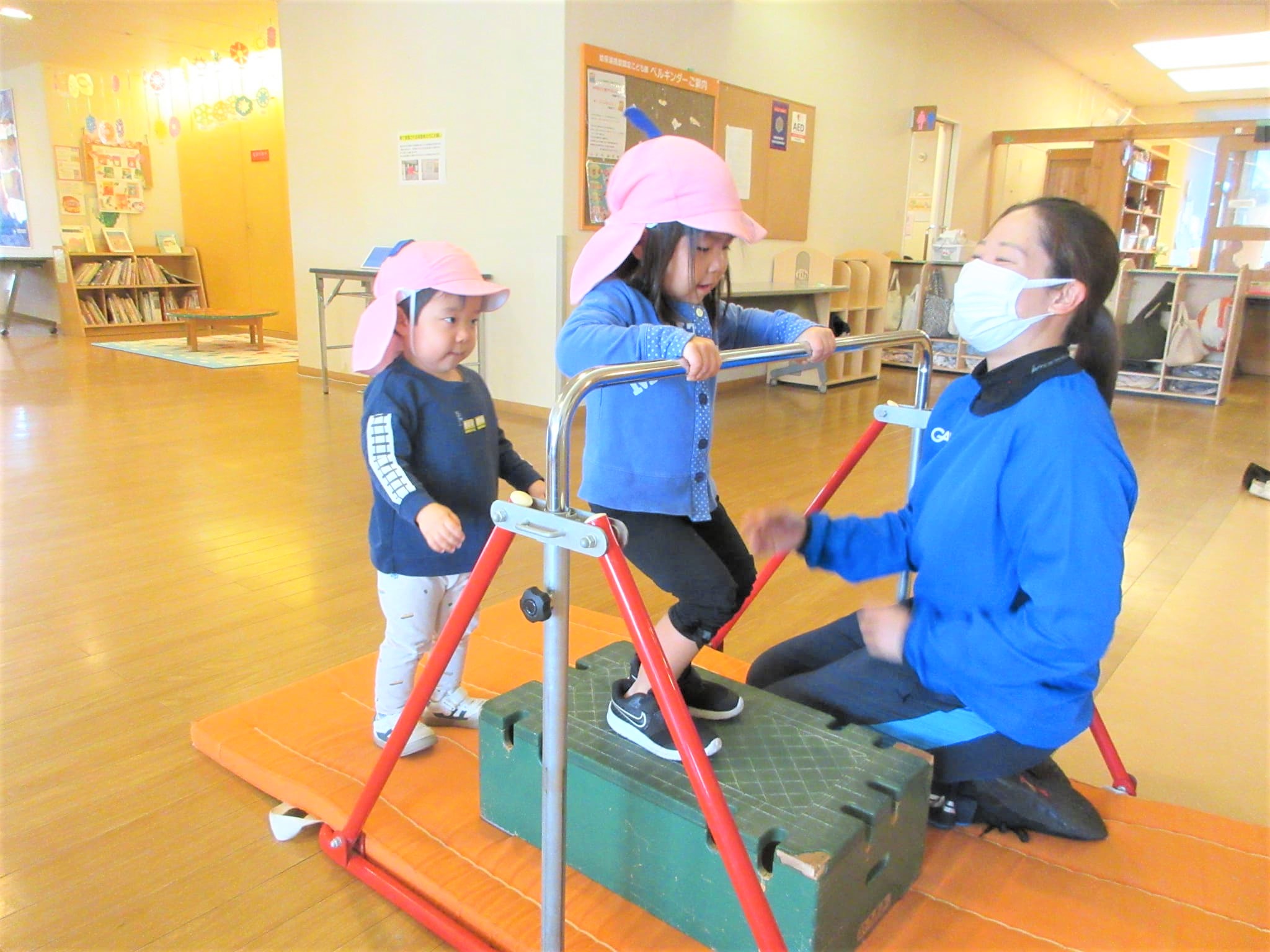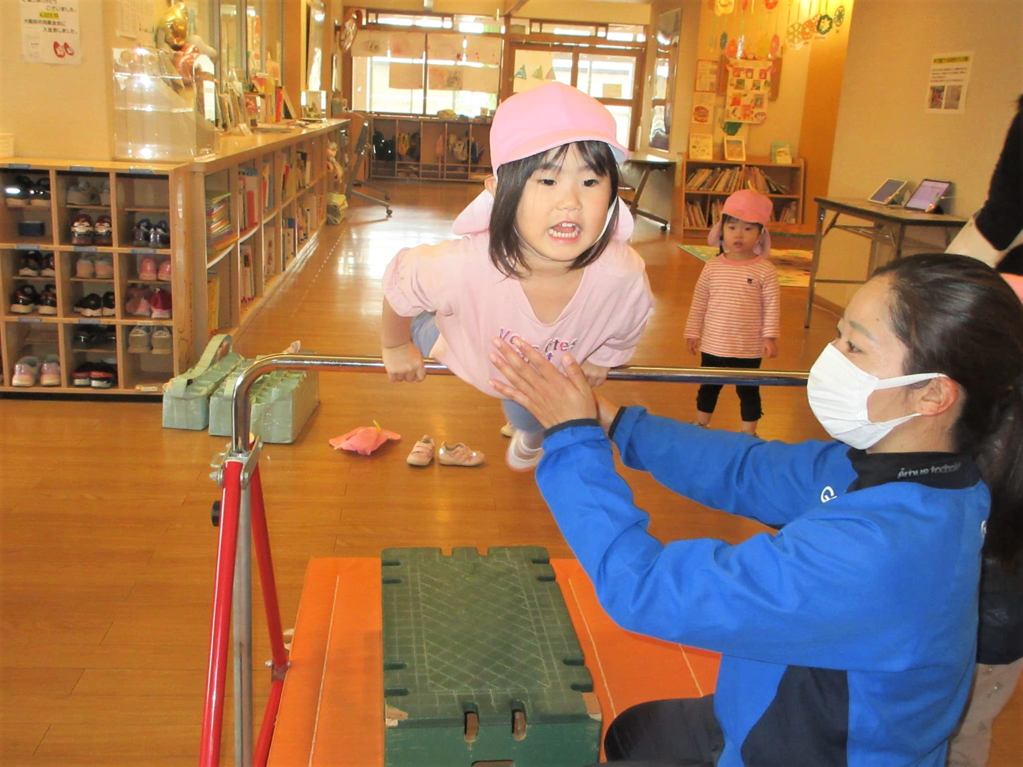 ↑写真のように、鉄棒を初めて取り組む『Mちゃん』を見ることができました♪