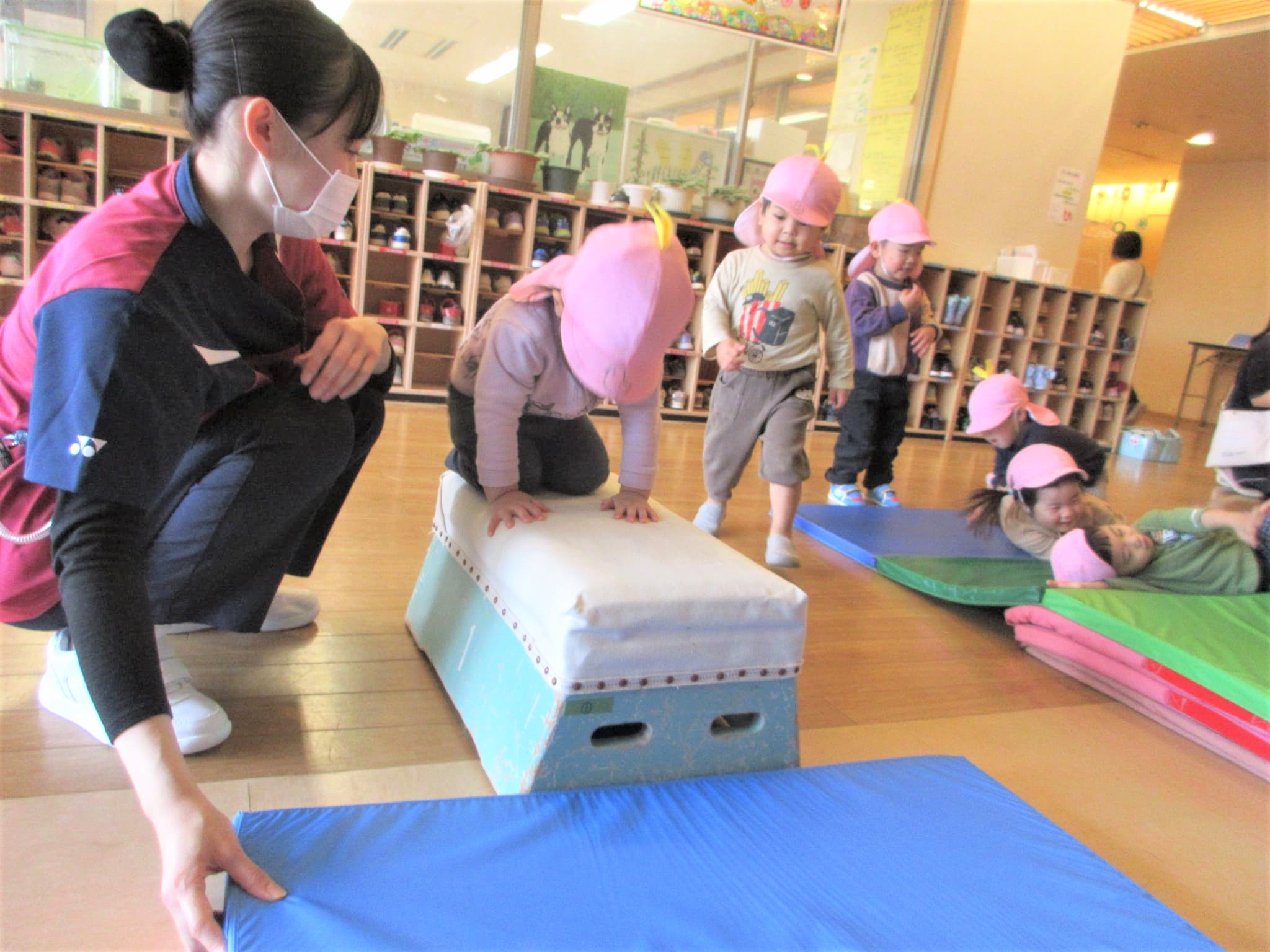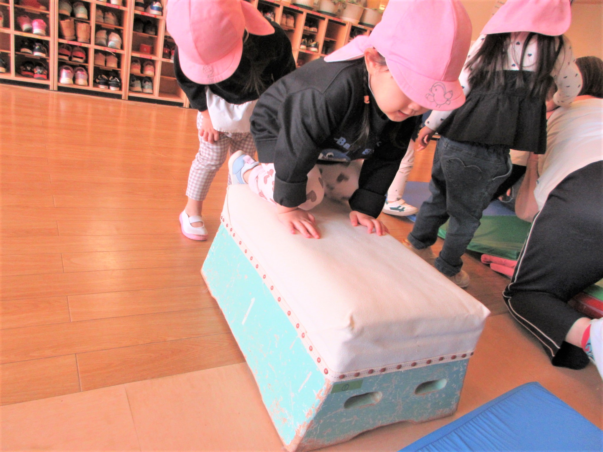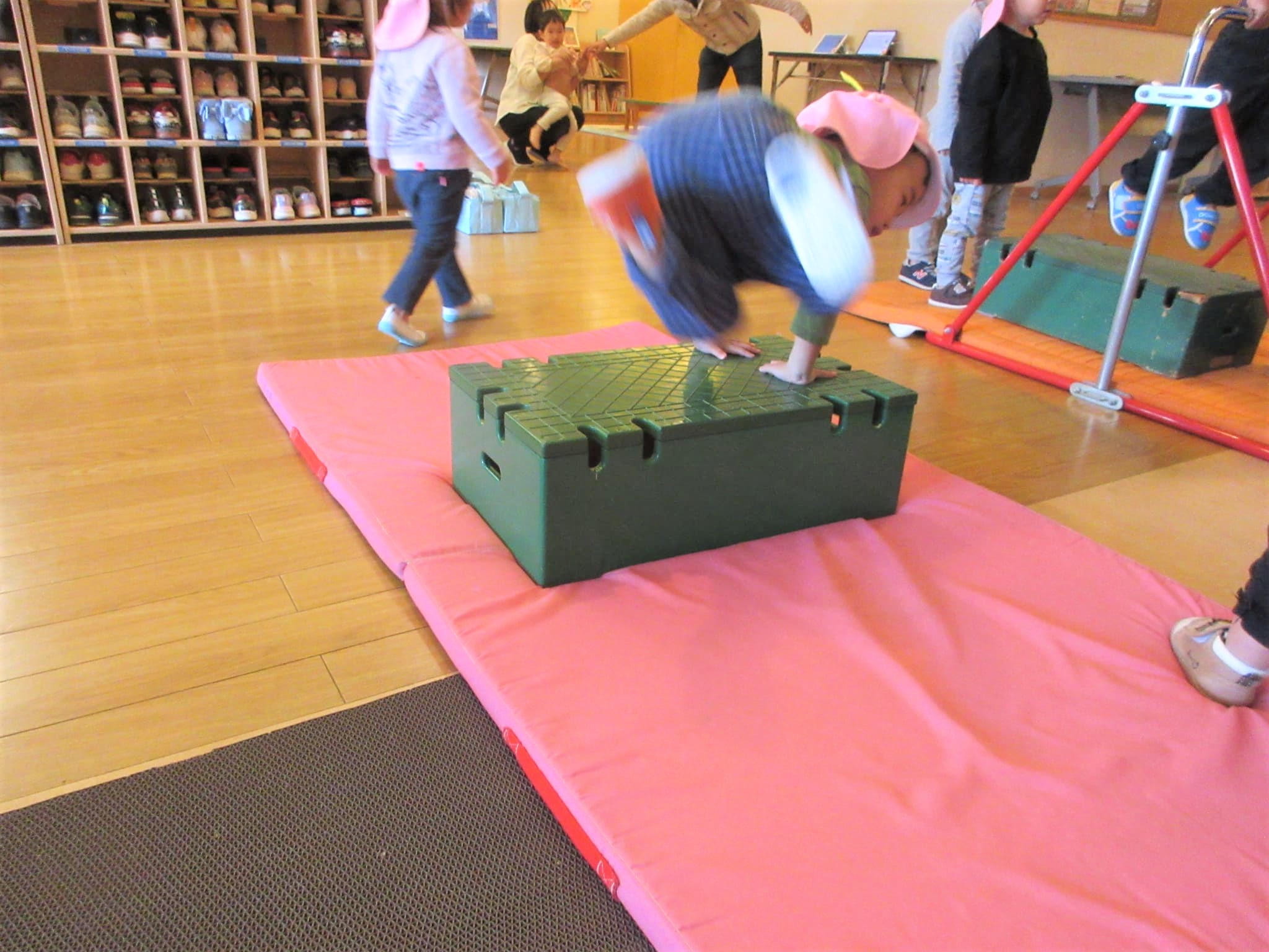 手をついた“まま”跳び箱に跳び乗るコツも少しずつ少しずつ・・・♪
