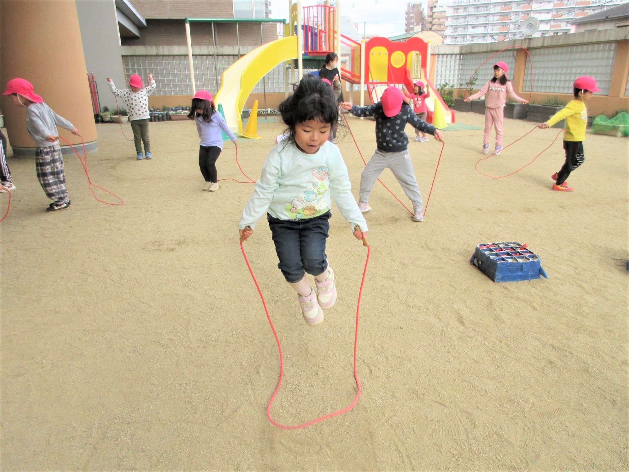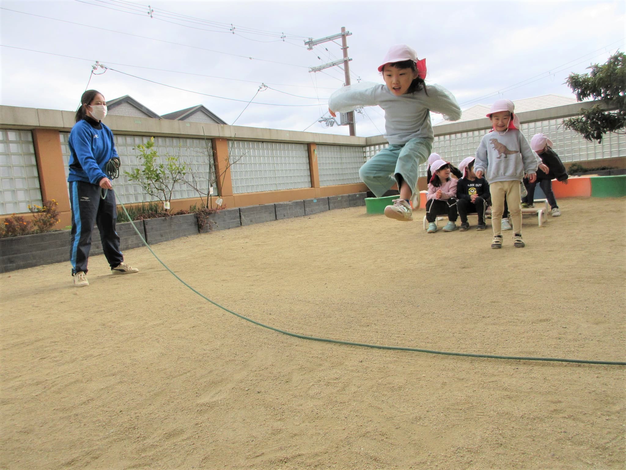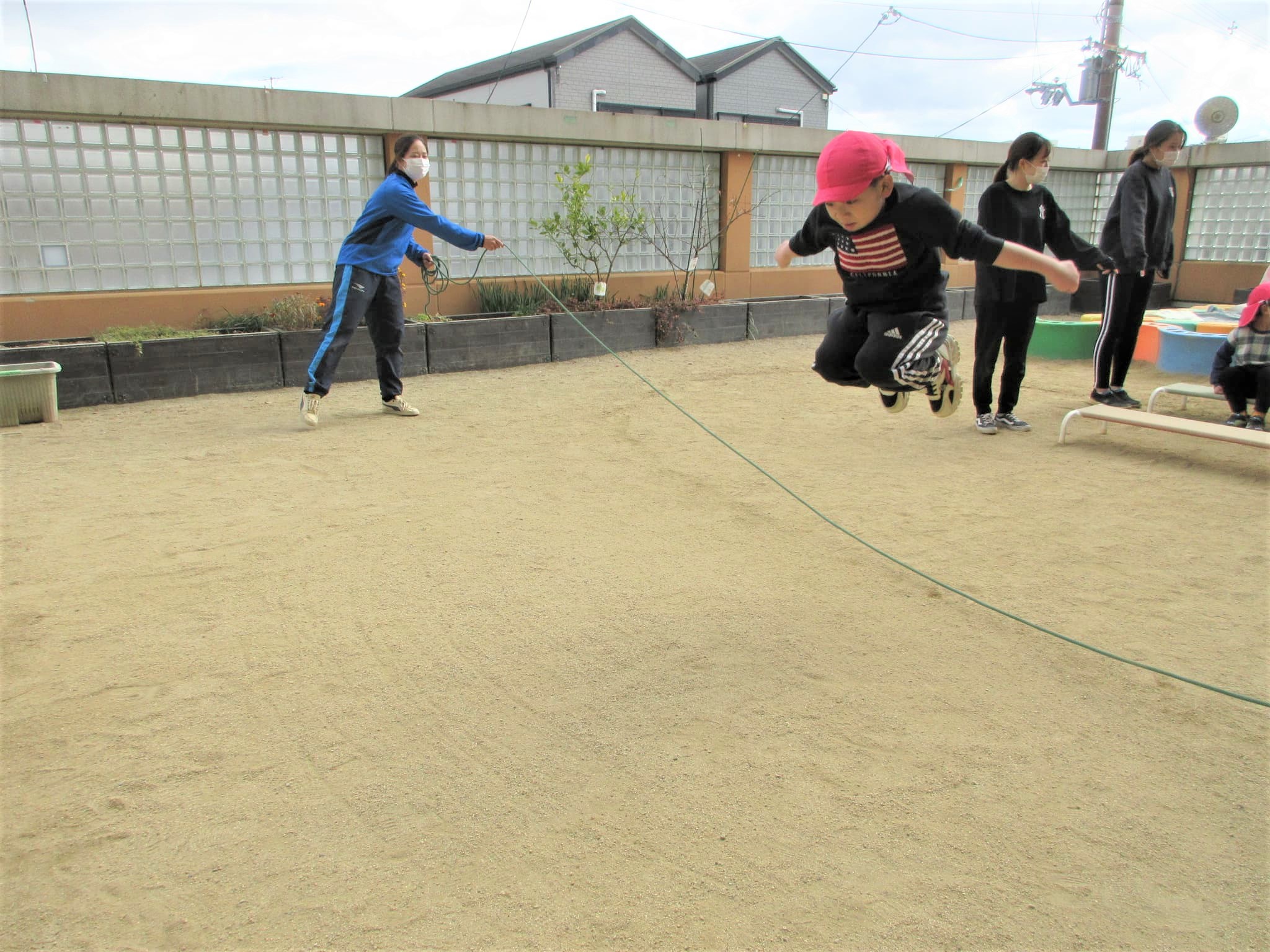 5回跳んだ子どもに「次何回跳んでみる?」と聞くと