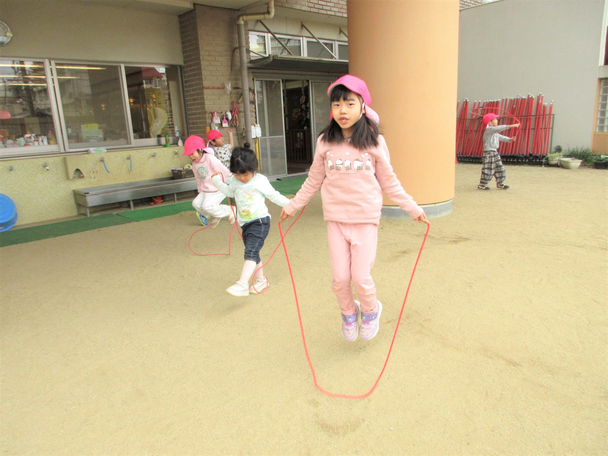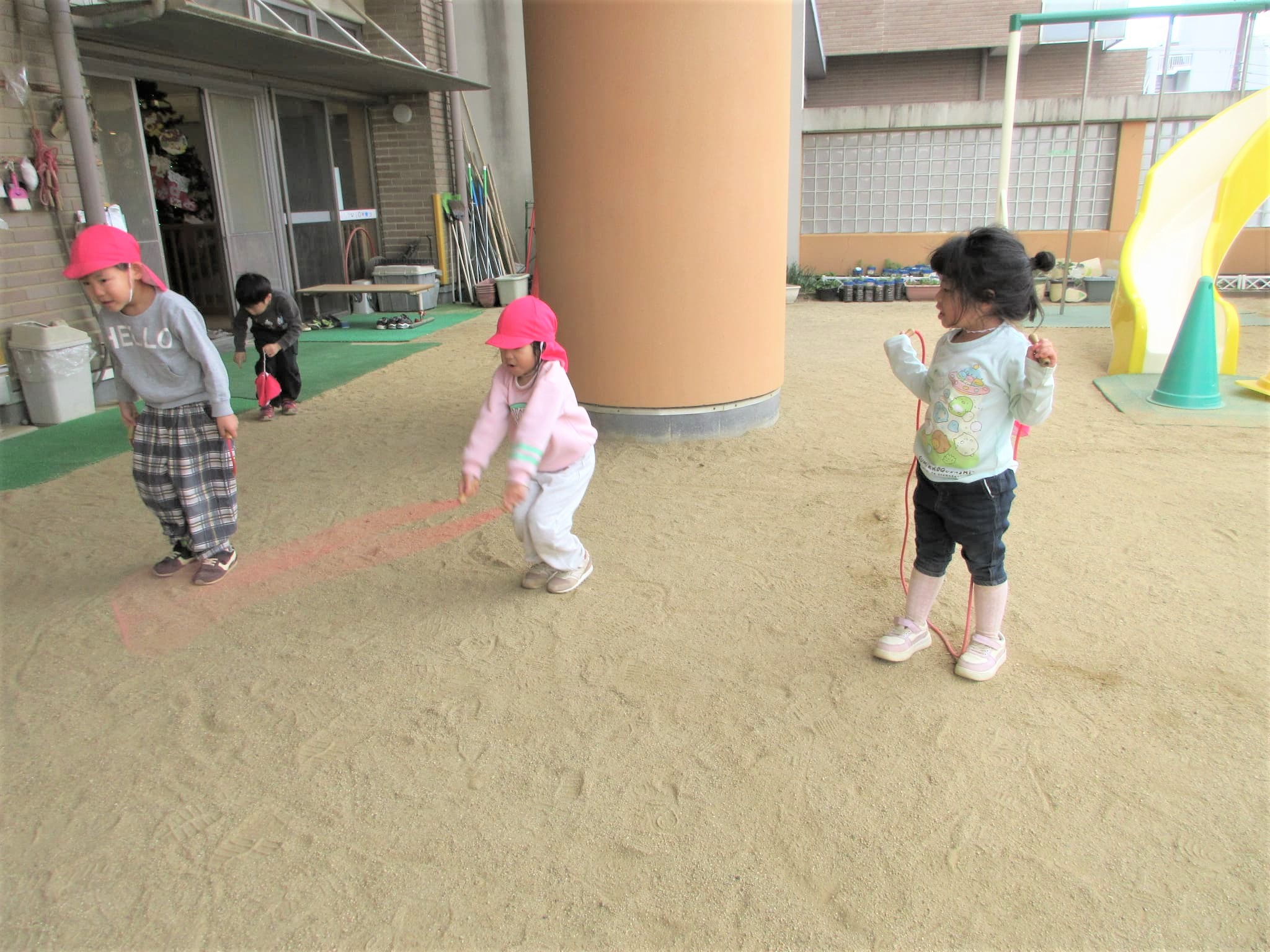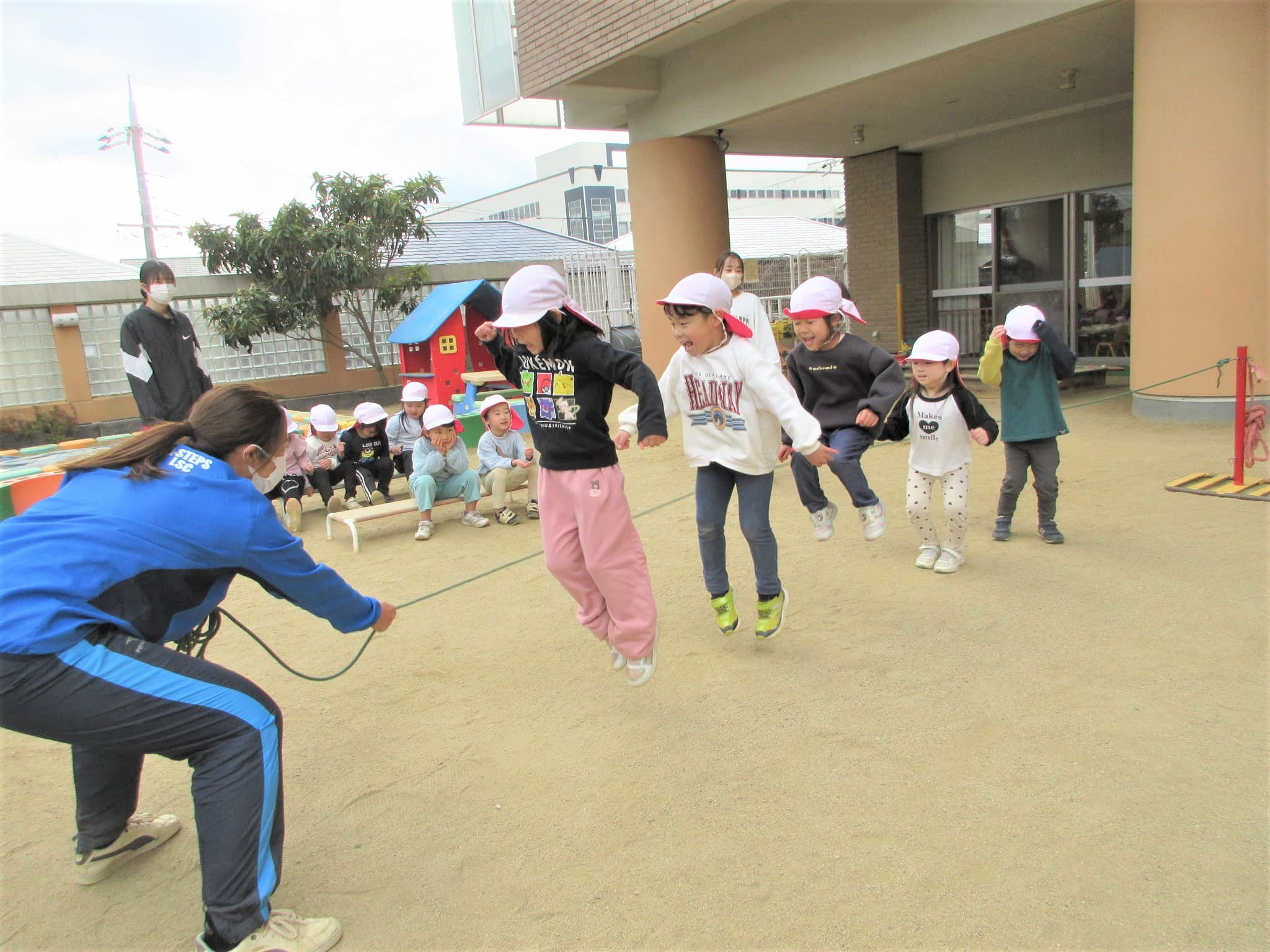 5回跳んだ子どもに「次何回跳んでみる?」と聞くと
