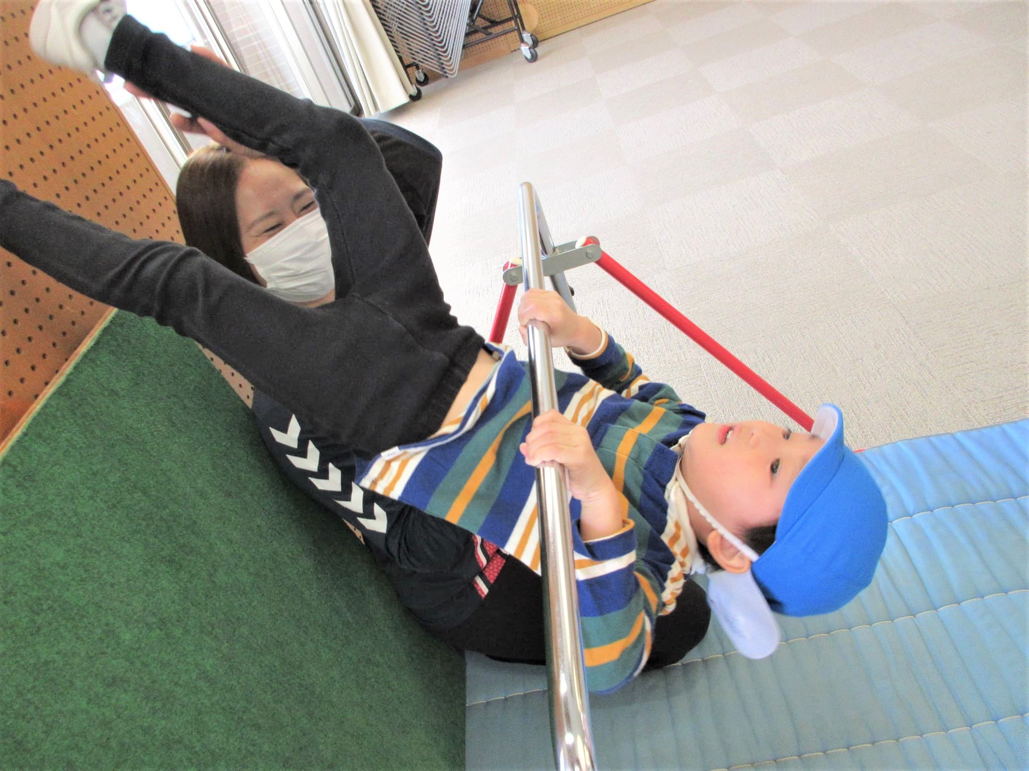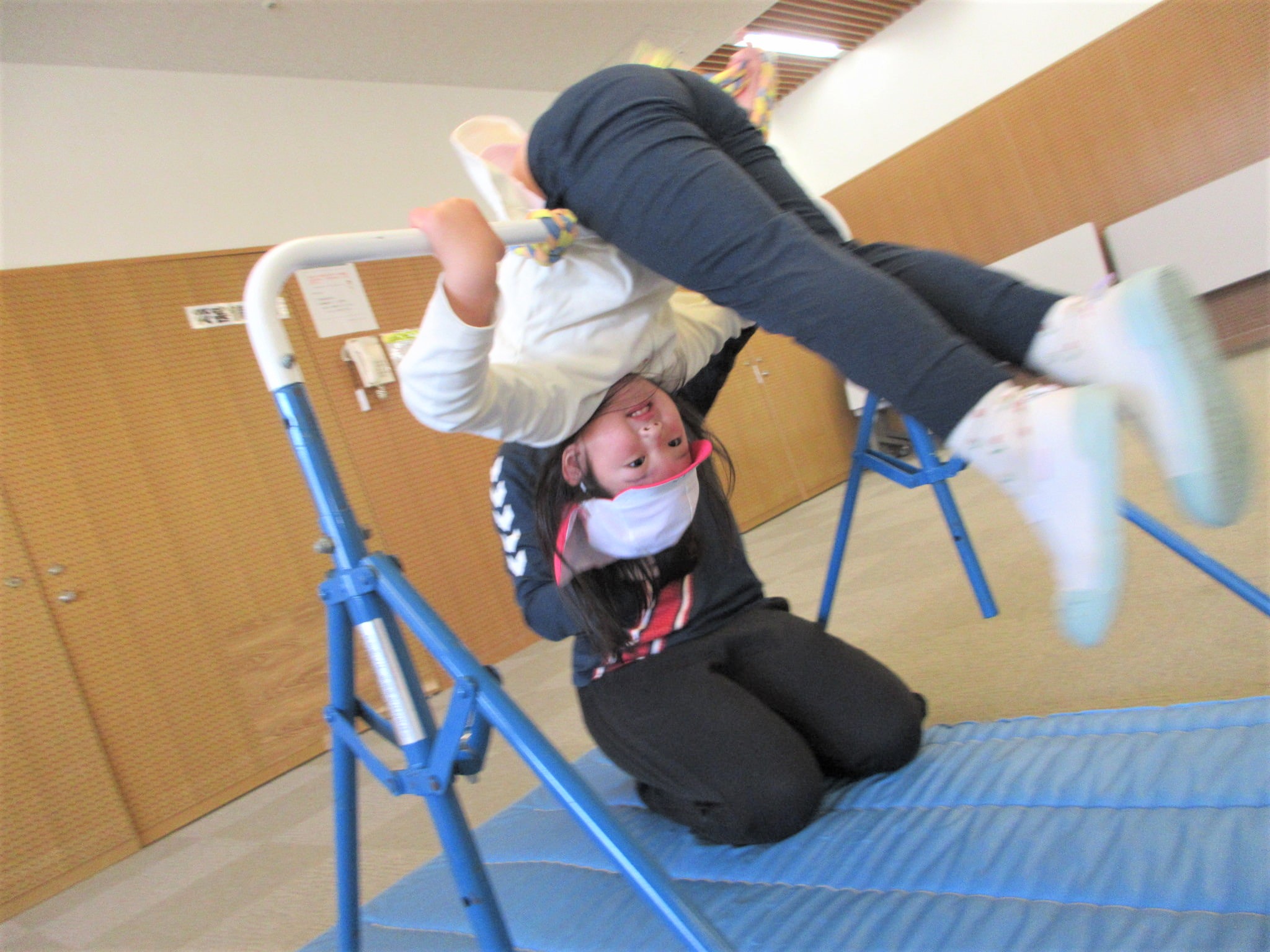 逆上がりの補助の板を力強く蹴って、クルっと回ることができるようになってきた
