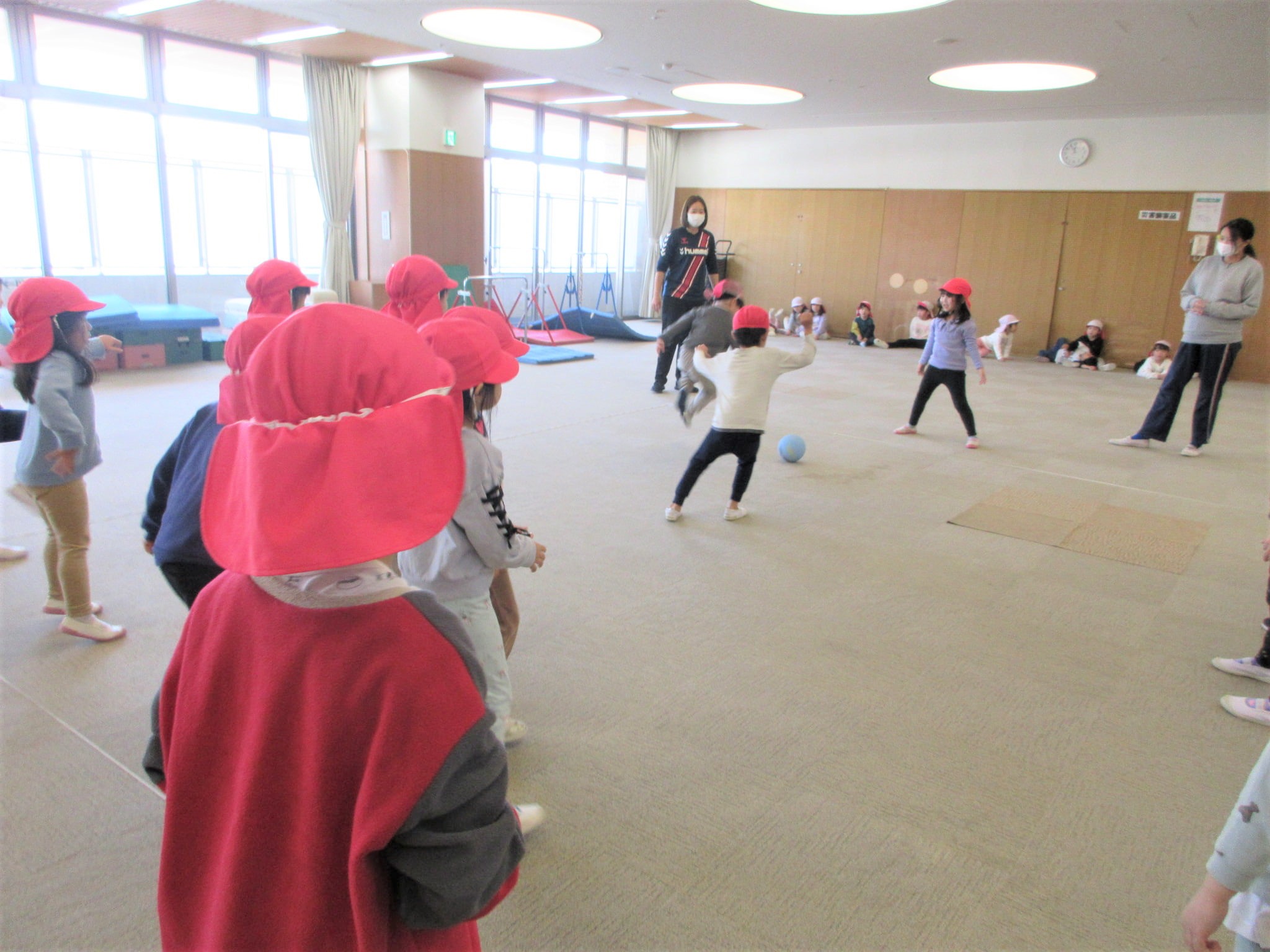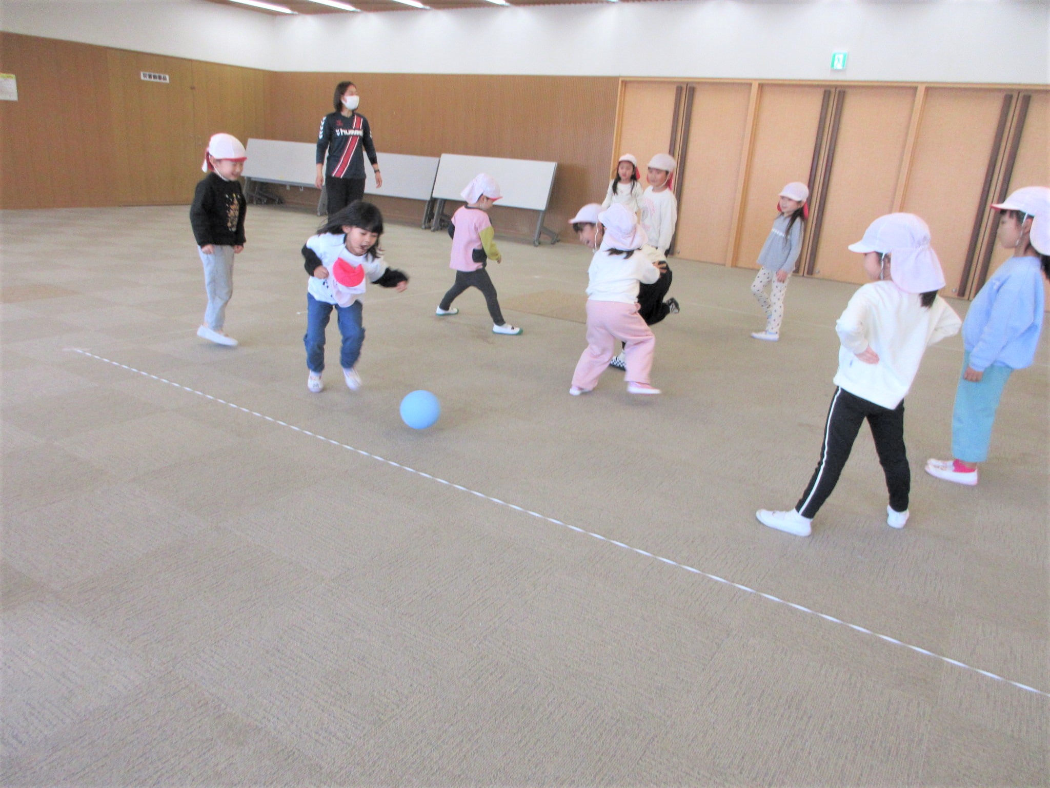 外に出ている子どもが、対角線に向かい合ってボールを転がすようにもなってきました♪