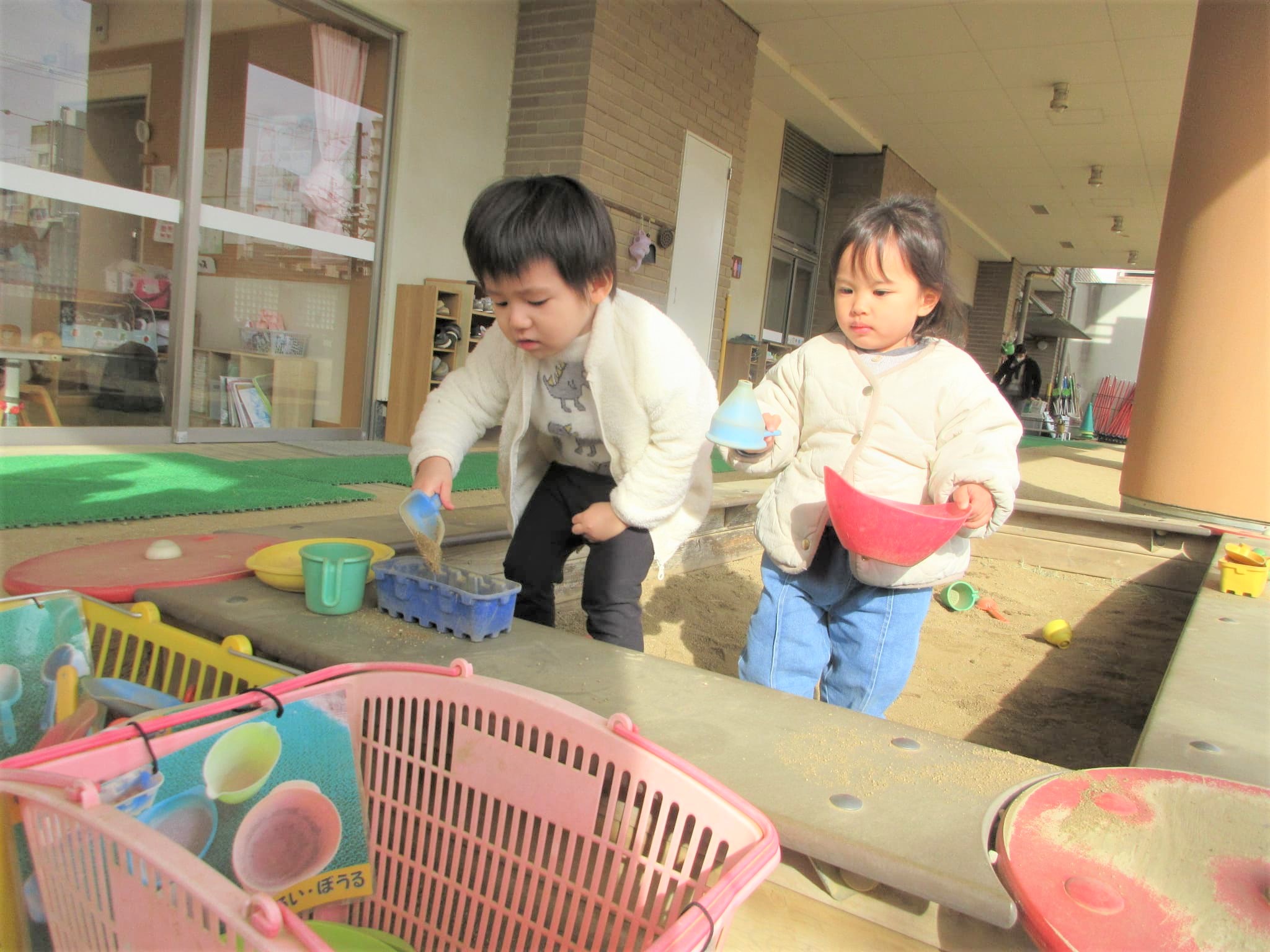 砂場のおもちゃを持ってきてくれる場面もありました♪