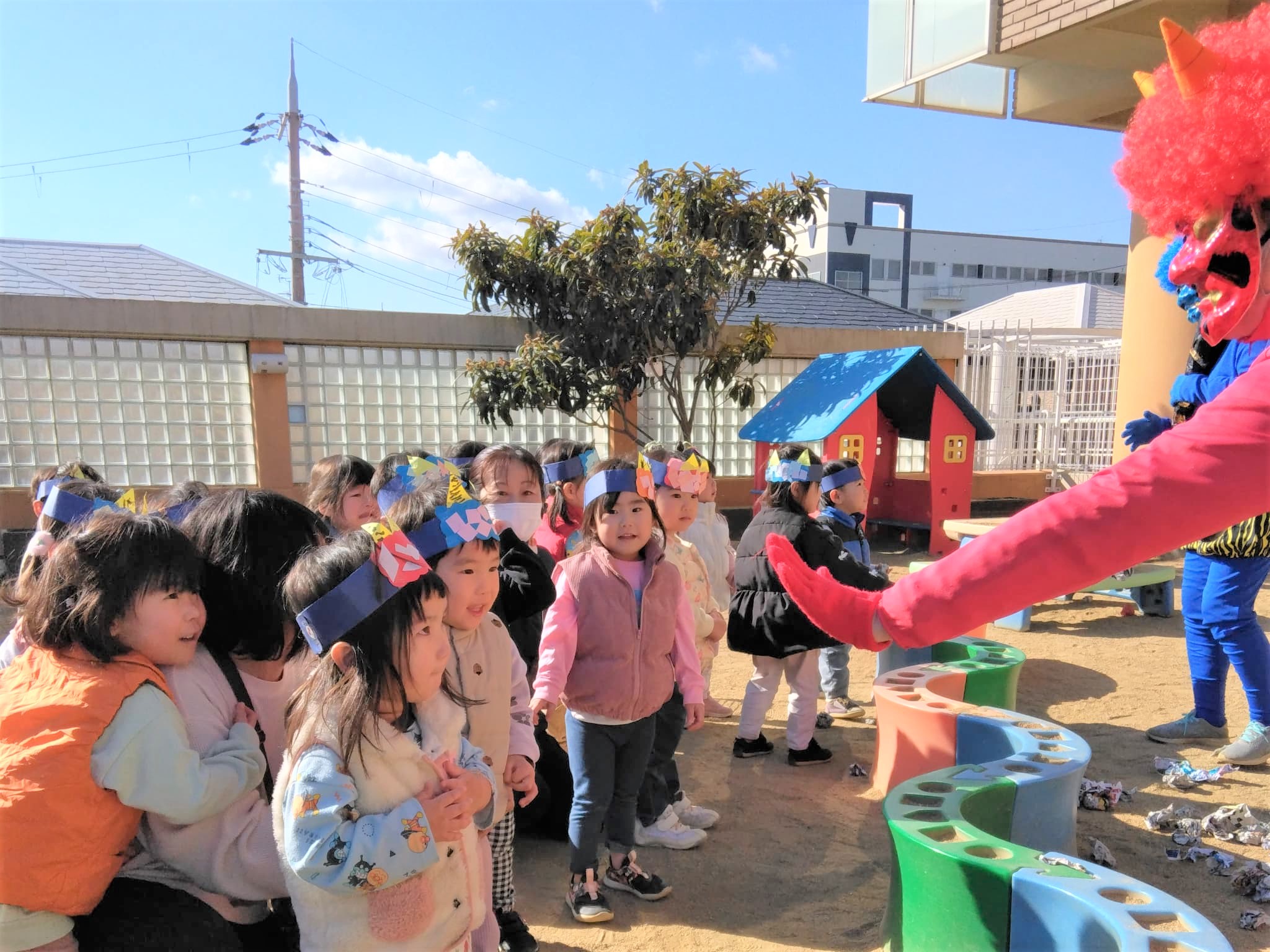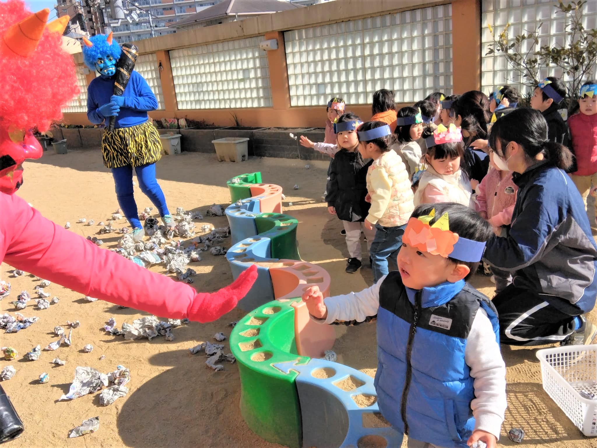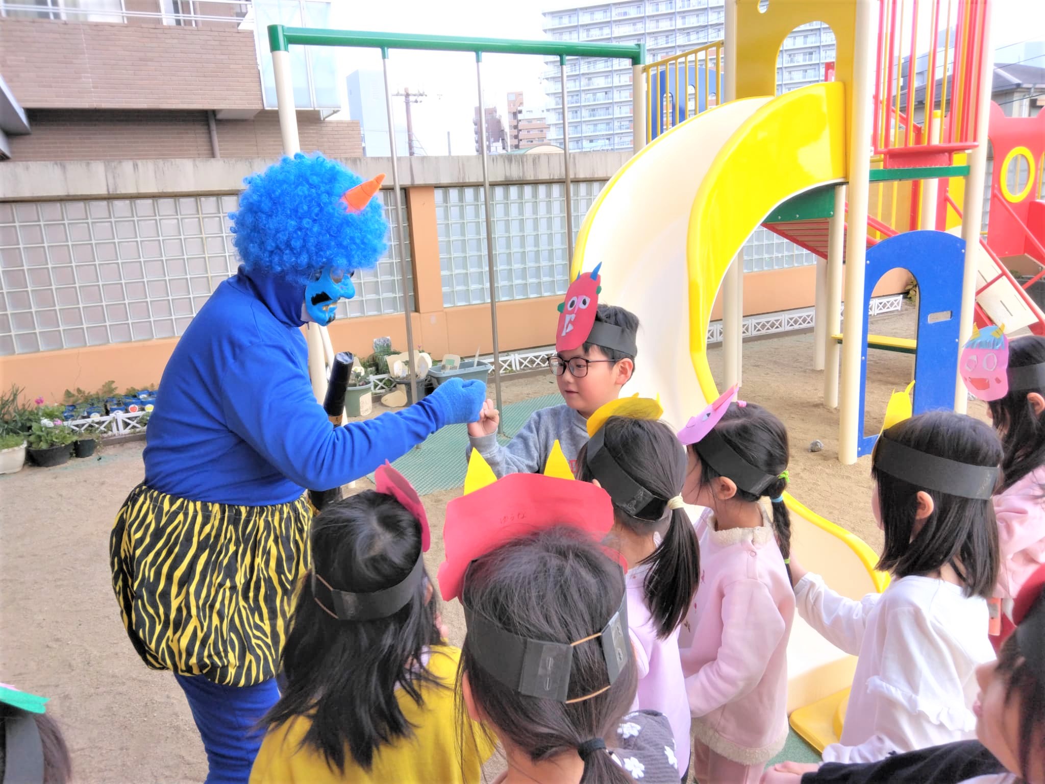 今年もベルキンダーの園庭に、赤鬼・青鬼がやってきました!!