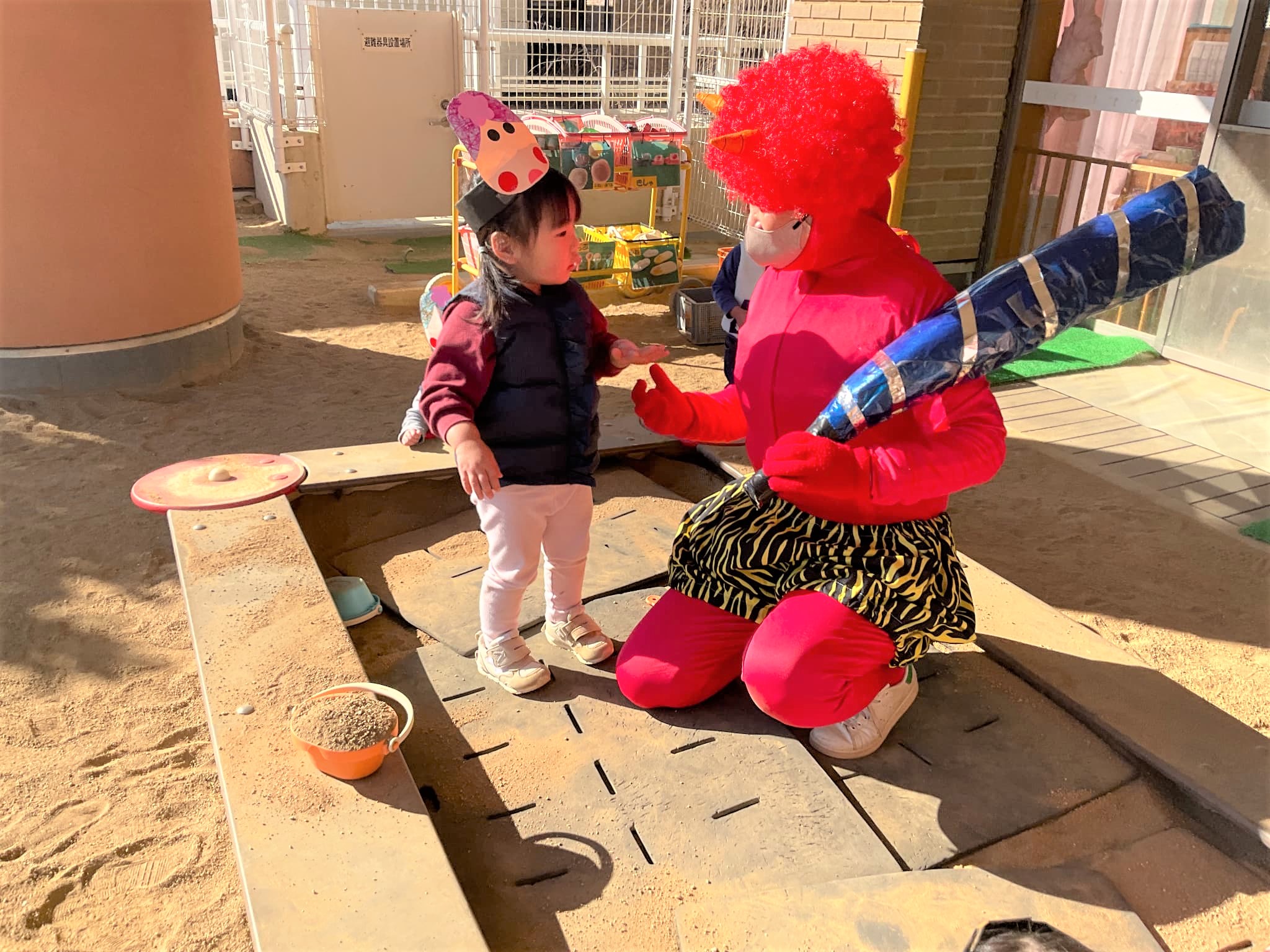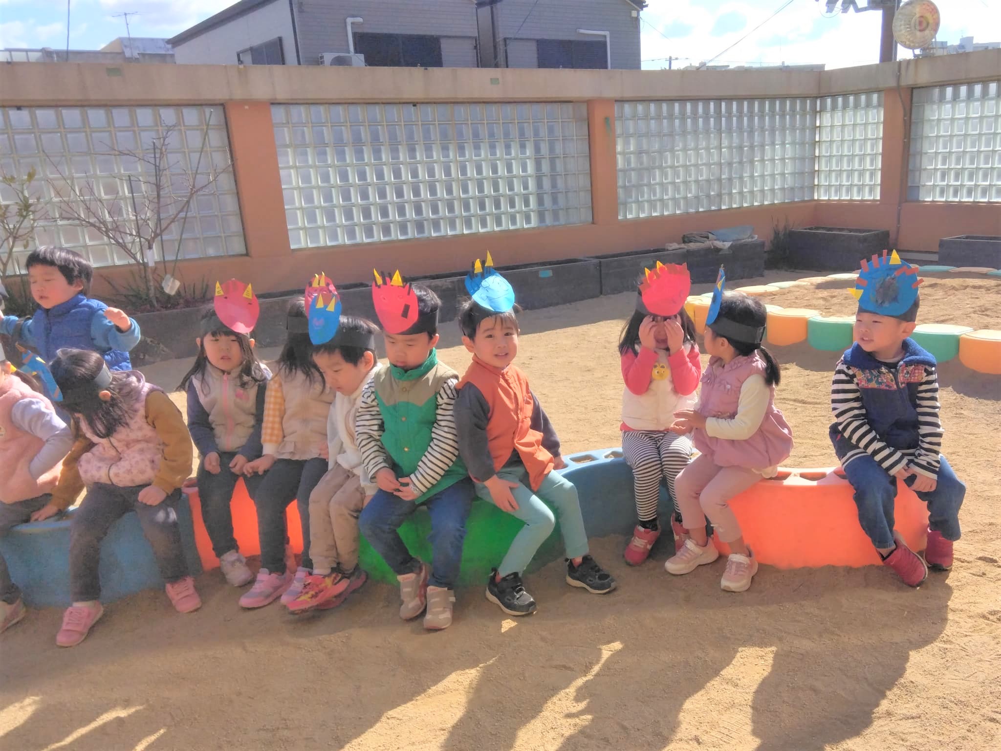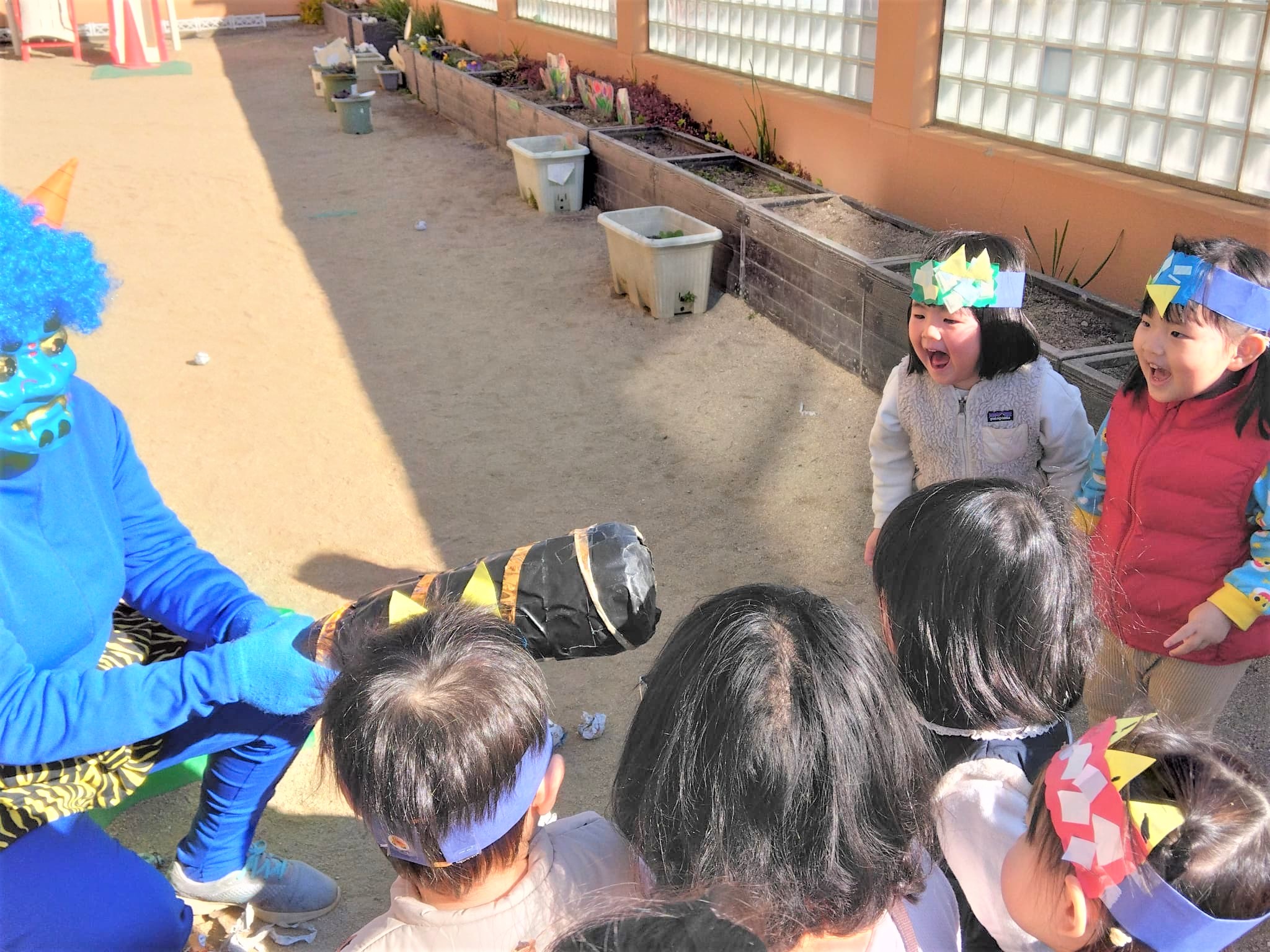 ひよこ組・あひる組・りす組のところに来てくれた鬼は、顔の部分は鬼ではありません♪