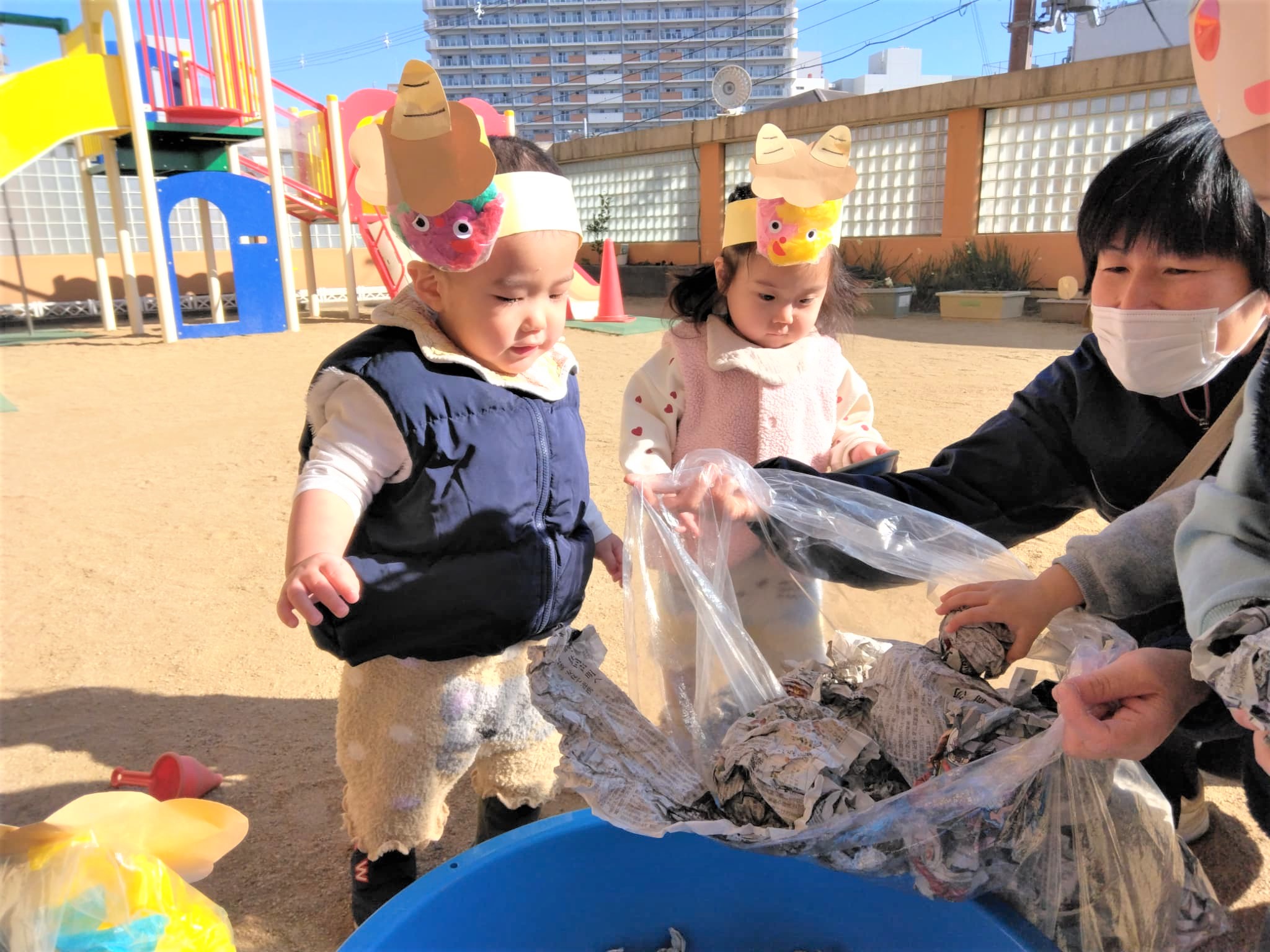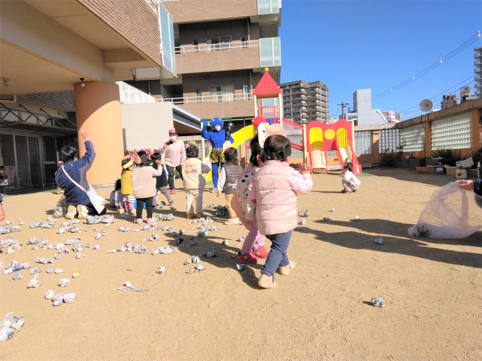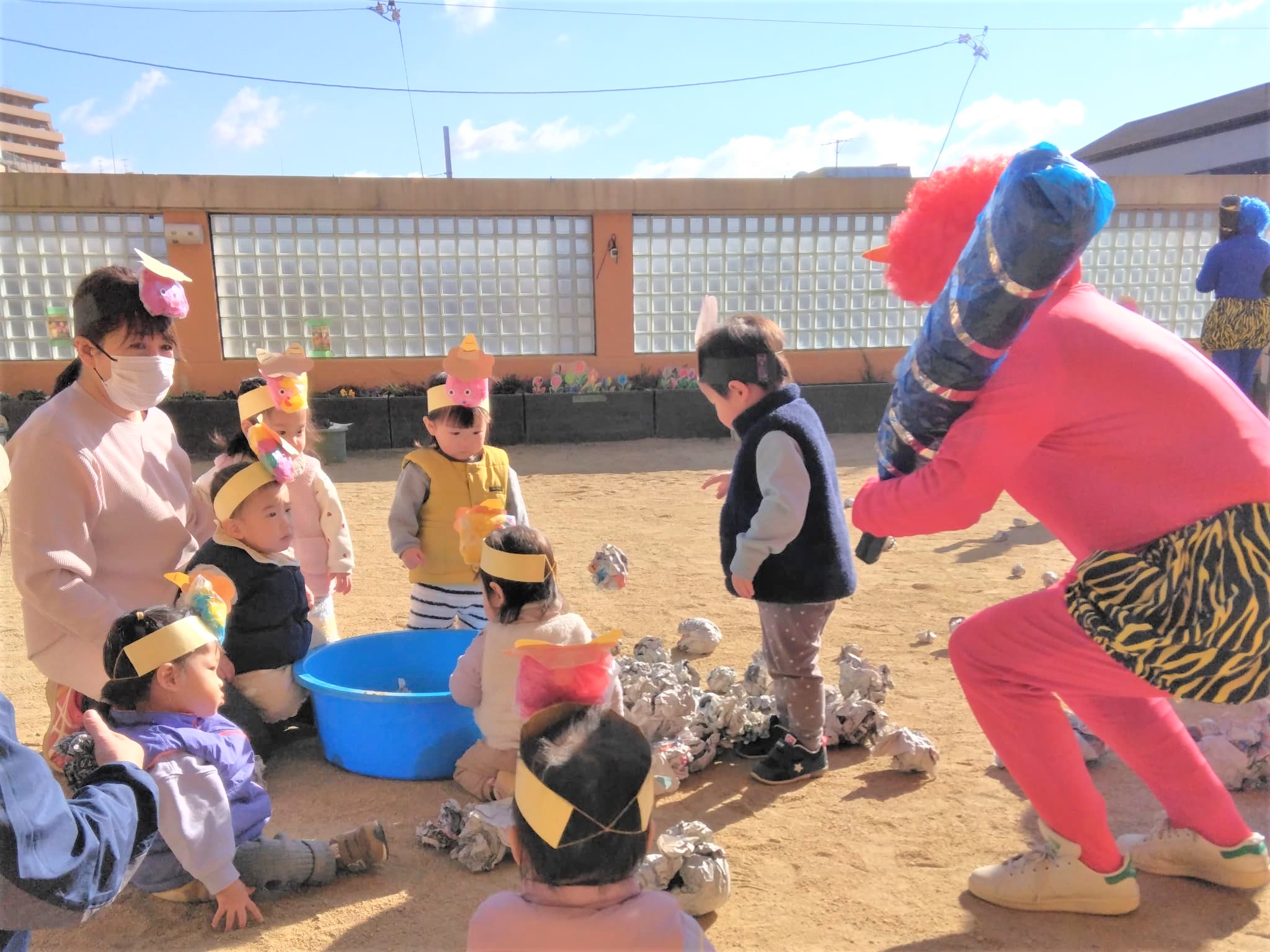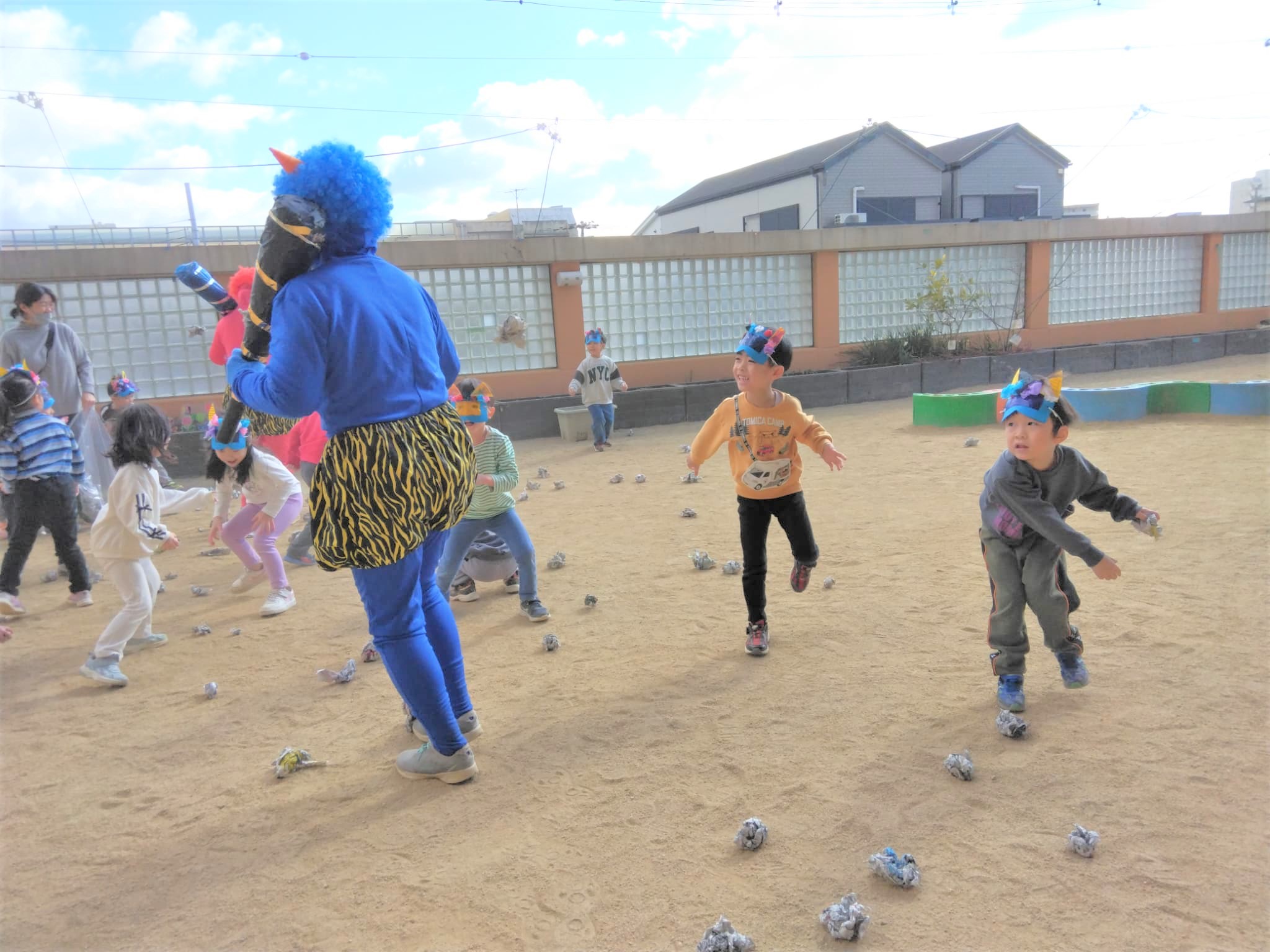 ひよこ組・あひる組・りす組のところに来てくれた鬼は、顔の部分は鬼ではありません♪