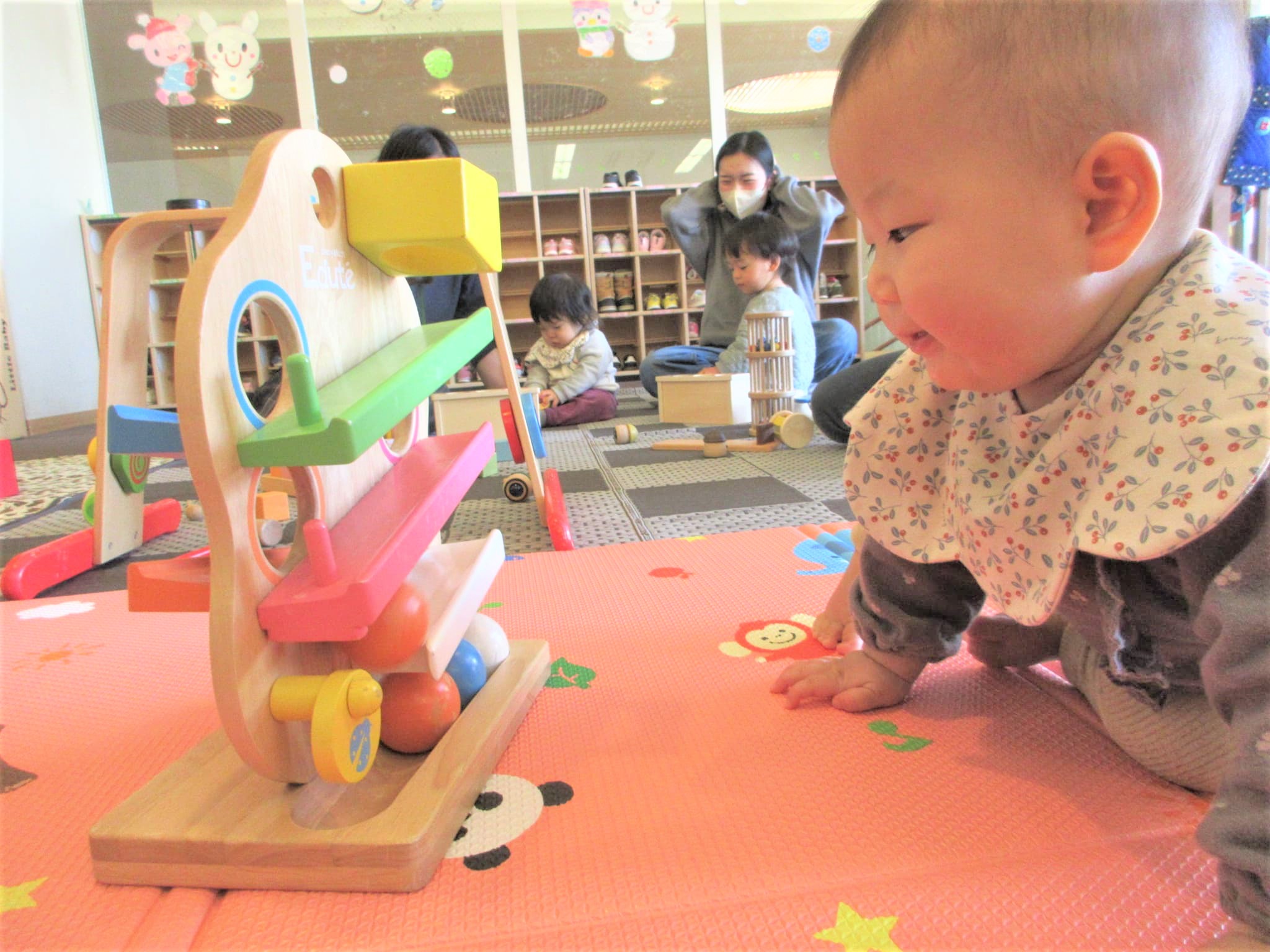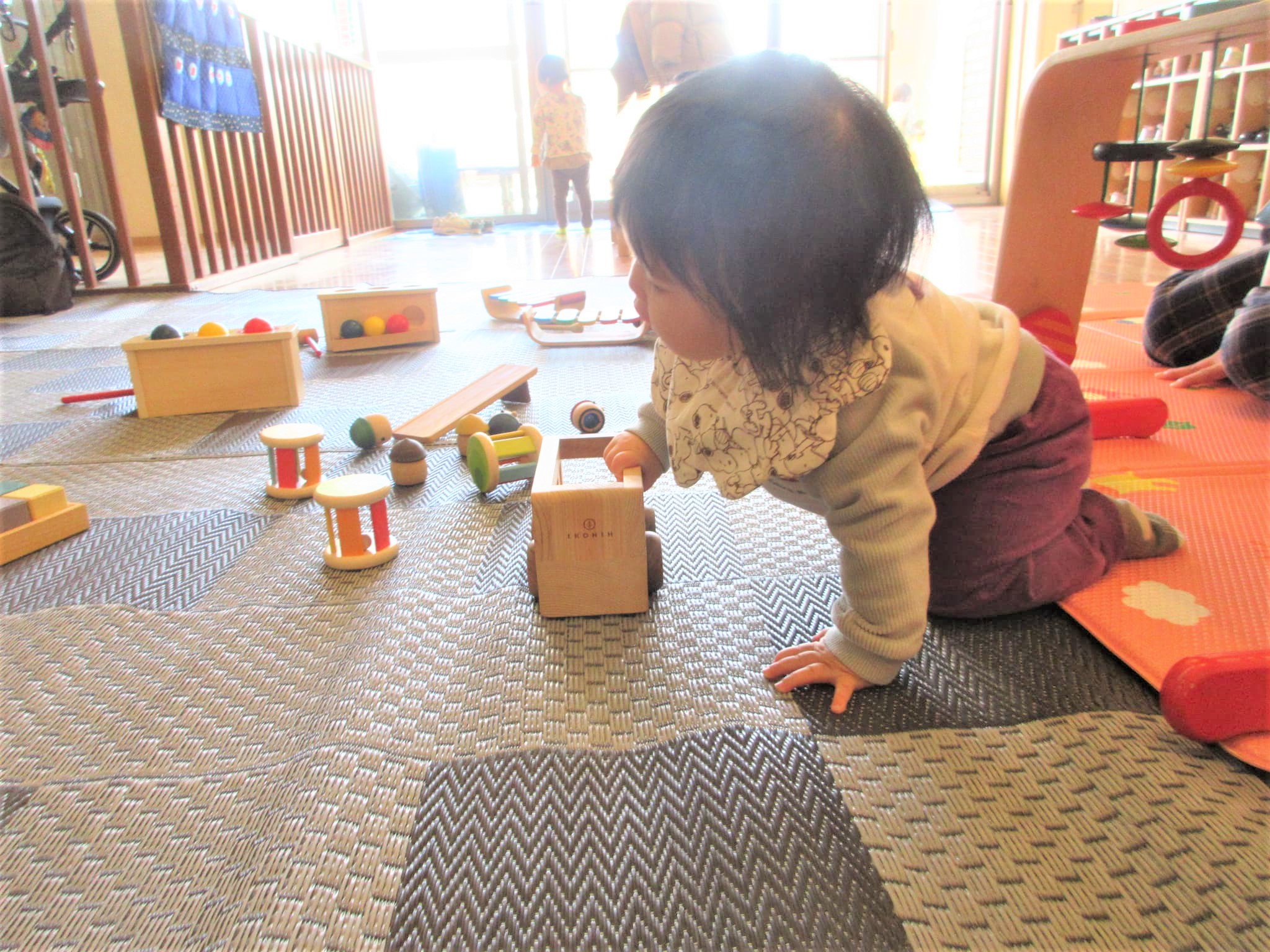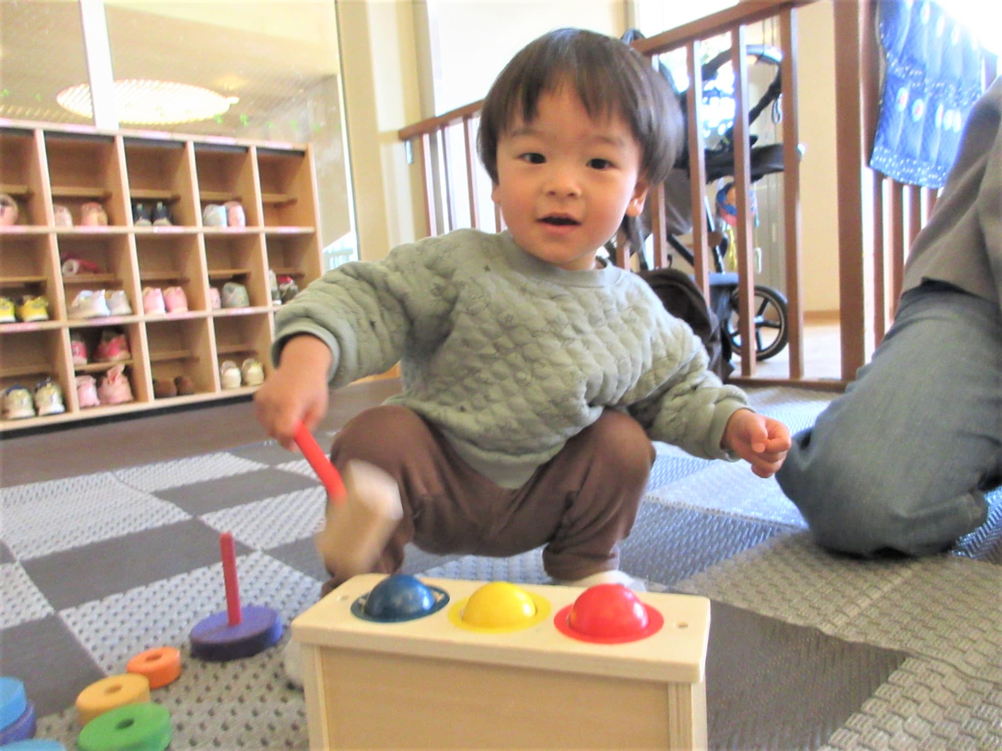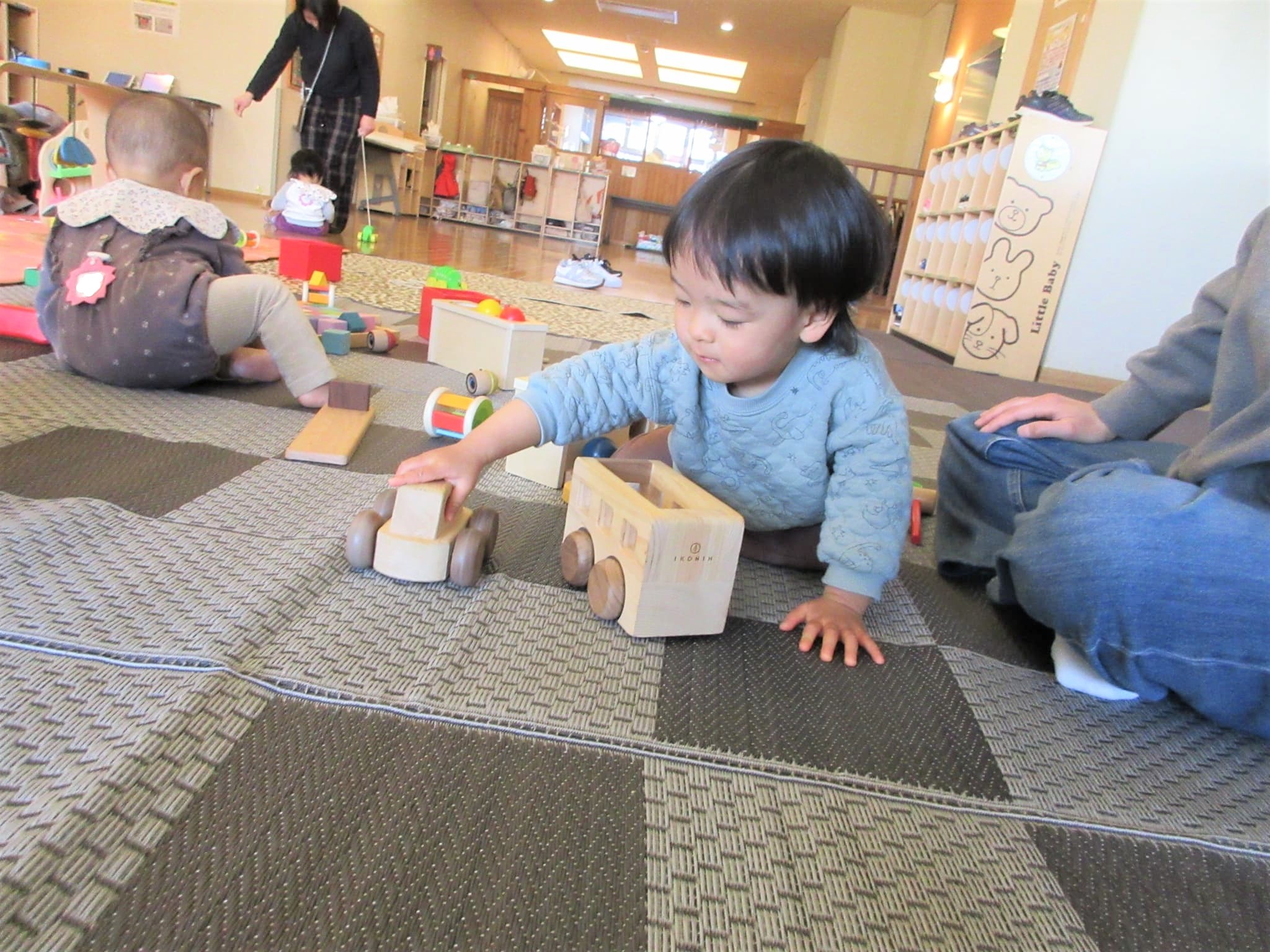 ベルキンダー園庭開放の自慢の木製のおもちゃで、たくさん遊んでくれました♪