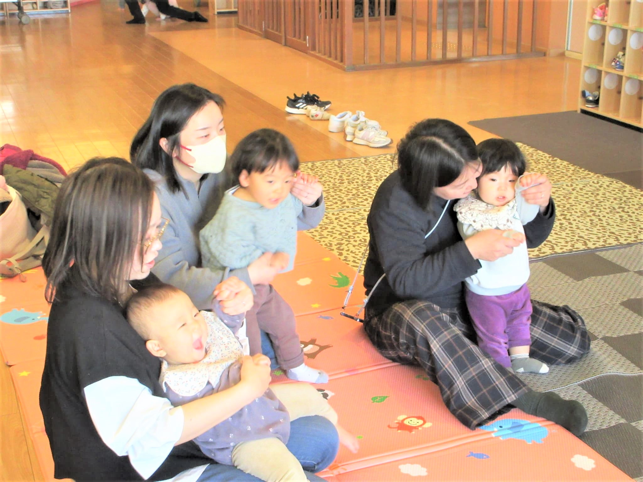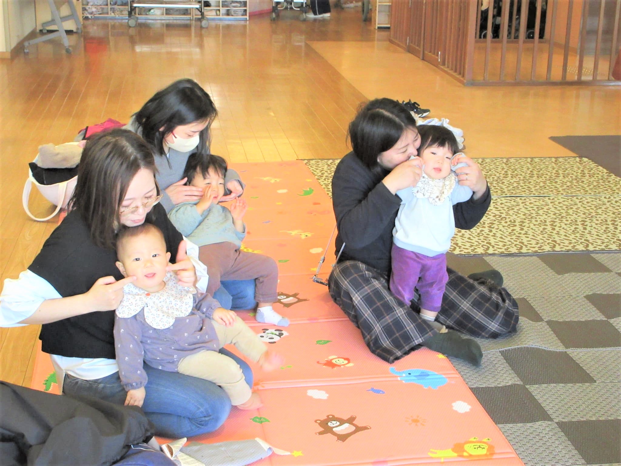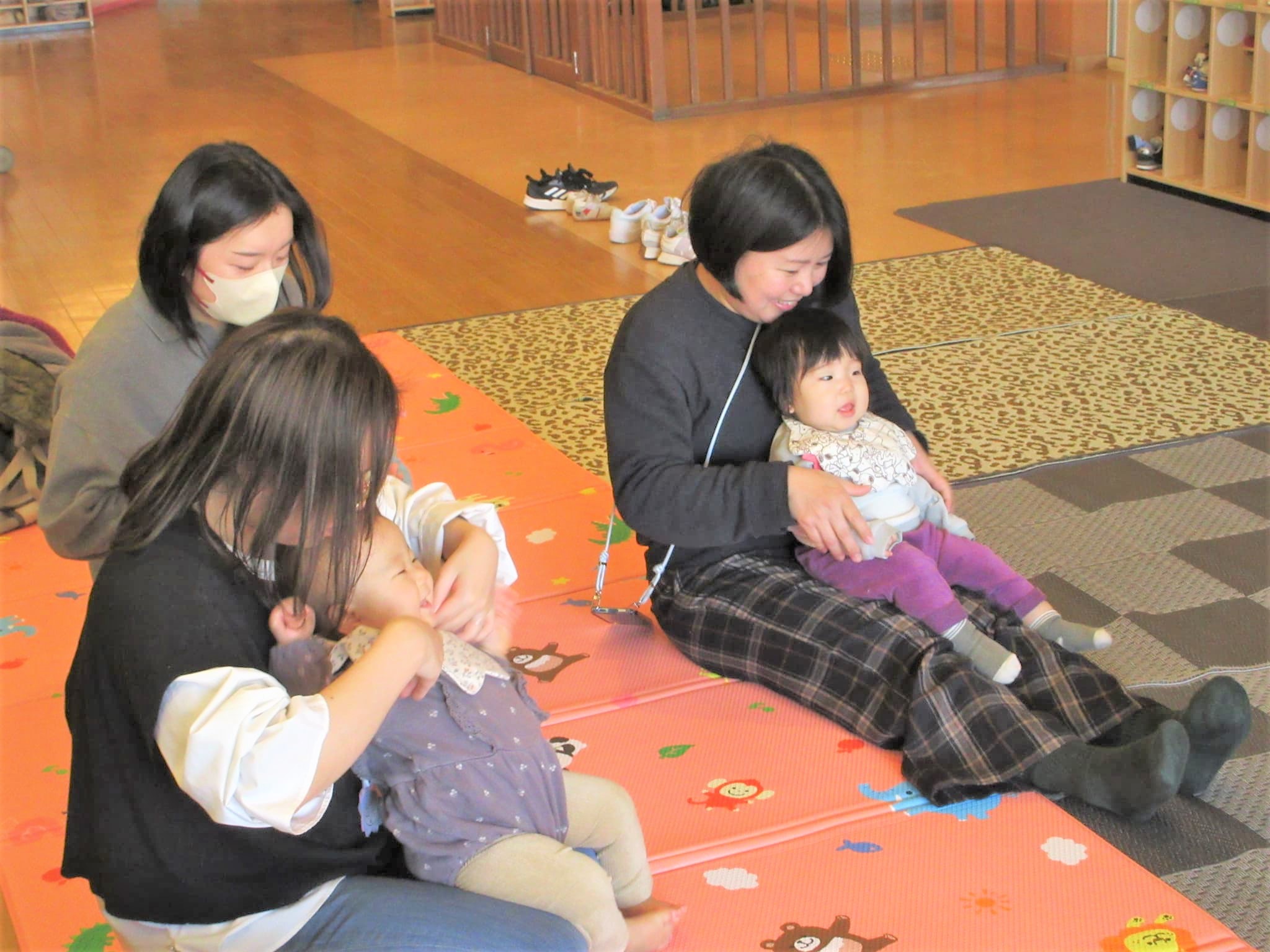 『ゆらゆらぶらんこ』と『くるくるトントン』のふれあい遊びで『心地良さ』を贈ってもらいました♪