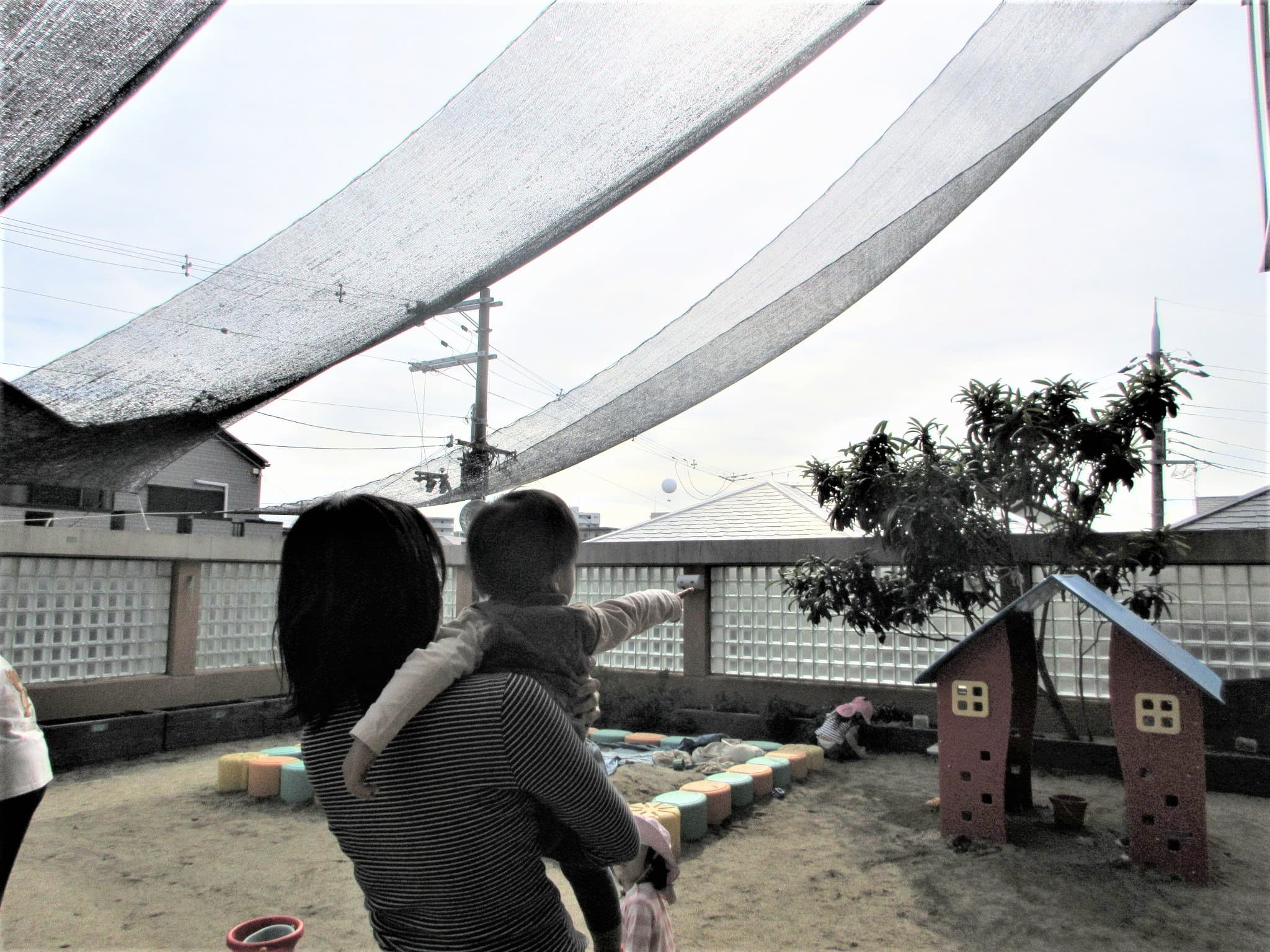 大仙公園から飛んでいる気球をお母さんと一緒に見ています!!