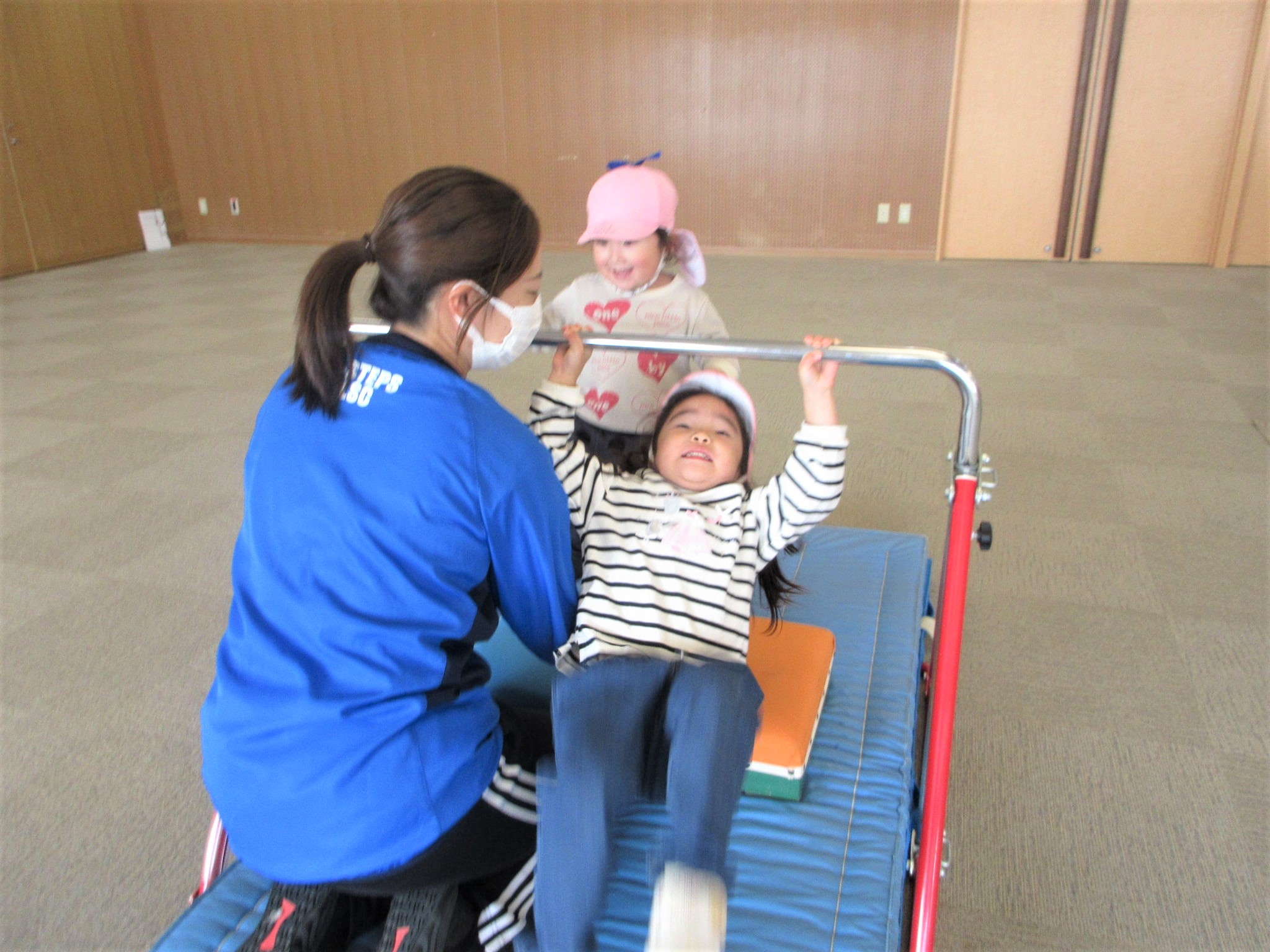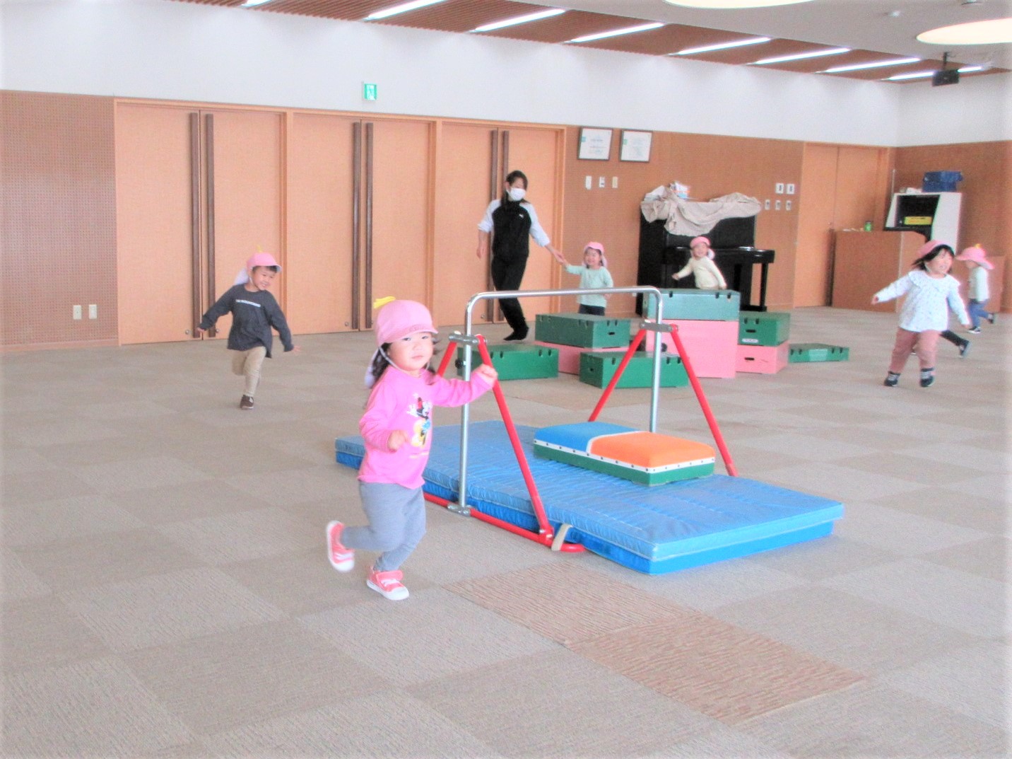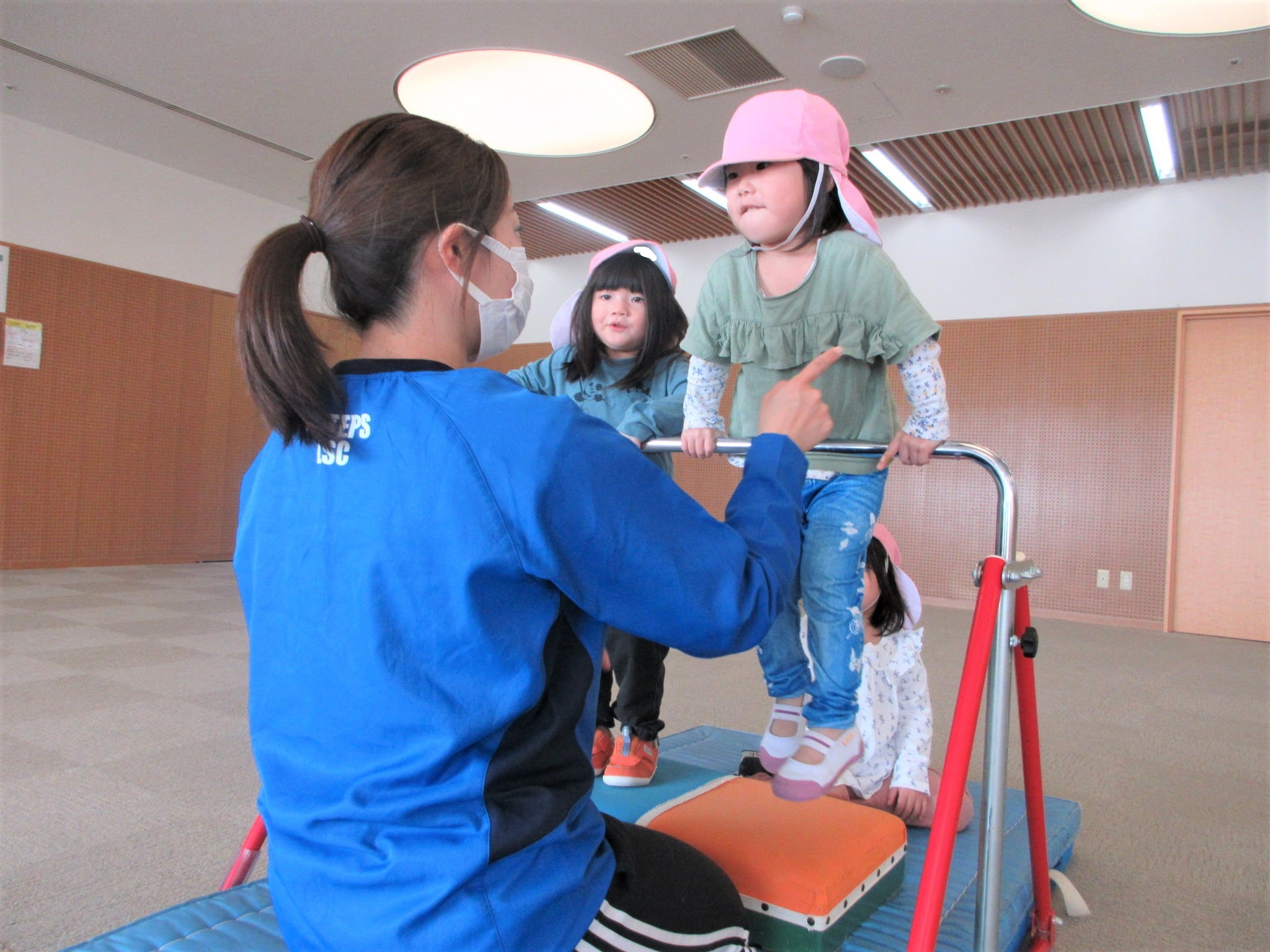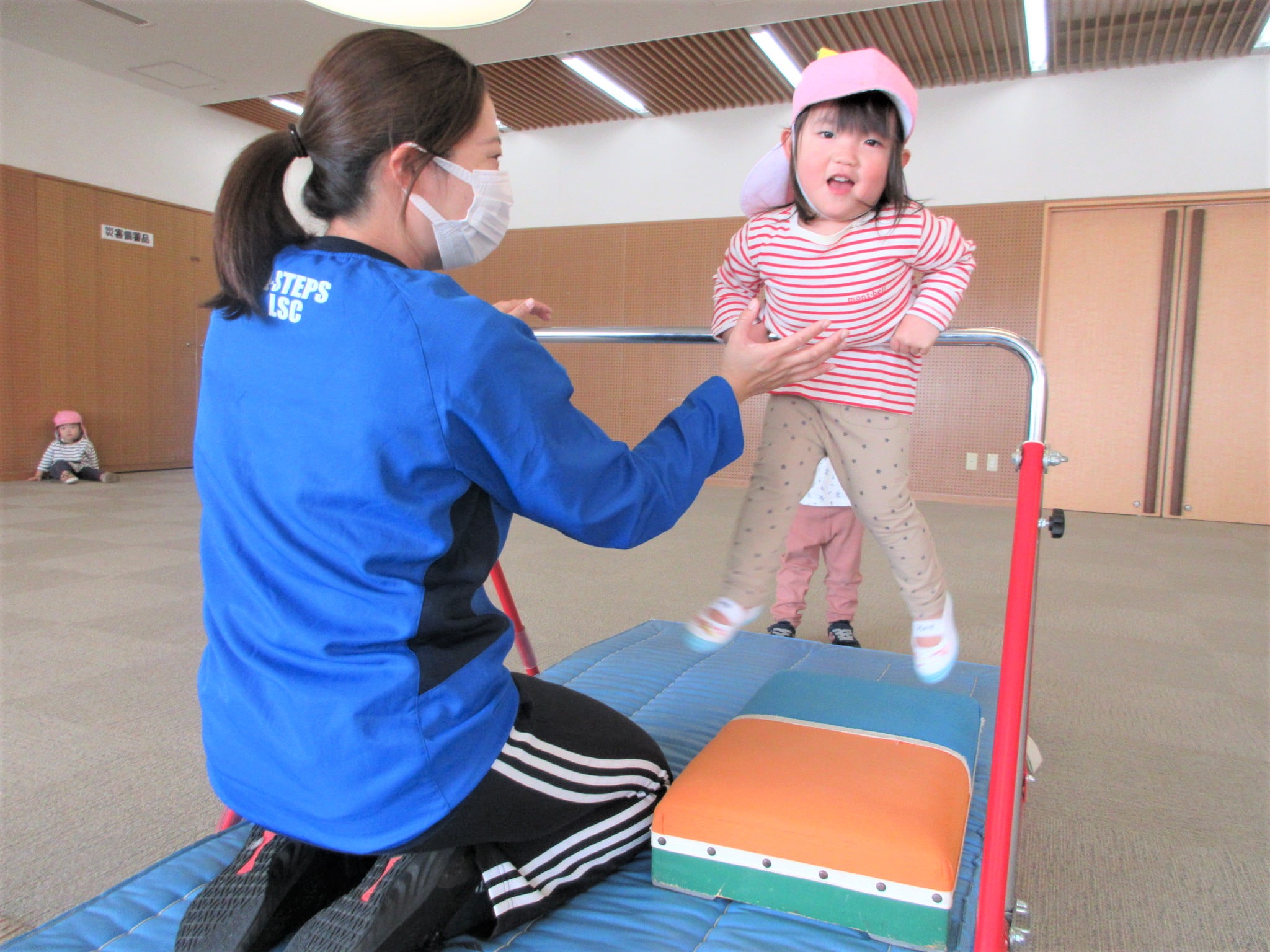 まずは、自分で鉄棒に跳び乗ろうとジャンプする姿がありました♪