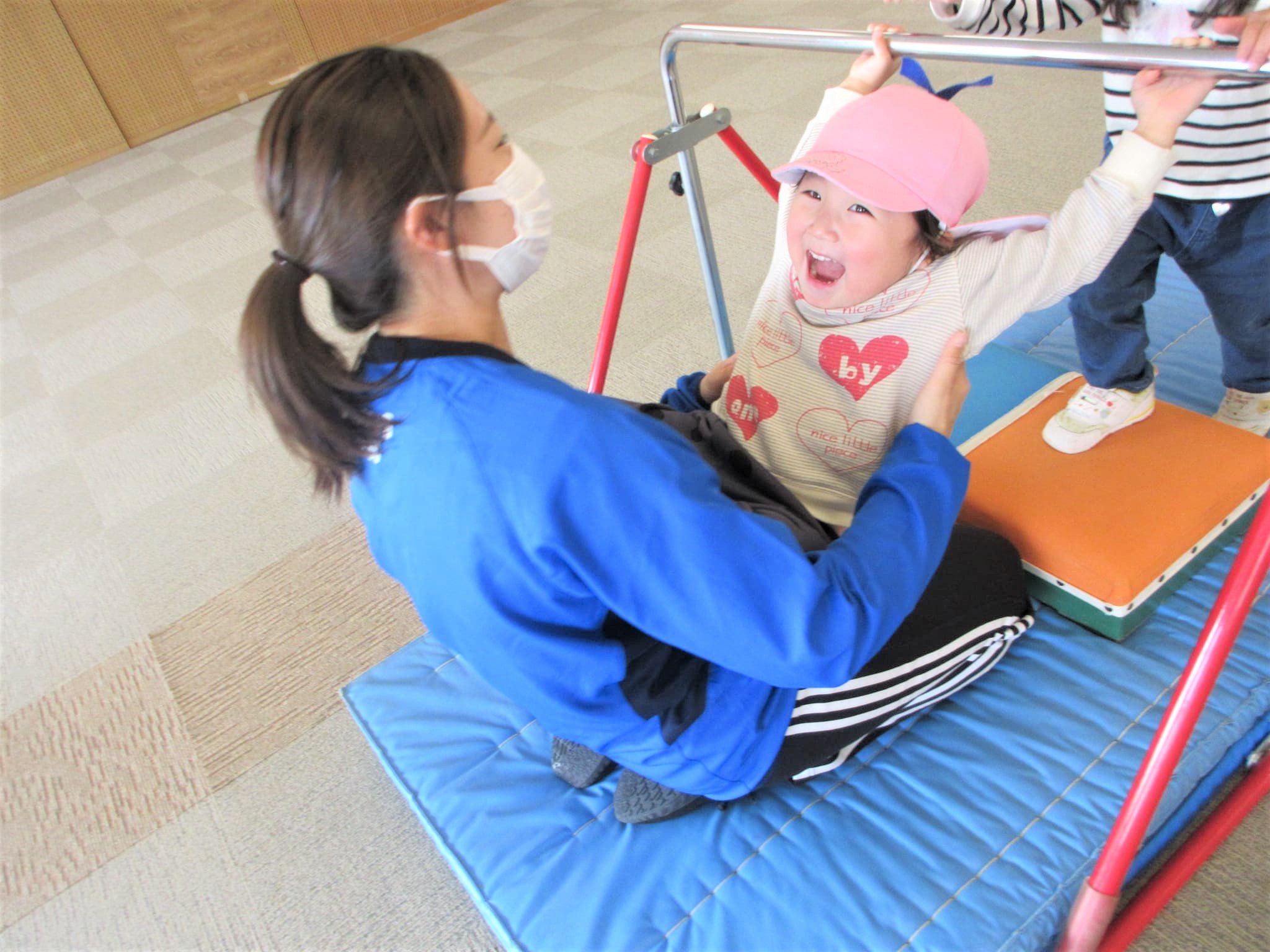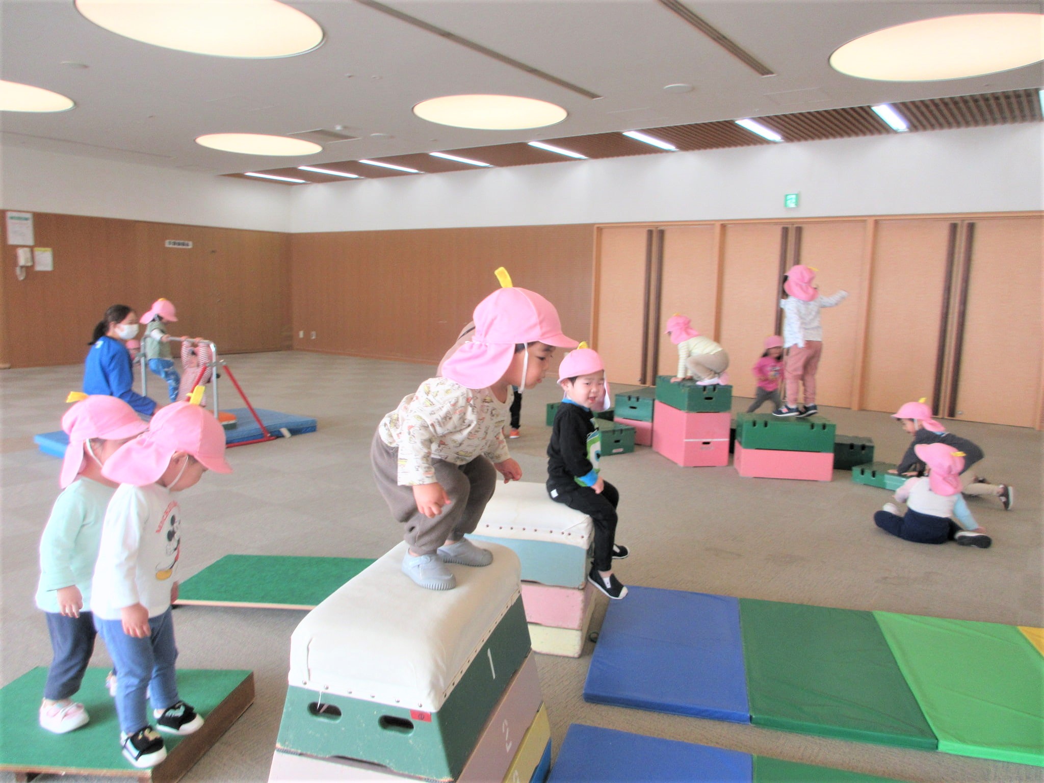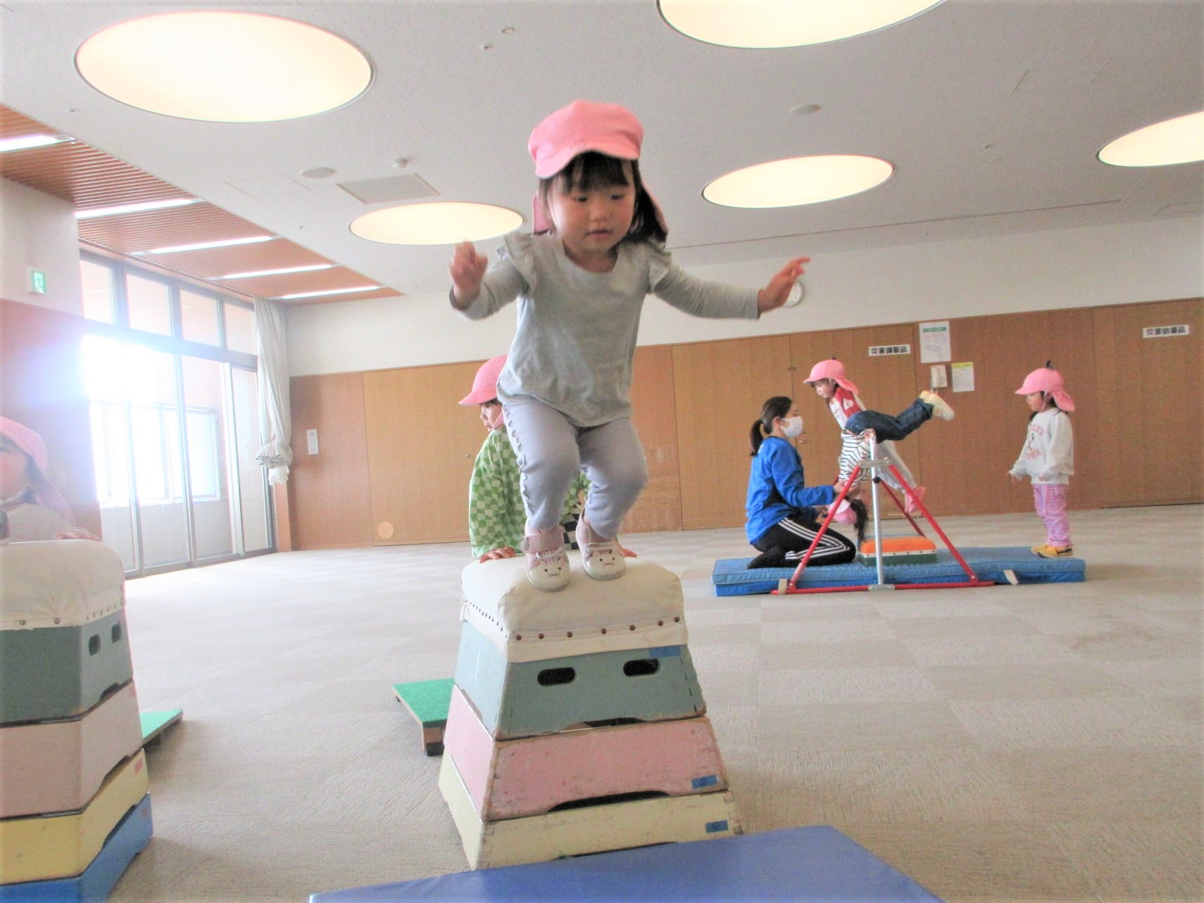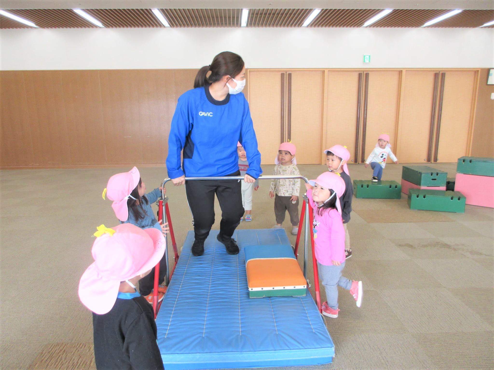 まずは、自分で鉄棒に跳び乗ろうとジャンプする姿がありました♪