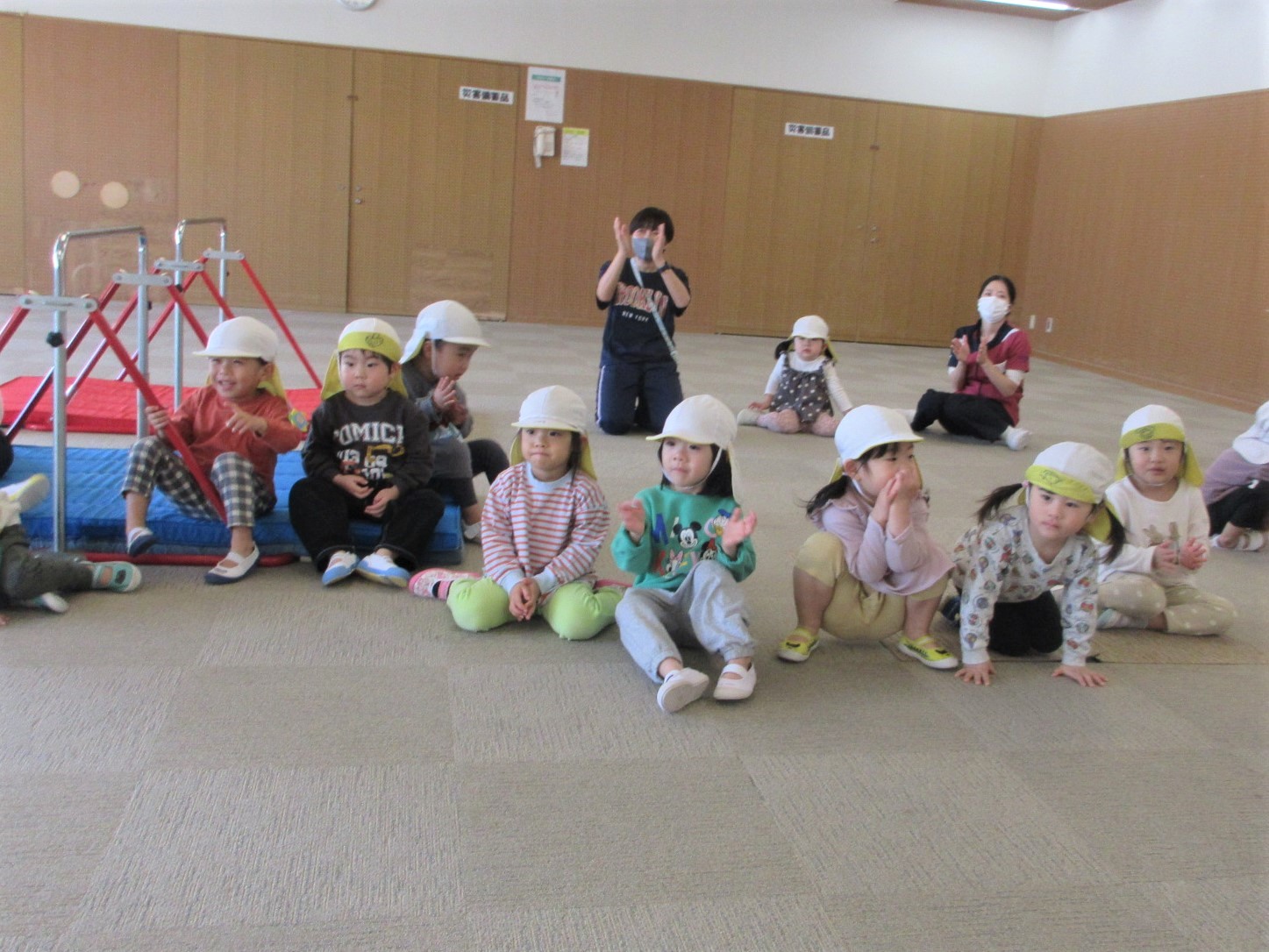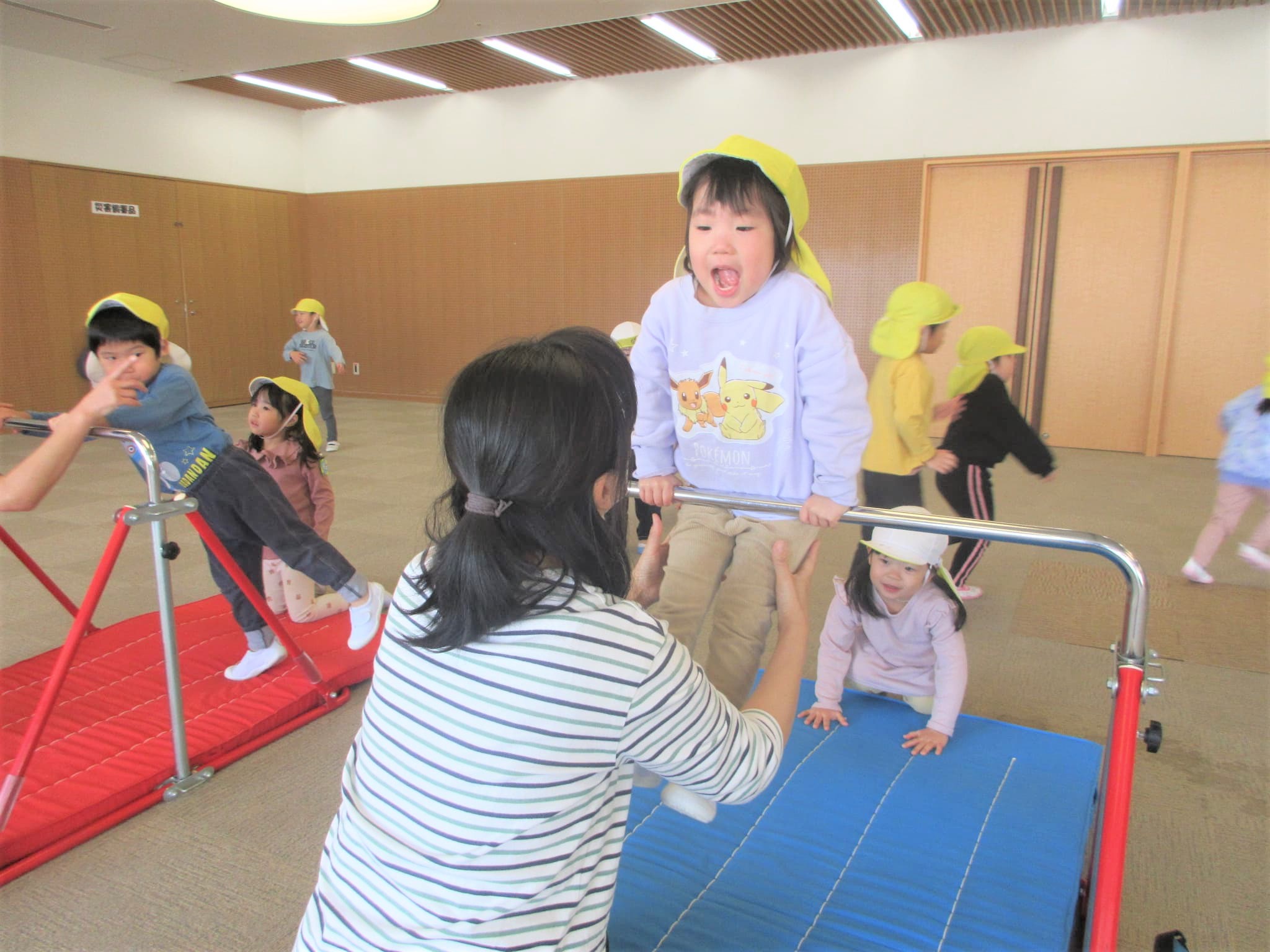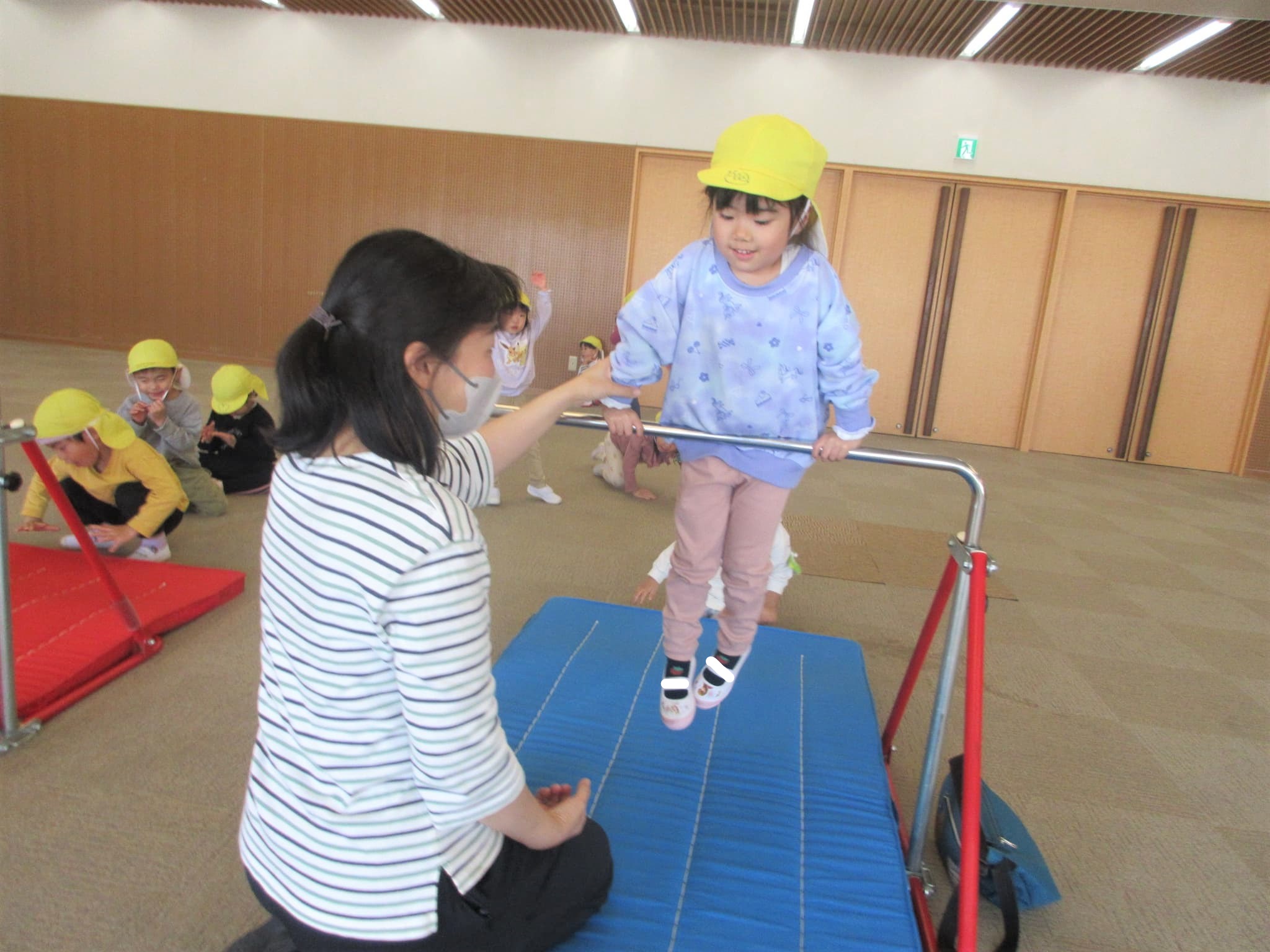 体操の先生の膝を借りながら・・・♪