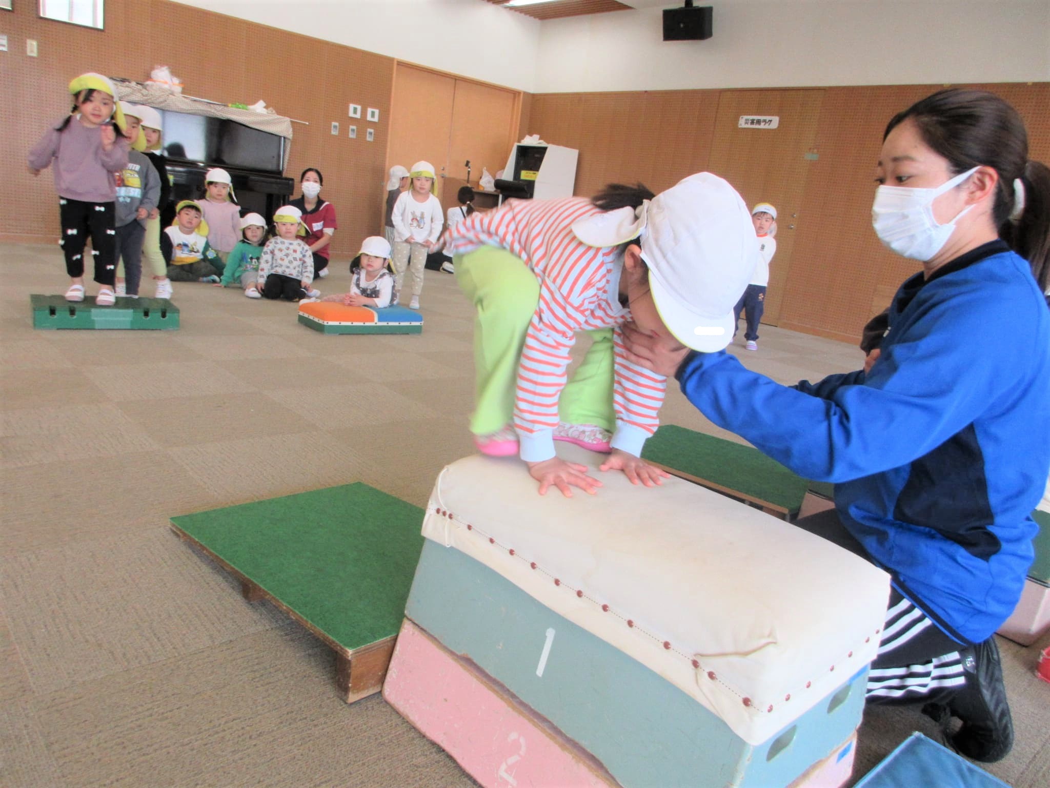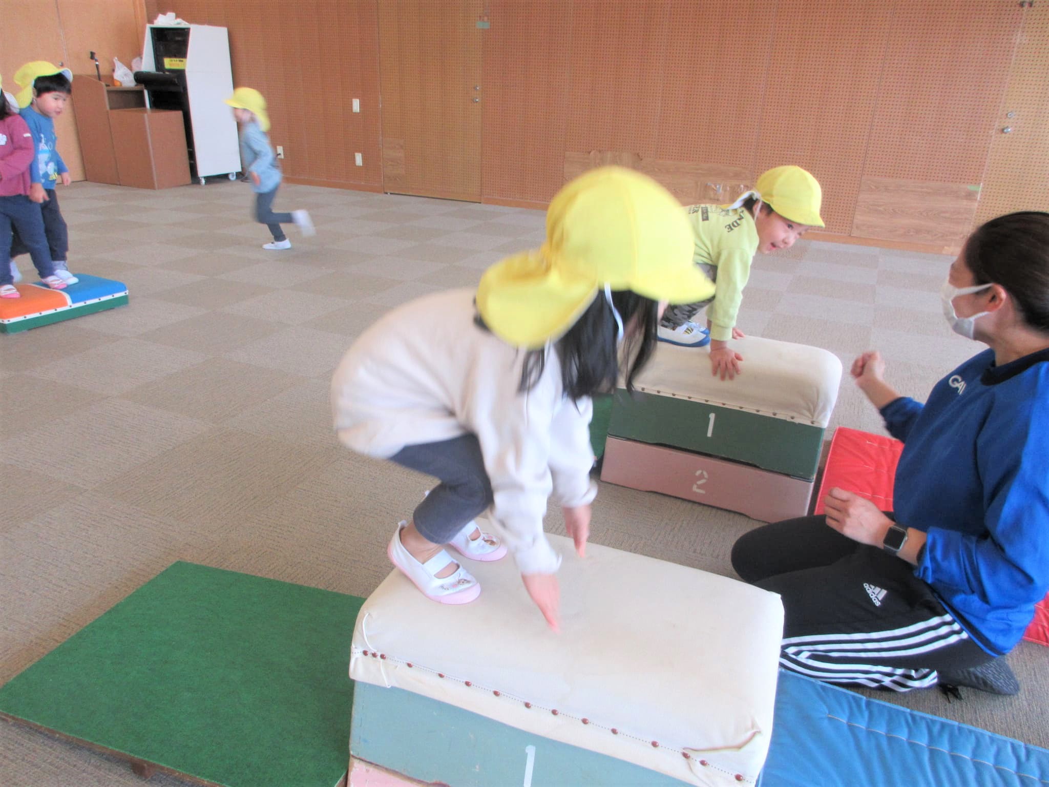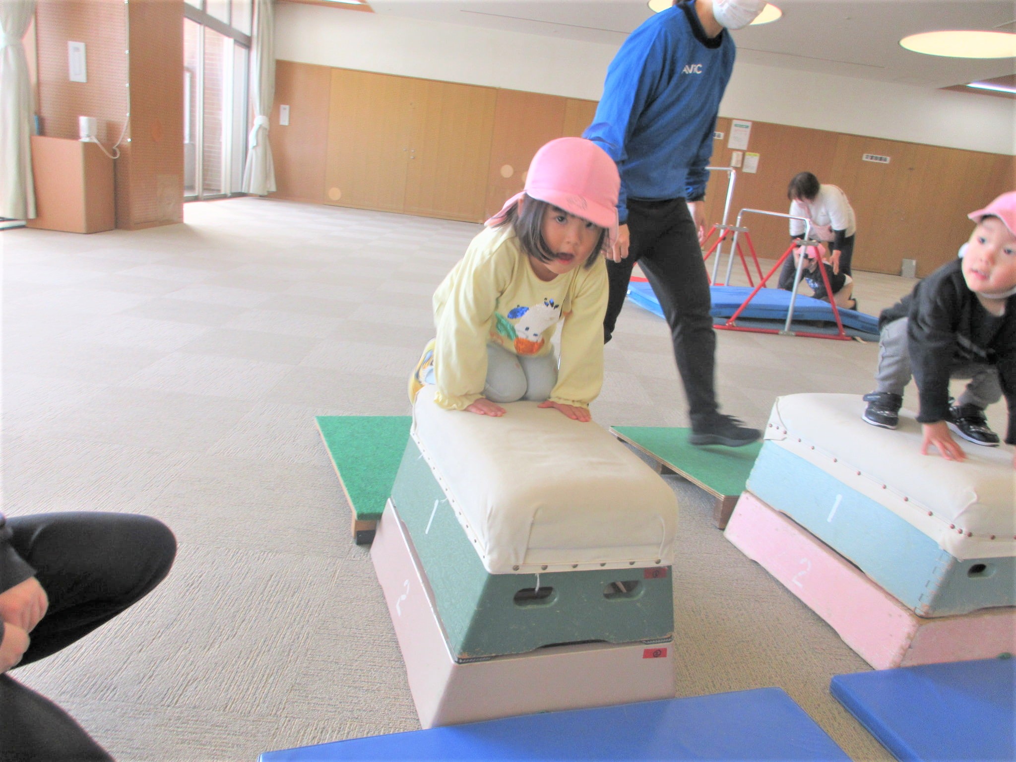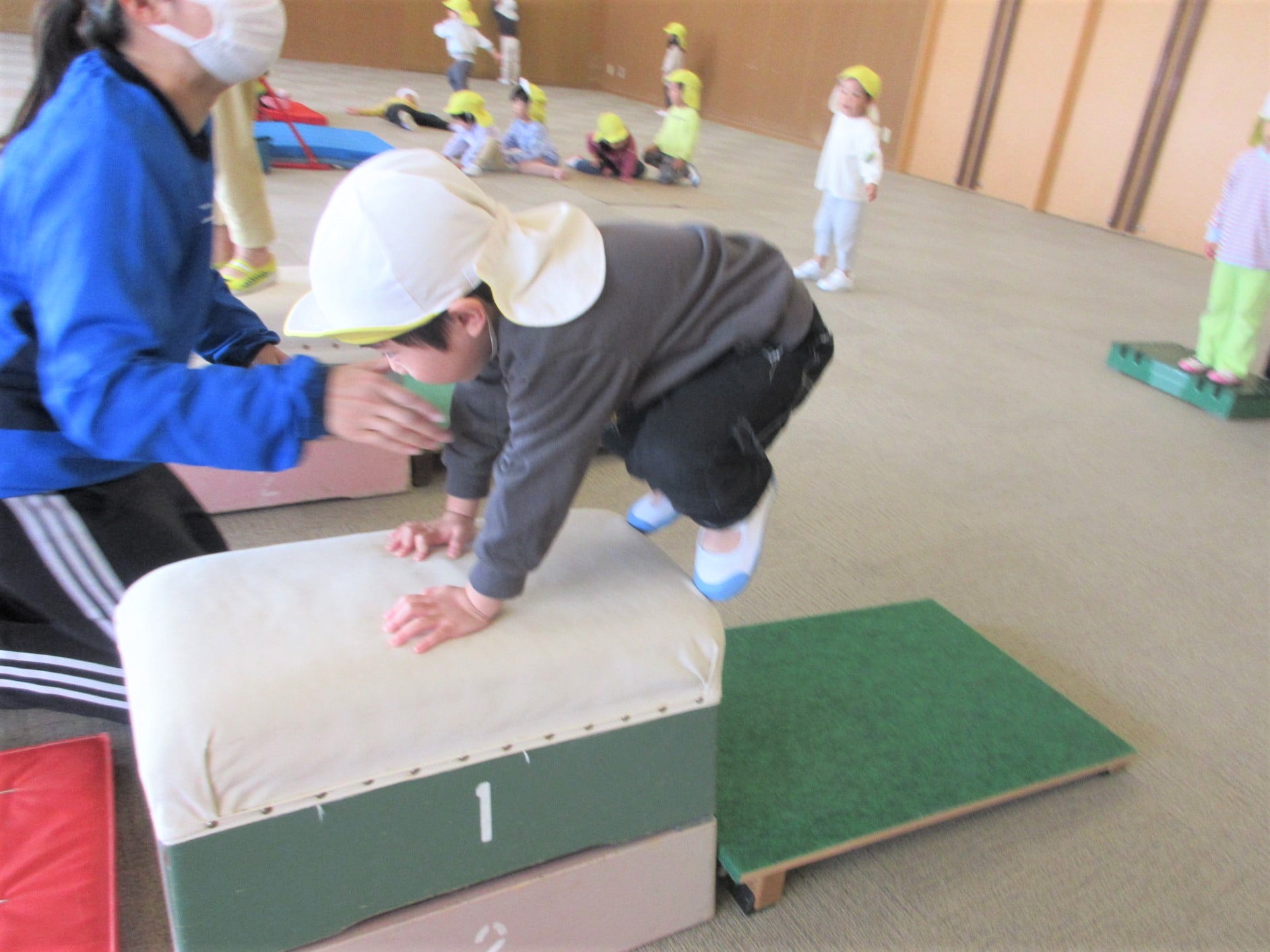 跳び箱に手をついた“まま”ジャンプ!!・・・のコツを掴んでいる最中です♪
