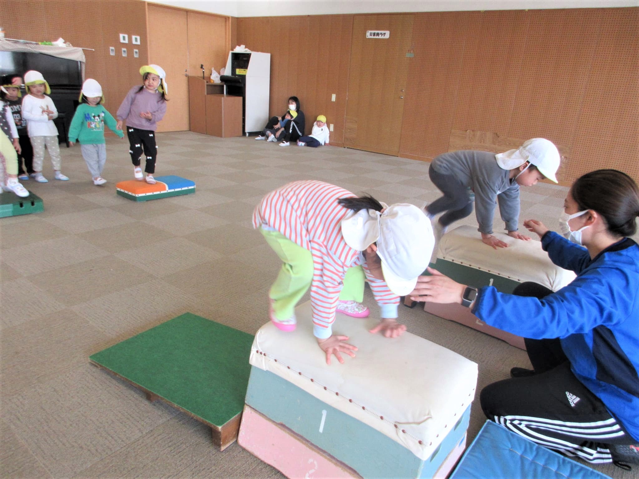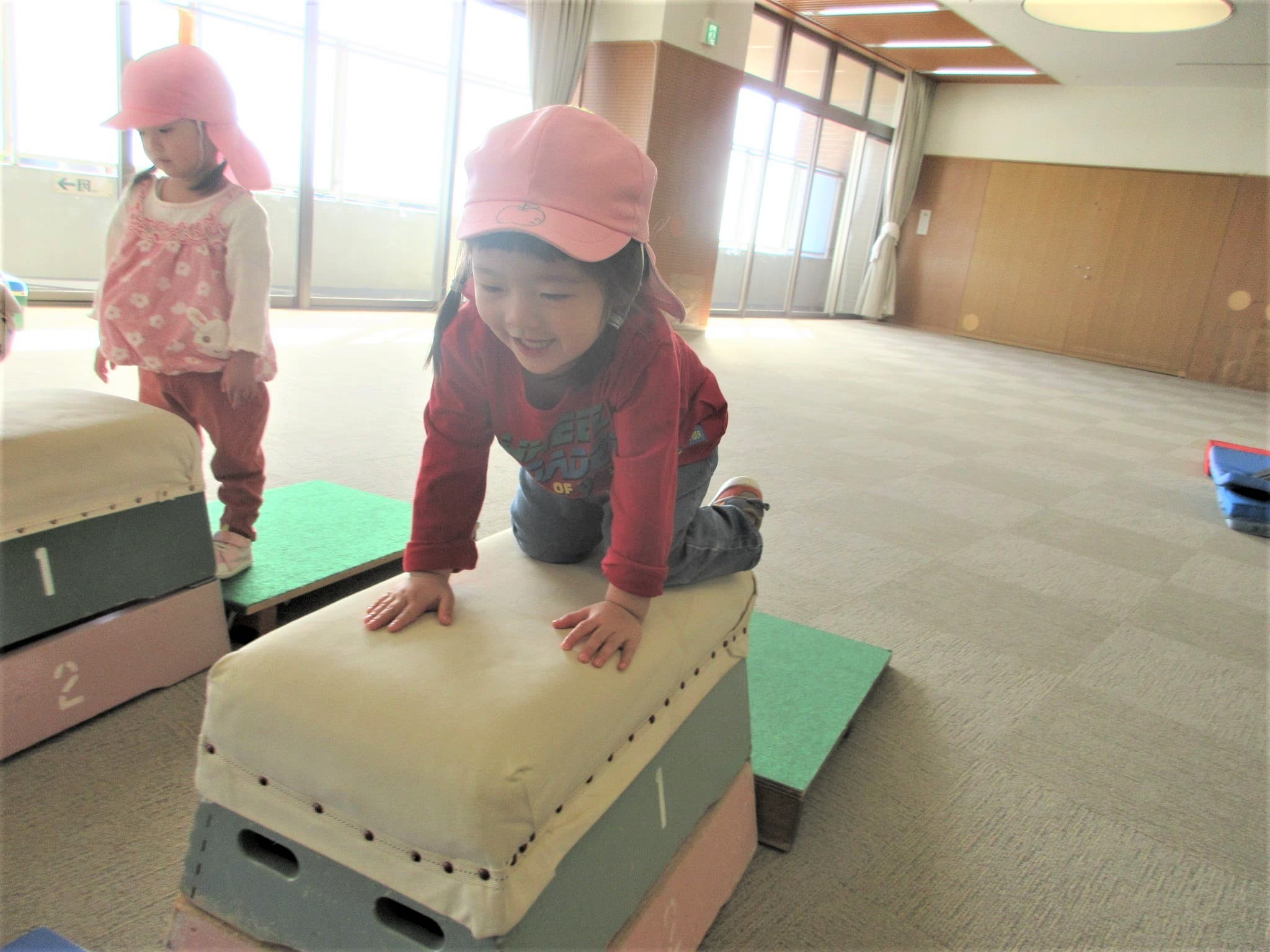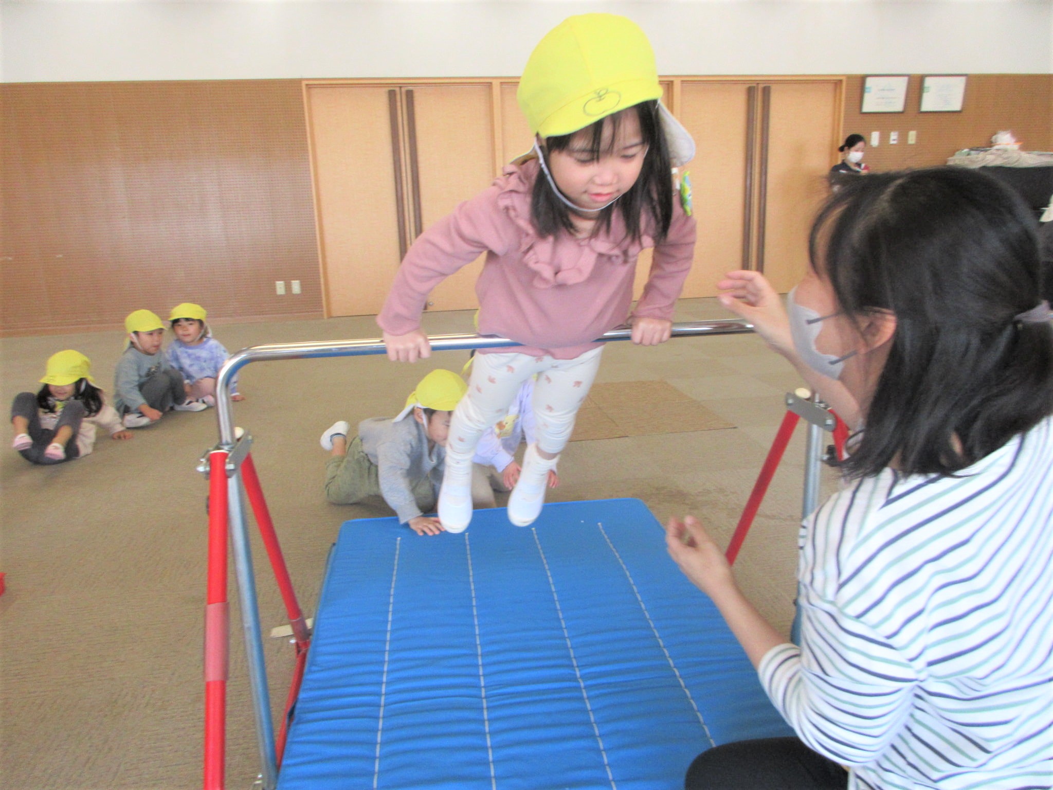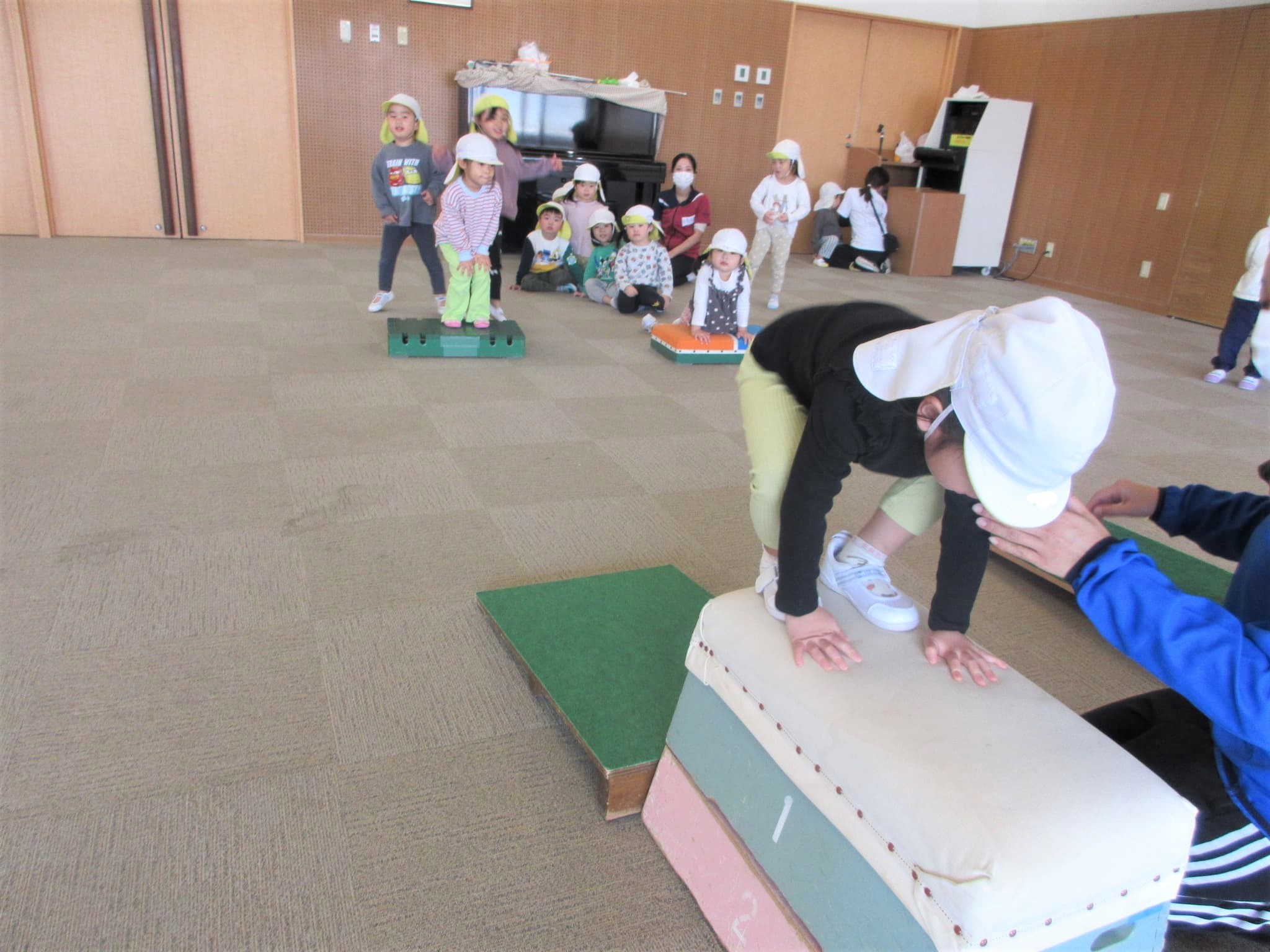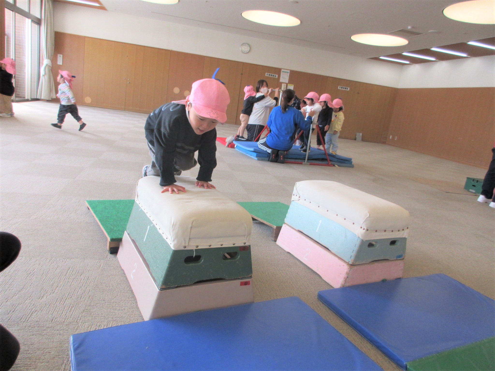 跳び箱に手をついた“まま”ジャンプ!!・・・のコツを掴んでいる最中です♪