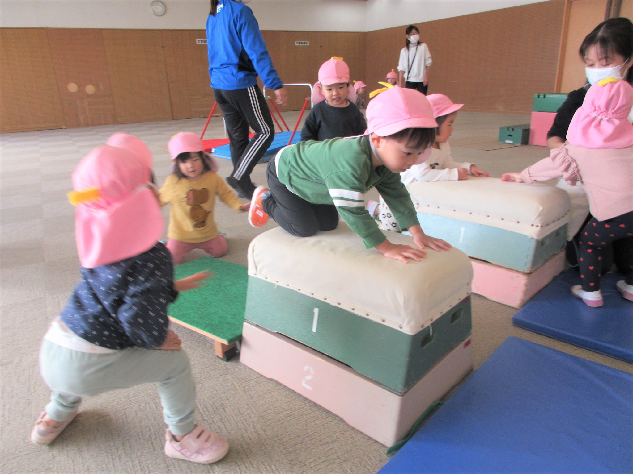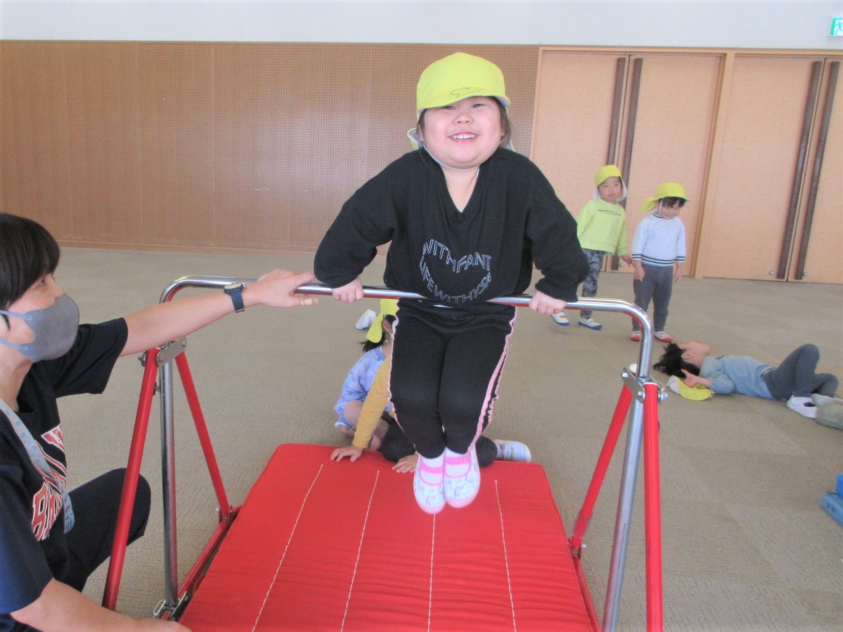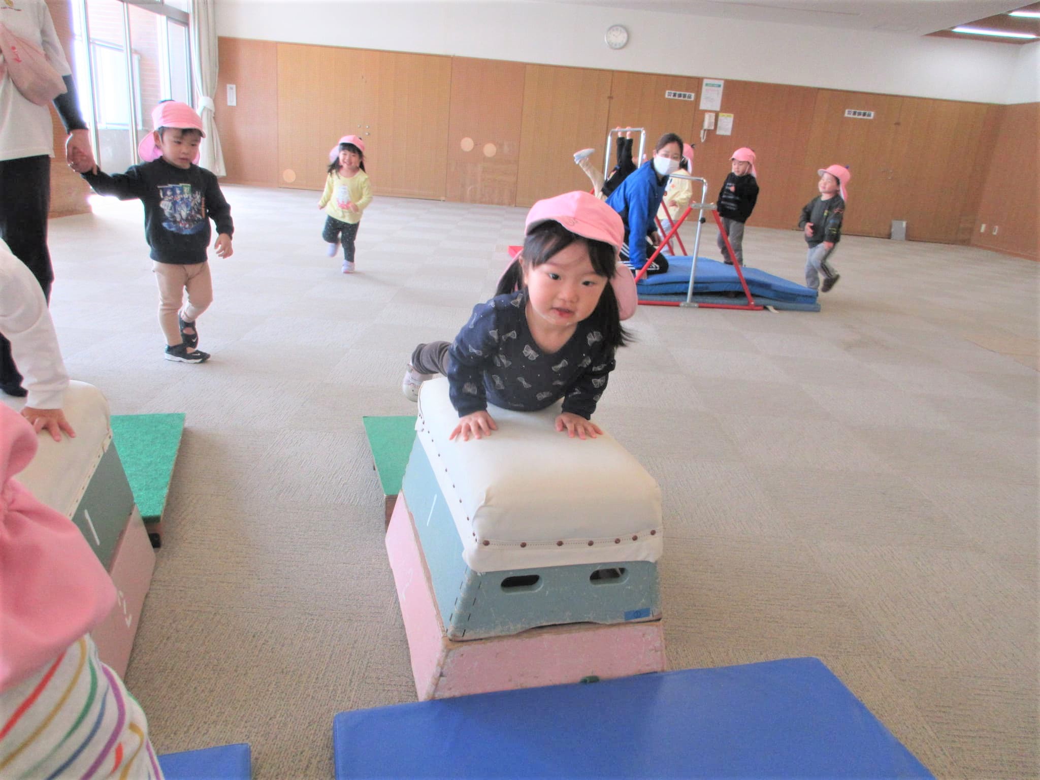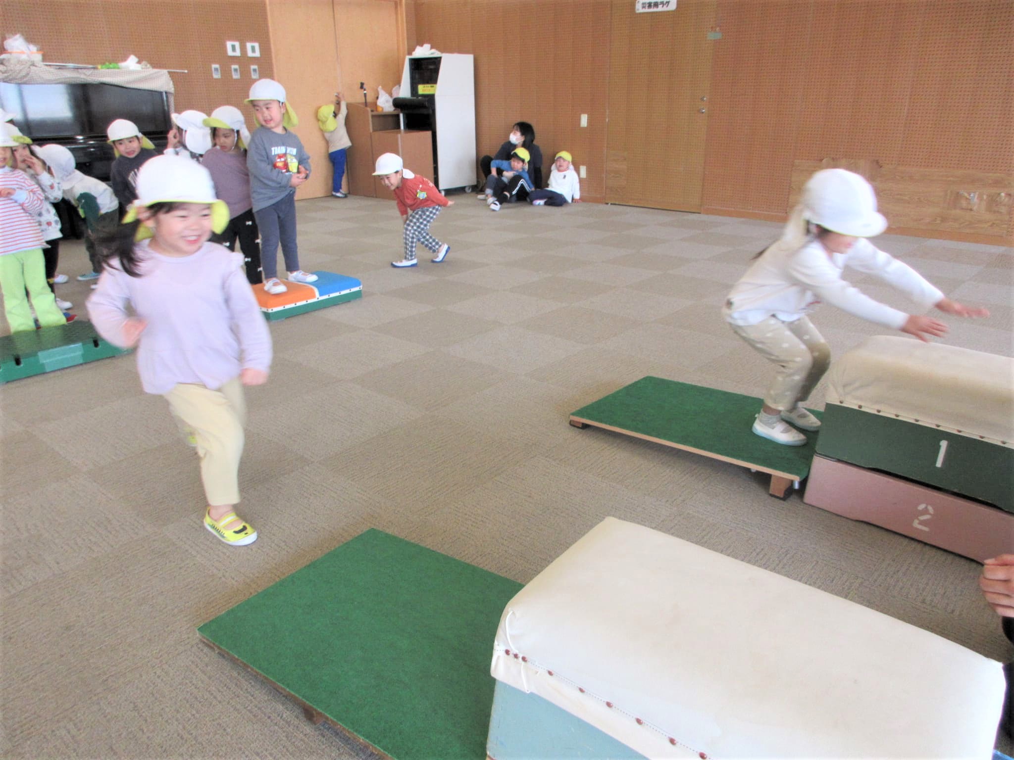 跳び箱に手をついた“まま”ジャンプ!!・・・のコツを掴んでいる最中です♪