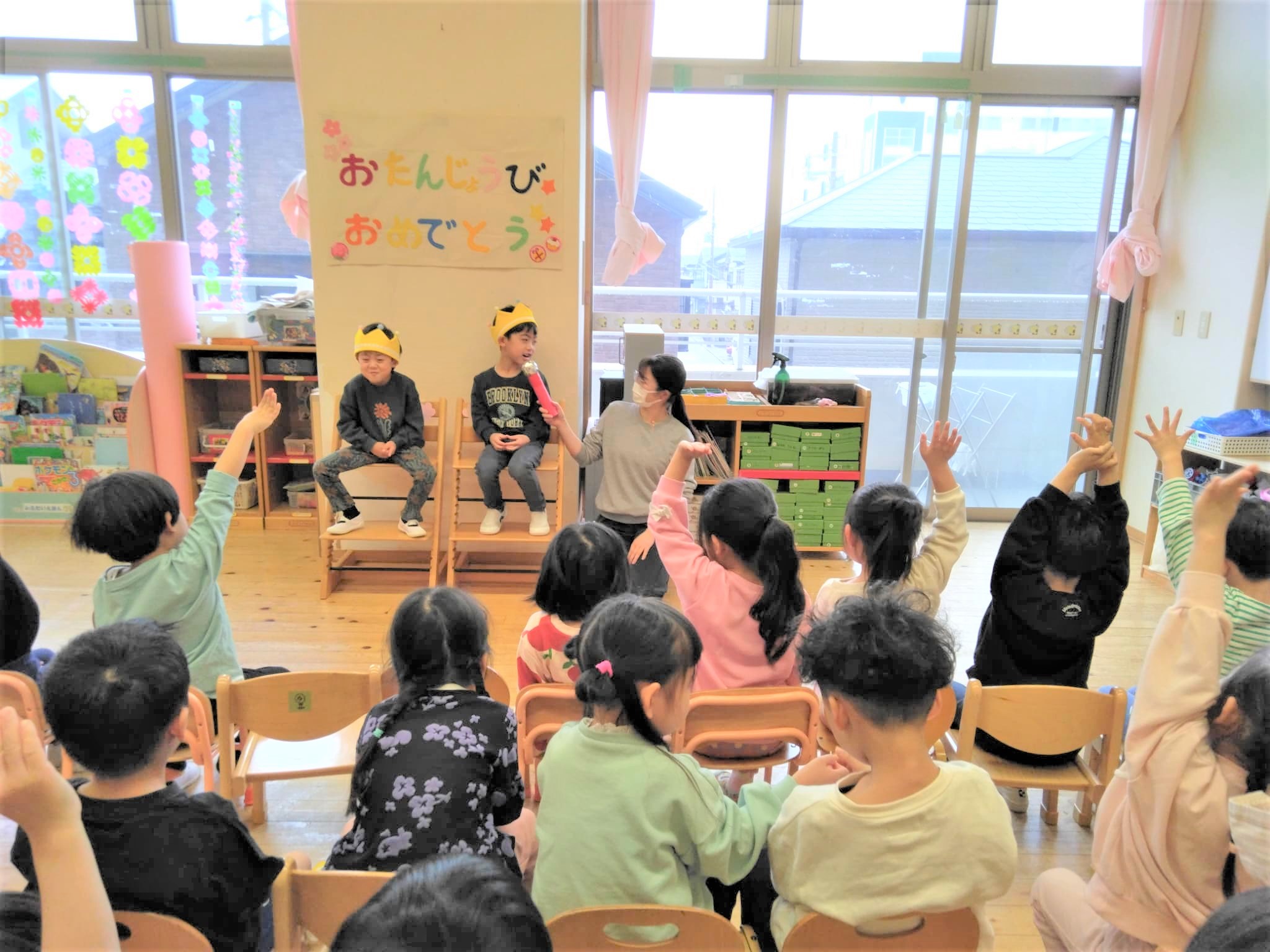 今日は、うさぎ組・きりん組・らいおん組がクラスで誕生会を行いました!!