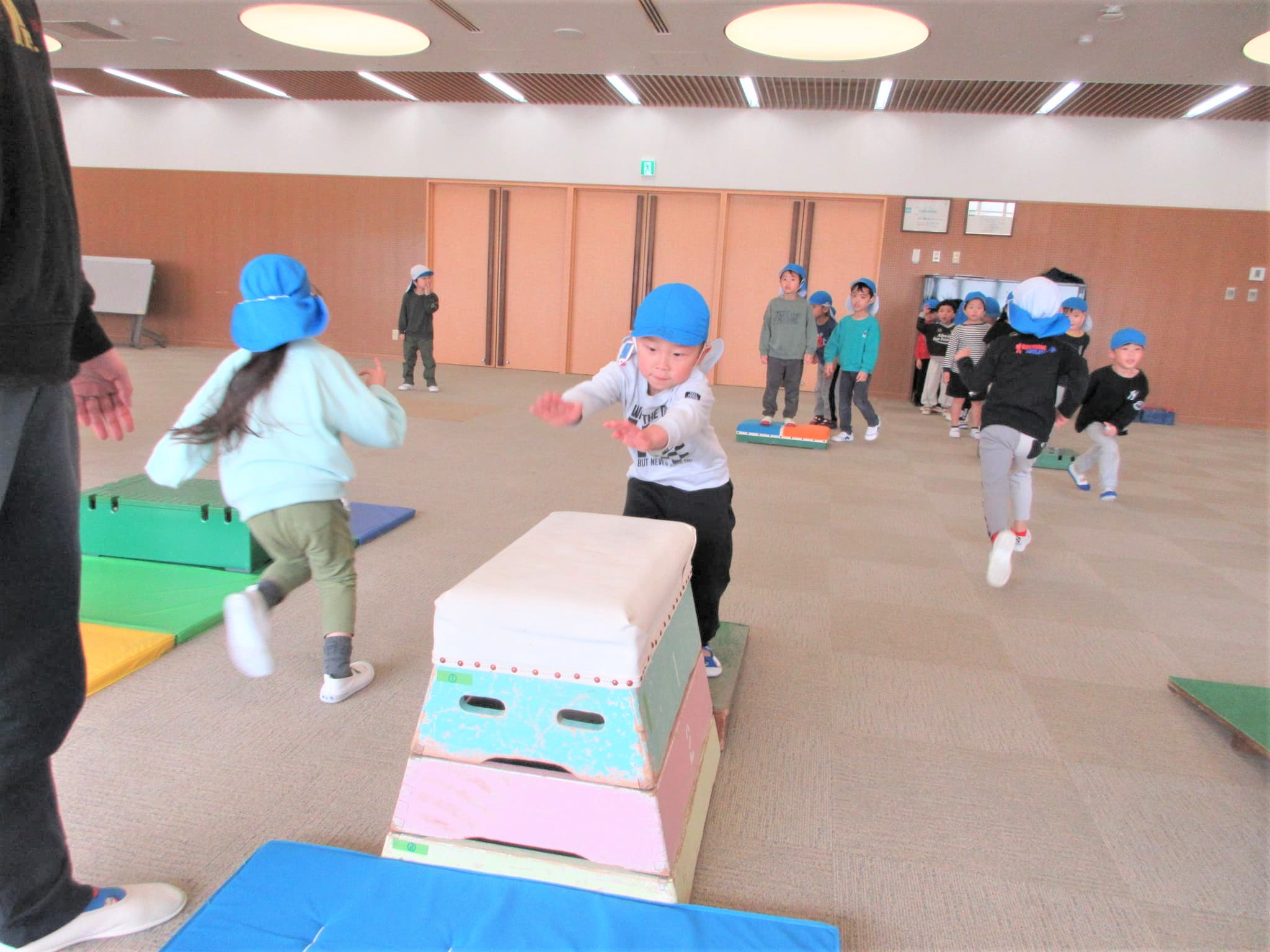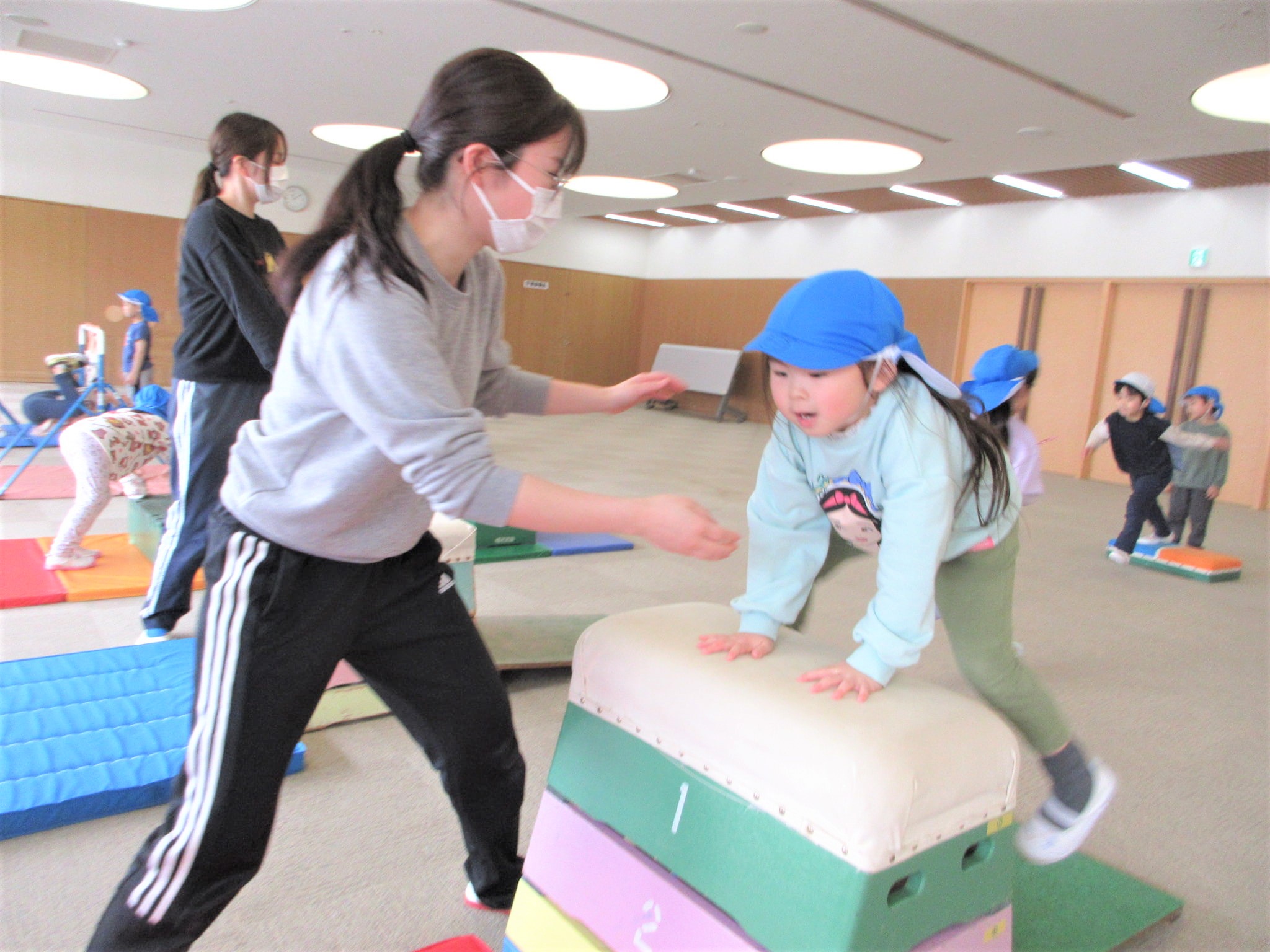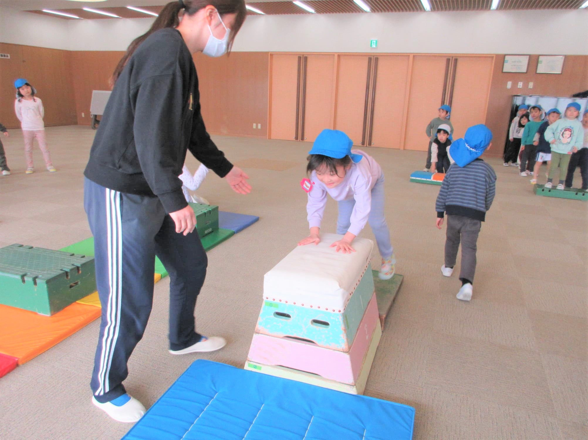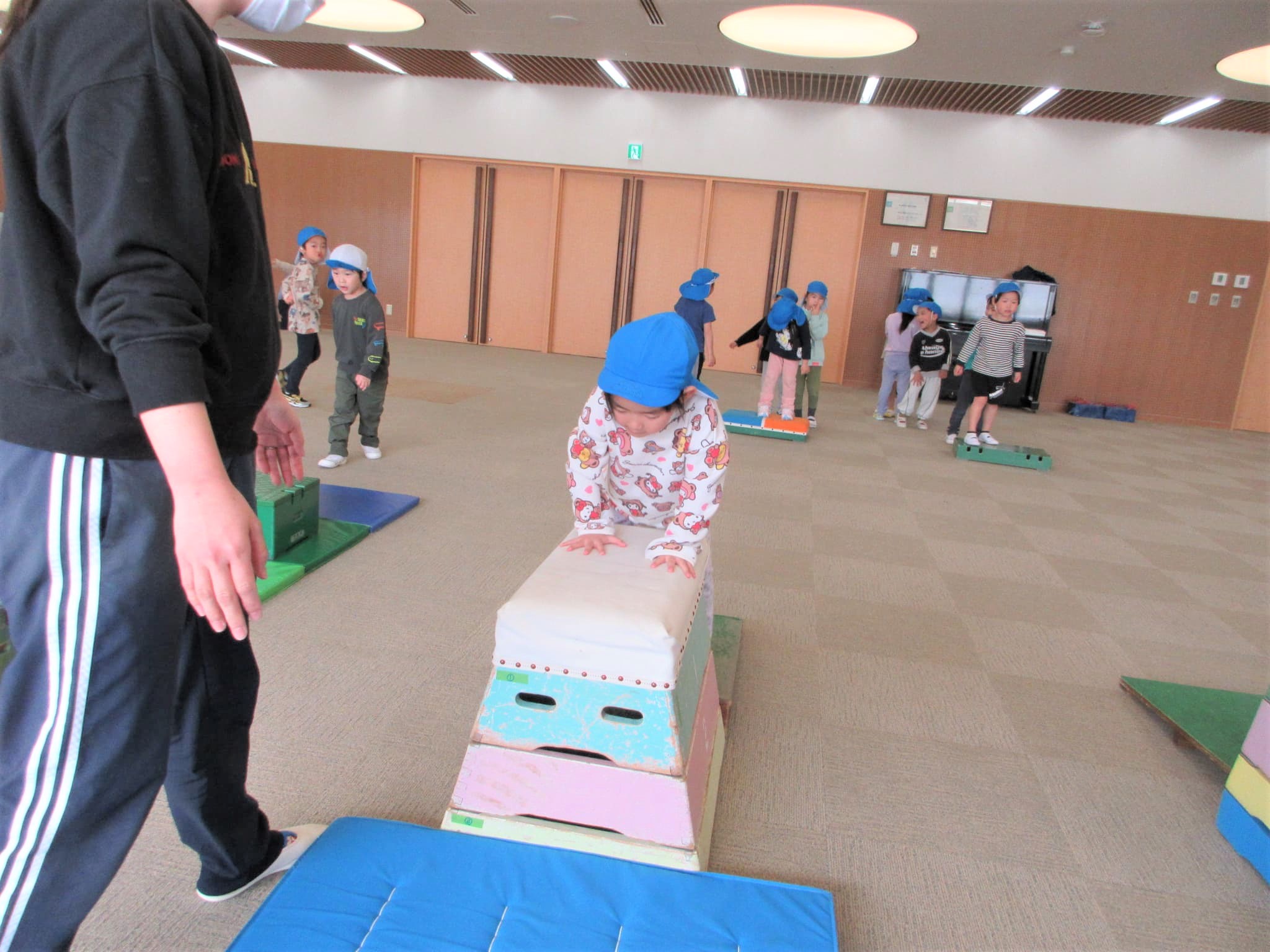「ベルキンダーには、5段の跳び箱もあるんやで~♪」と言うと