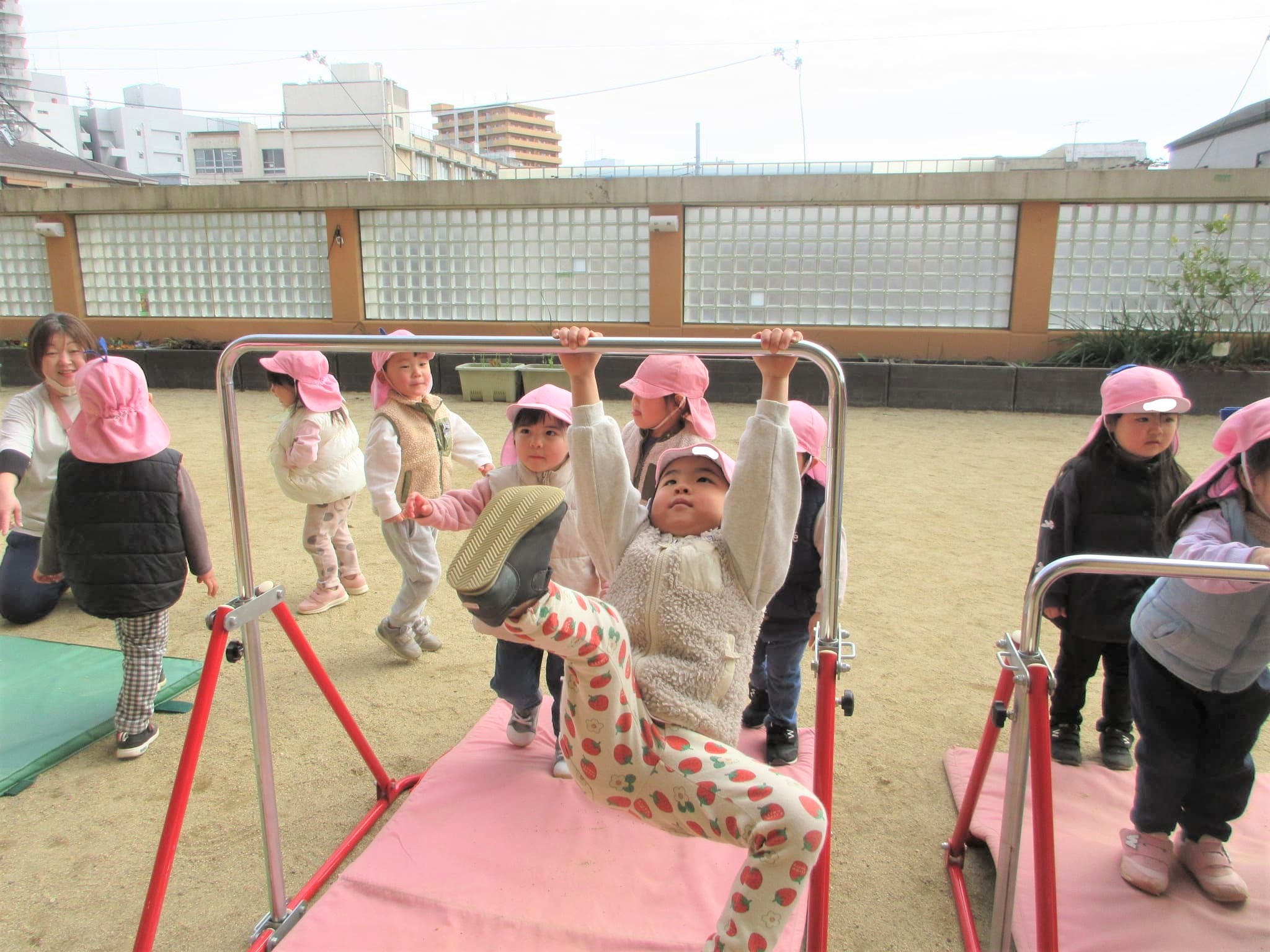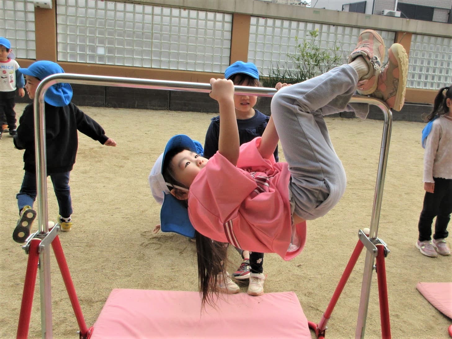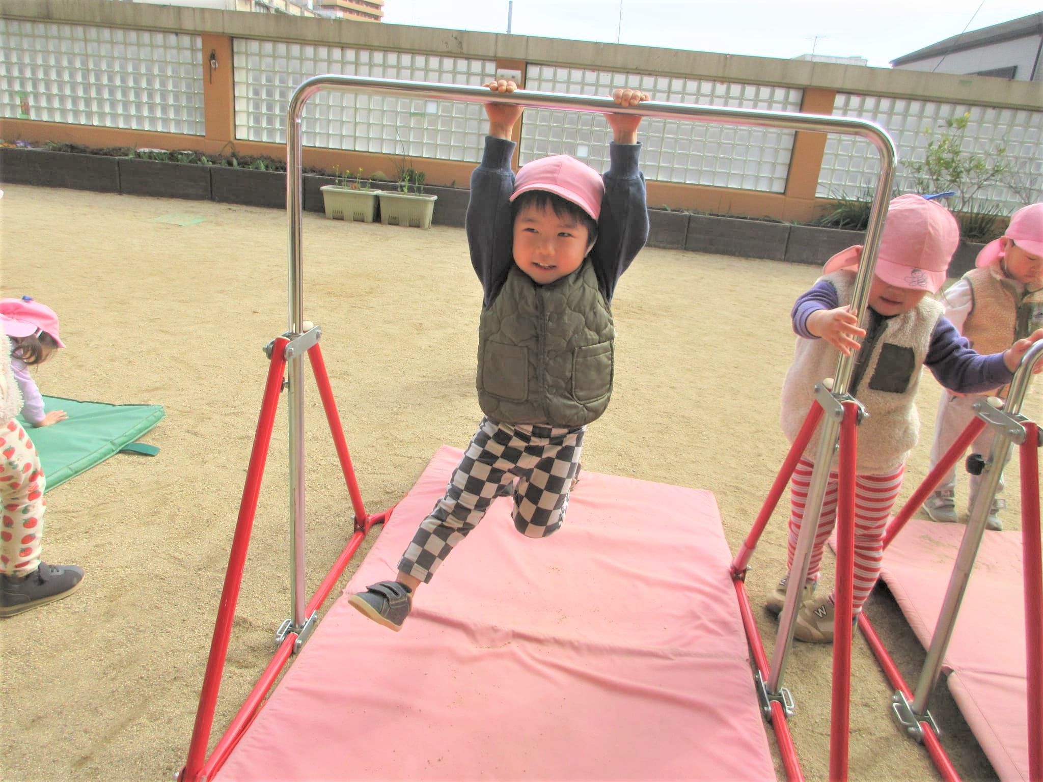 高い方の鉄棒を速くやりたくて、うずうずしている子どももいました(笑)