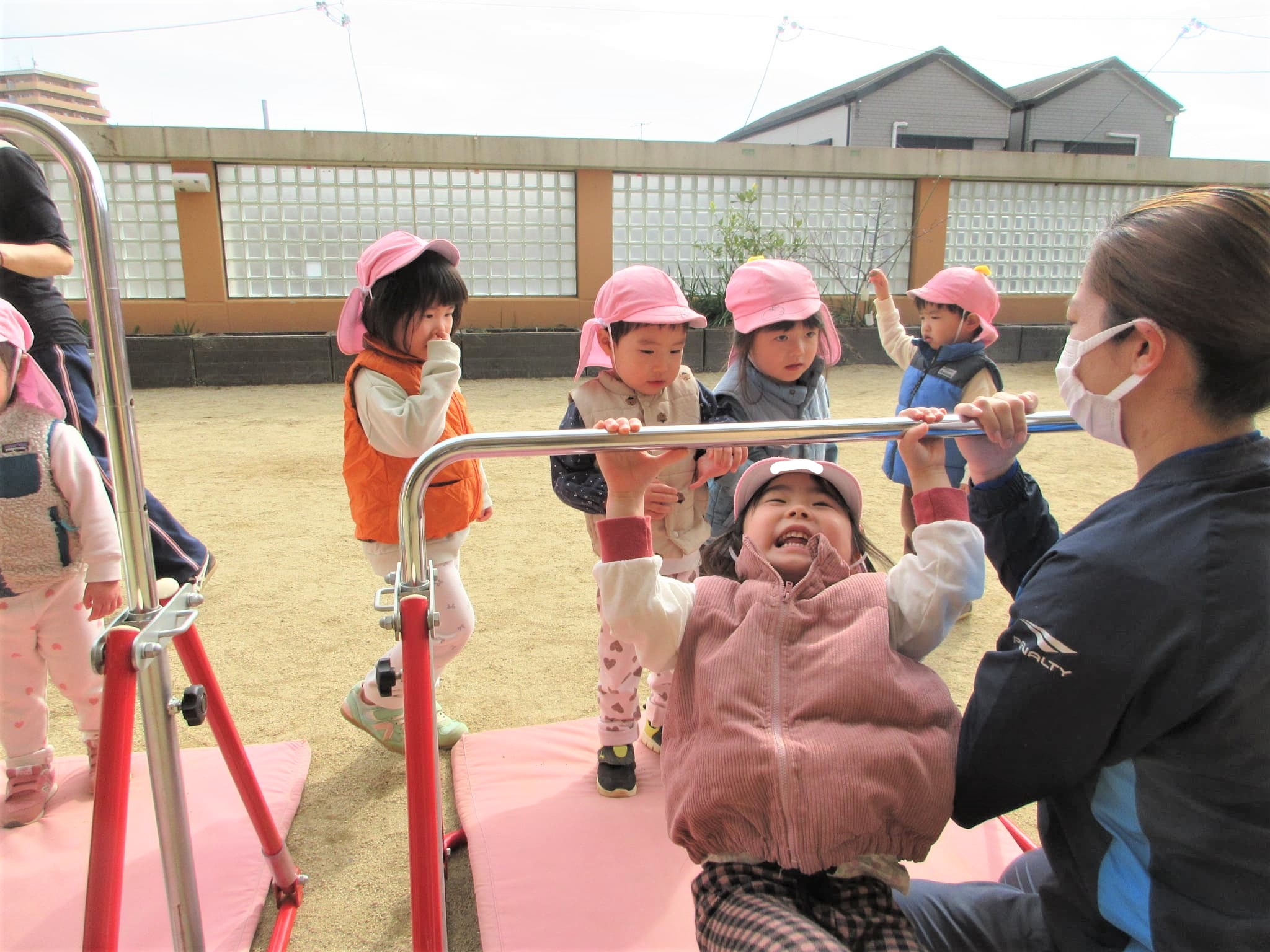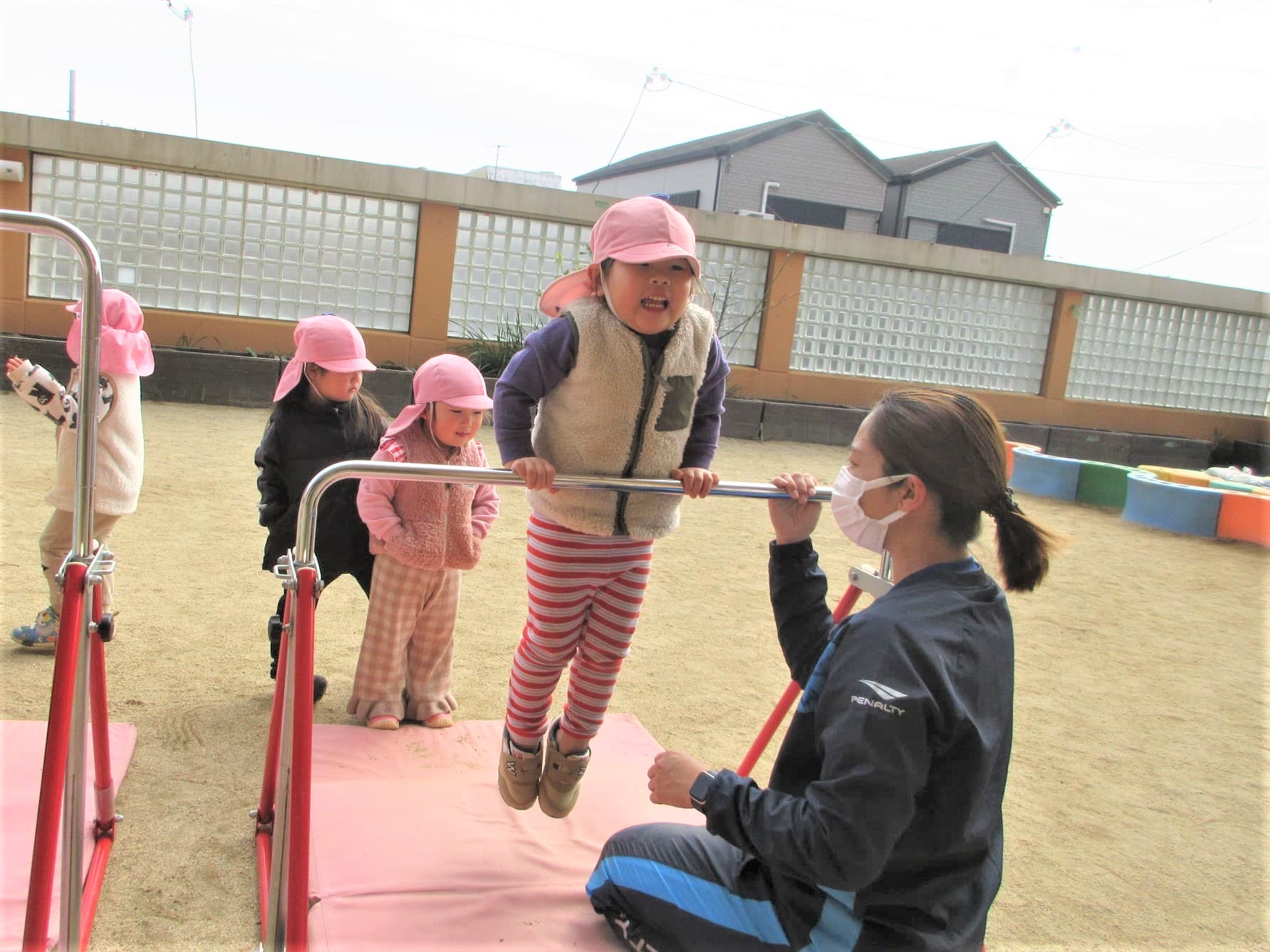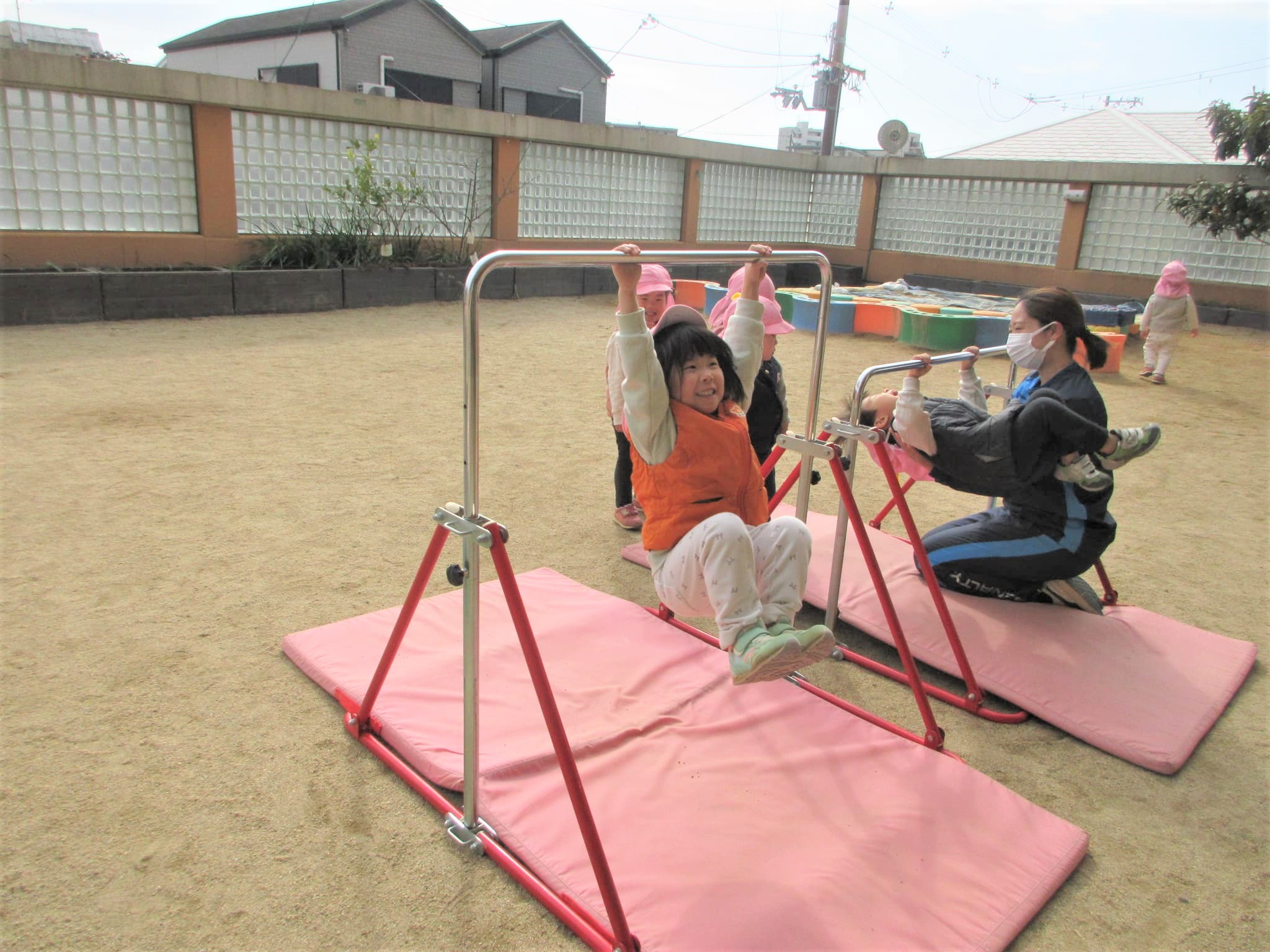 高い方の鉄棒を速くやりたくて、うずうずしている子どももいました(笑)