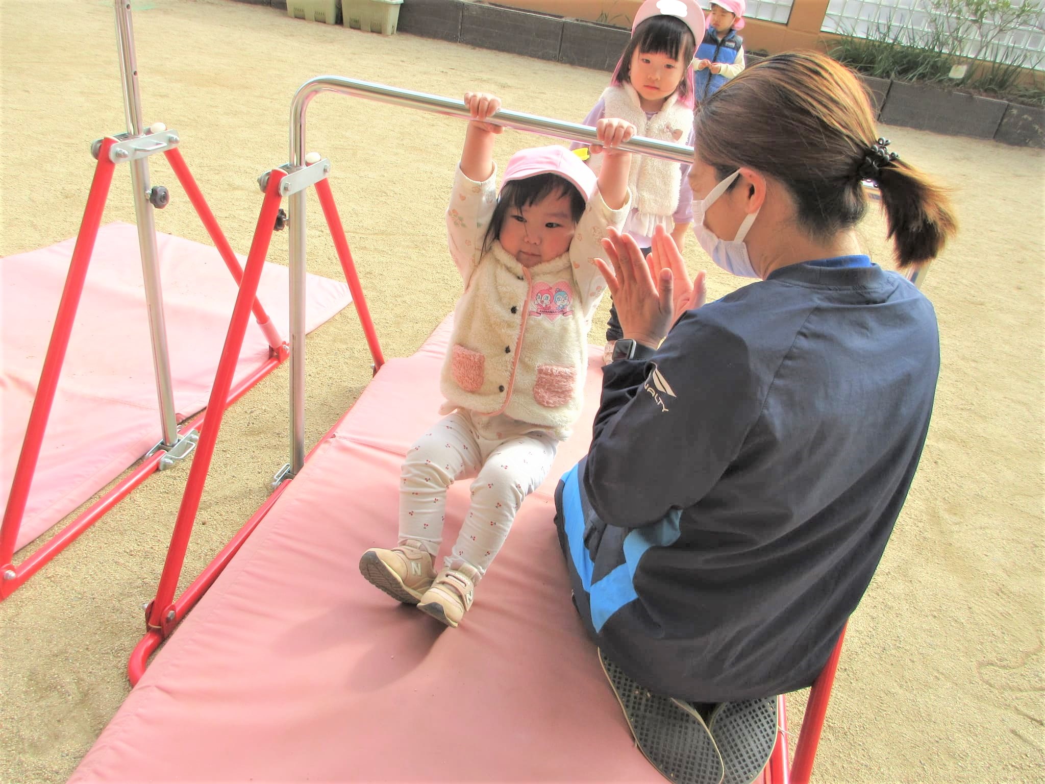 「じぶんで やる!」と、自ら鉄棒を握ろうとする姿が見られました♪