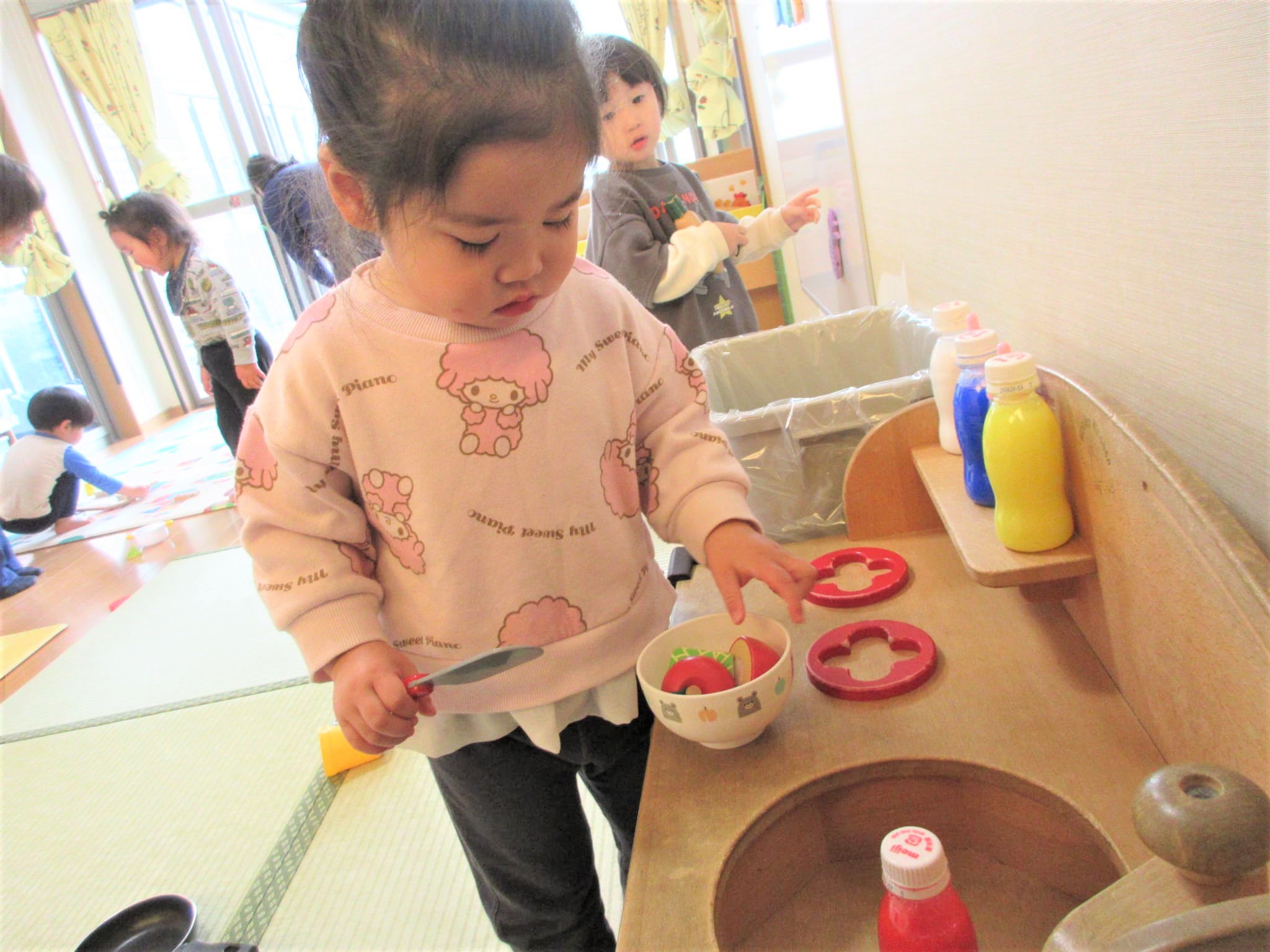 保育者の見守りの中で楽しそうに遊んでいます☆