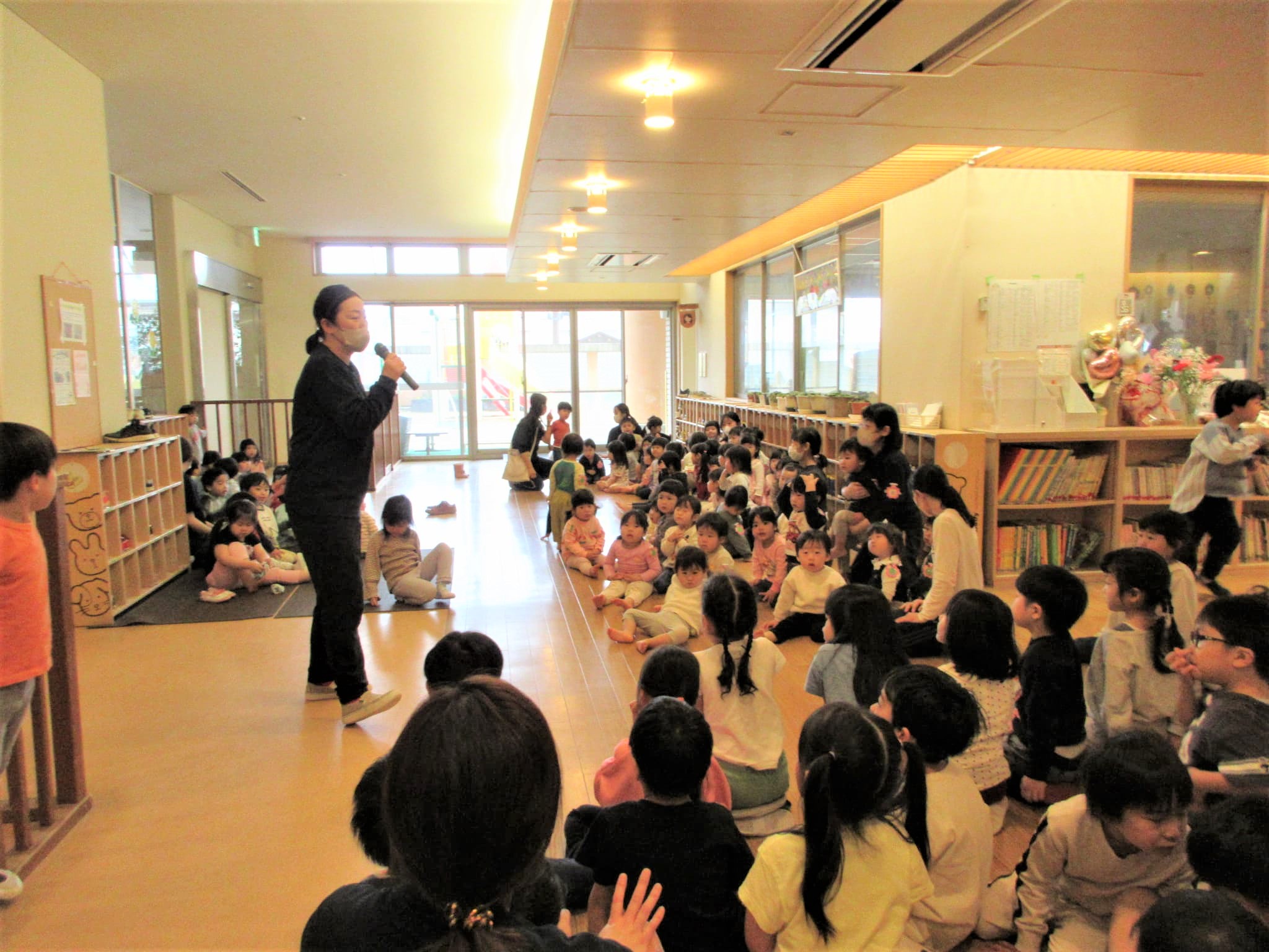 朝からの雨で園庭では行えませんでしたが・・・